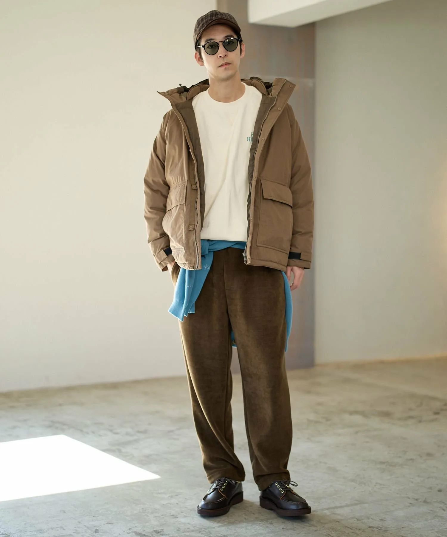 Козырек выполнен из вельветовой ткани, создавая уникальный контрастный дизайн.