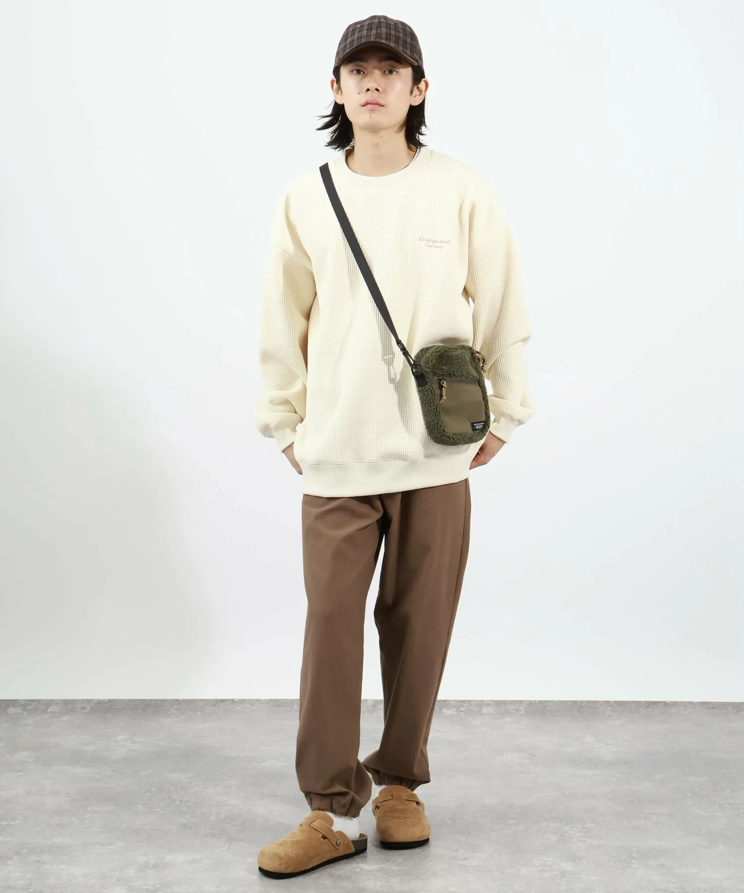 Клетчатая кепка с ворсистой текстурой и отлично подходит для зимы.