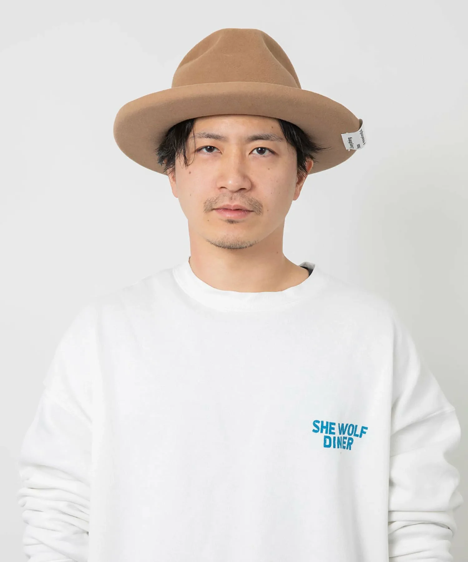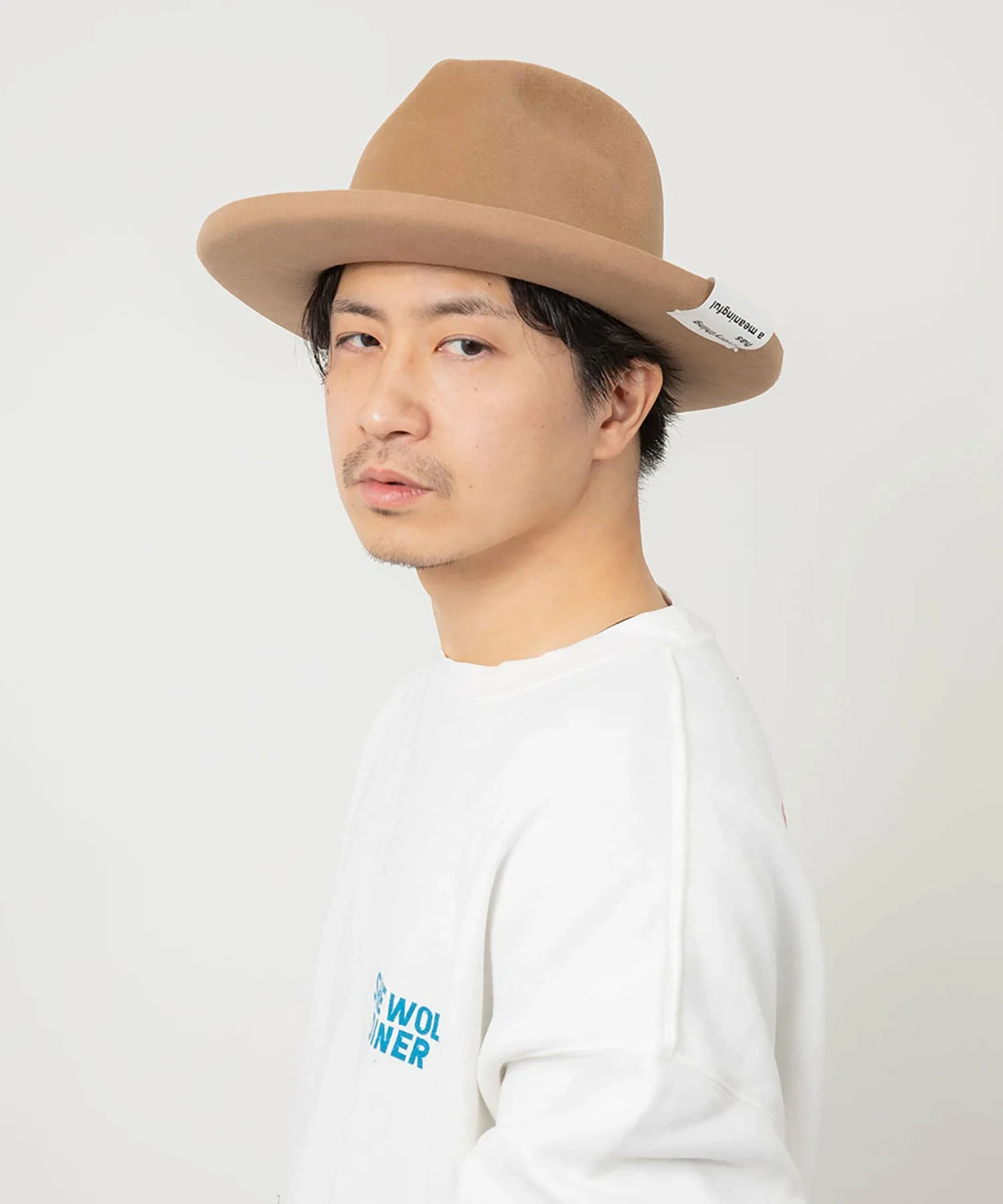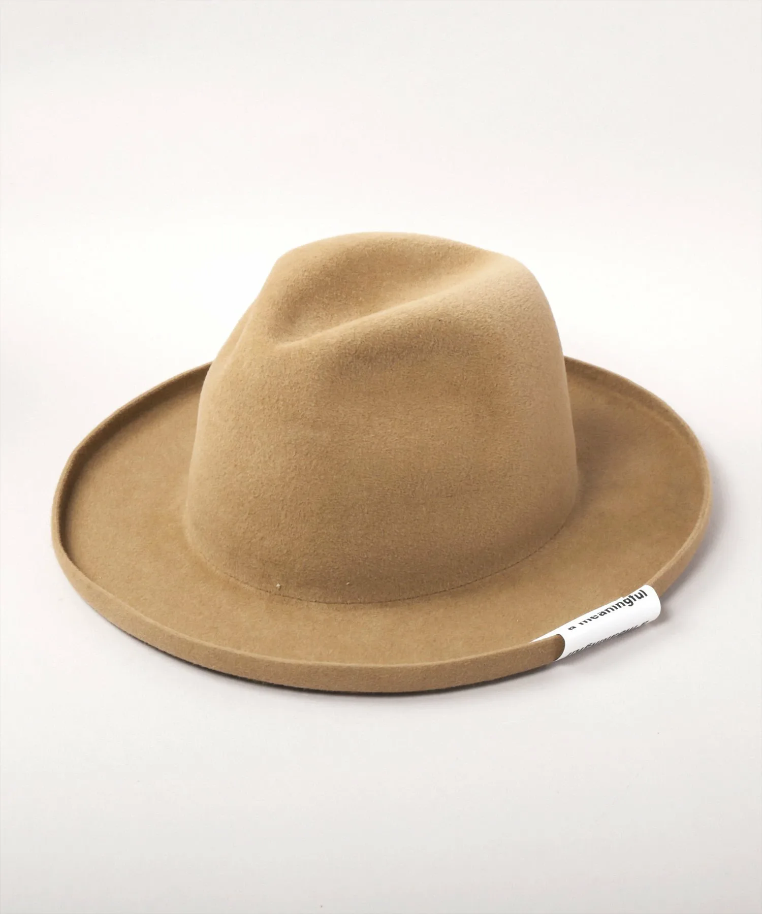 Высокая тулья и эффектные изогнутые поля создают уникальный силуэт в стиле хомбург. Поля намеренно оставлены без окантовки, что придает ей элегантный вид. Тема сезона, «Повседневные вещи», выполнена в стиле граффити и напечатана сбоку. Текстура кроличьего меха придает ей солидный вид, добавляя элегантности любому наряду.