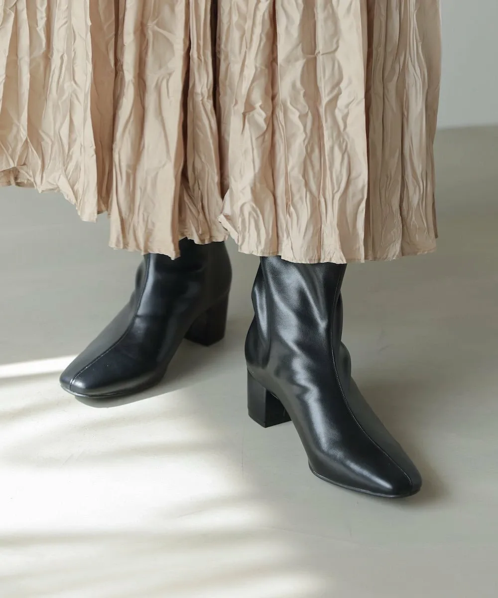 ГЛАВНОЕСамое главное — это их удобство! Эти сапоги изготовлены из эластичного материала, поэтому их легко надевать! Отверстие у щиколотки хорошо тянется, поэтомуих можно легко надеть даже без молнии. Поскольку молнии нет, размер разработан таким образом, чтобы ваши щиколотки выглядели стройнее и длиннее. Даже в сочетании с объемной юбкой они придадут вашим ногам женственный и красивый вид◎