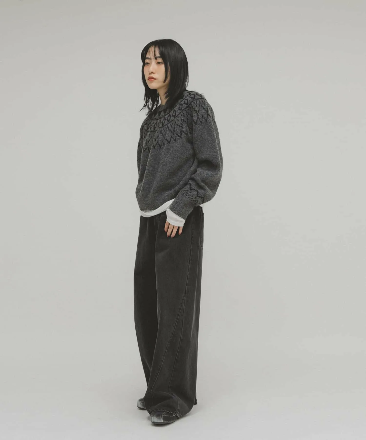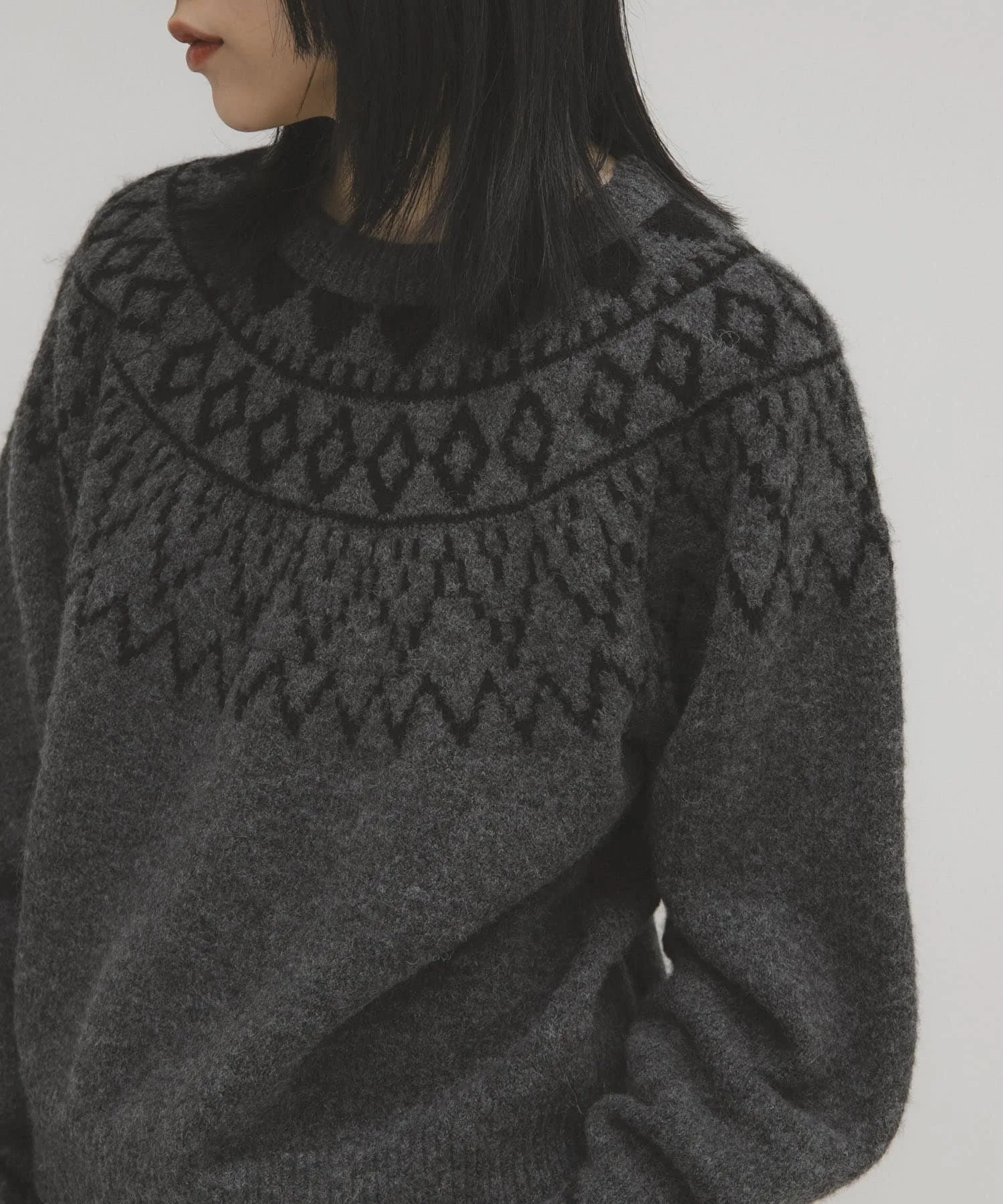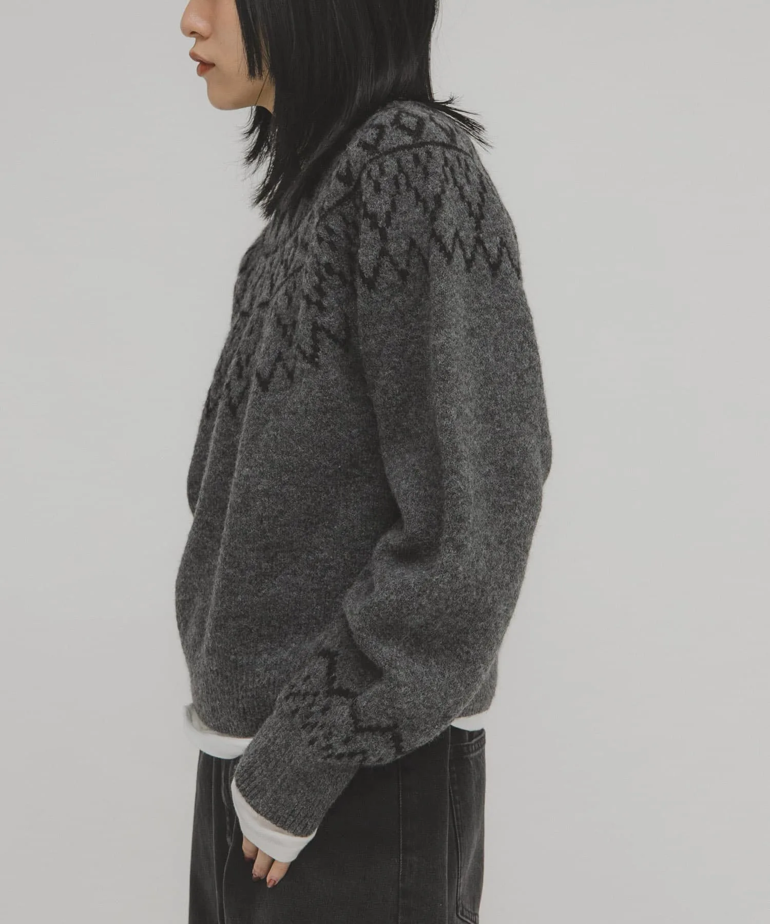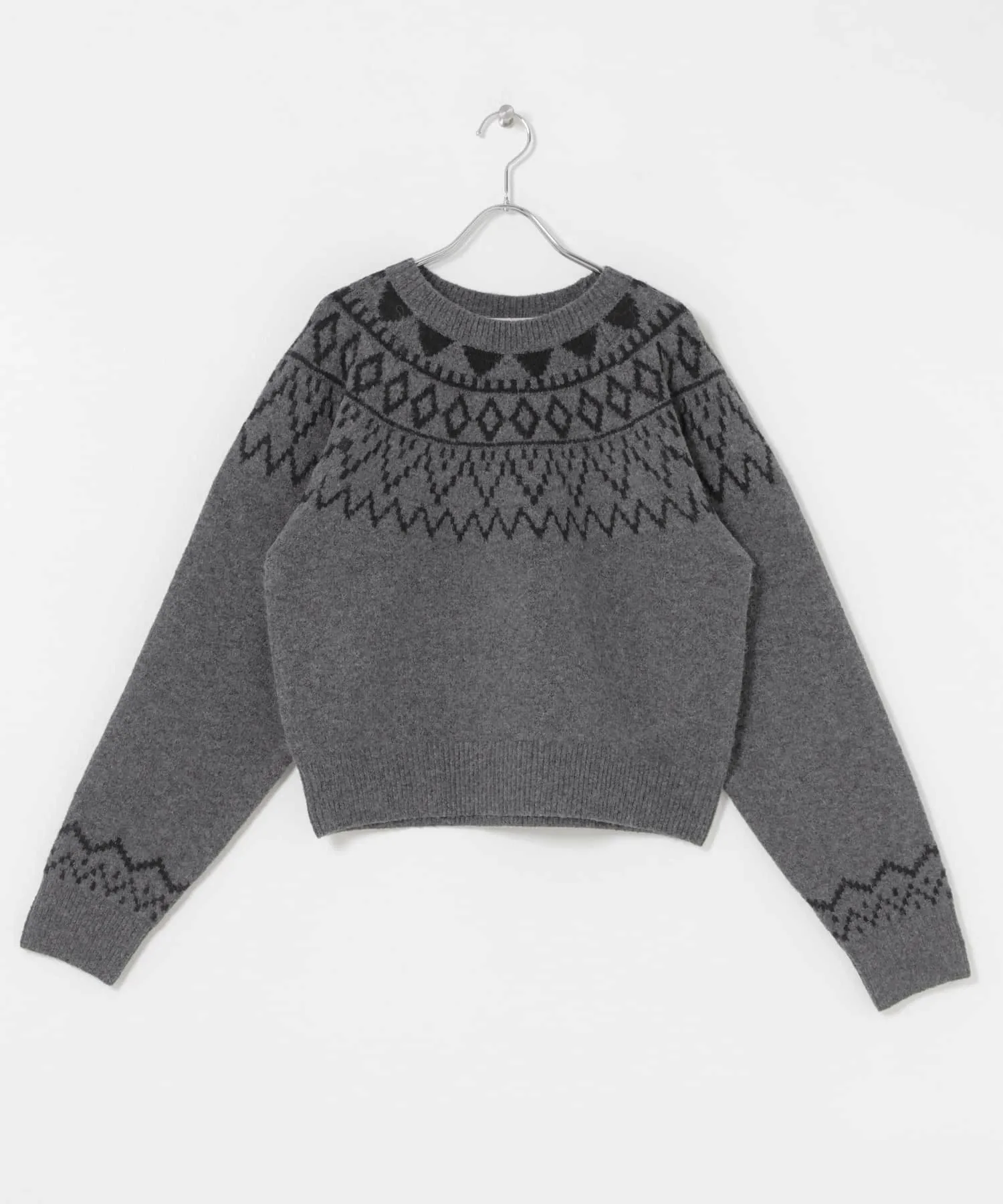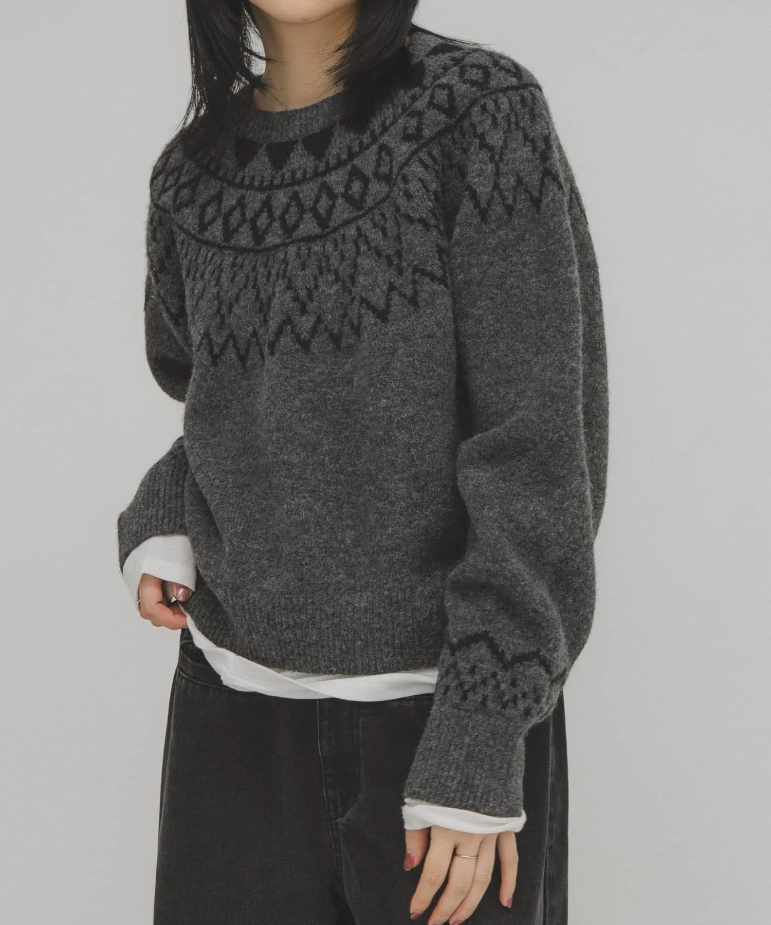 Этот трикотаж с скандинавским узором идеально подходит для зимы. Лестный силуэт идеально подходит для изысканных повседневных образов. Наслаждайтесь широким выбором стилей: от свободных моделей с джинсами или широкими брюками до женственных юбок.