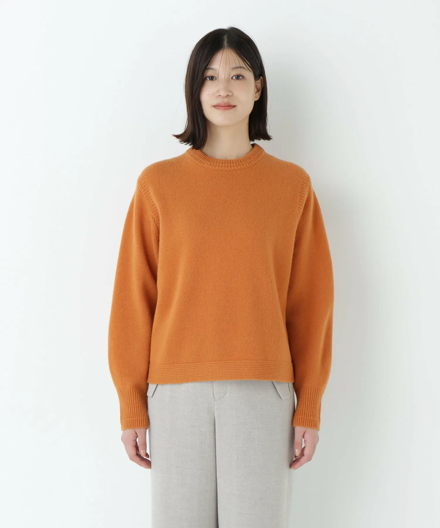 Пуловер свободного силуэта с круглым вырезом, трикотажной основой и акцентами из резинки. Простой дизайн, максимально подчеркивающий текстуру материала.