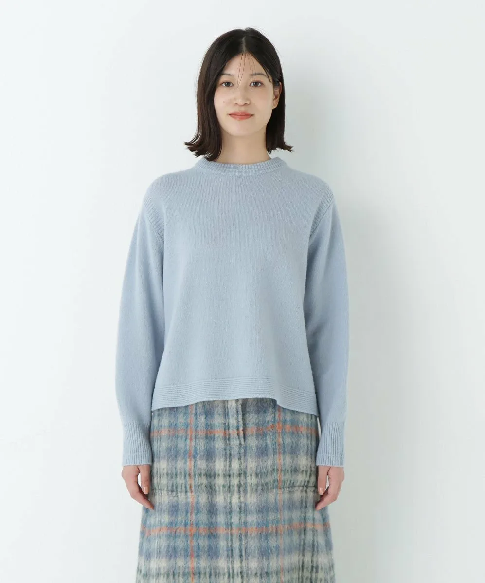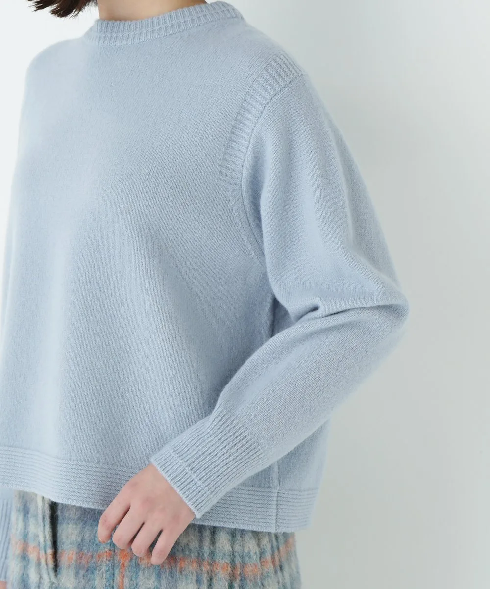 Пуловер свободного силуэта с круглым вырезом, трикотажной основой и акцентами из резинки. Простой дизайн, максимально подчеркивающий текстуру материала.