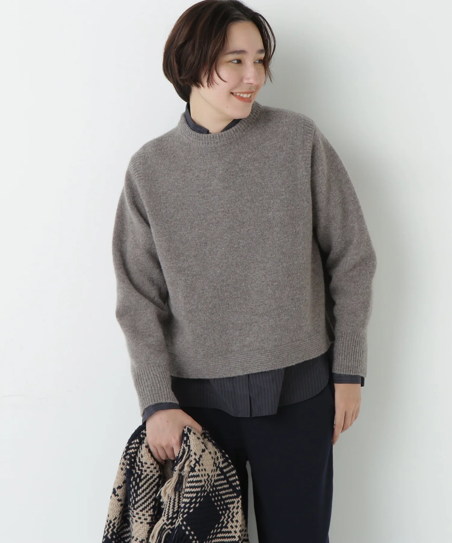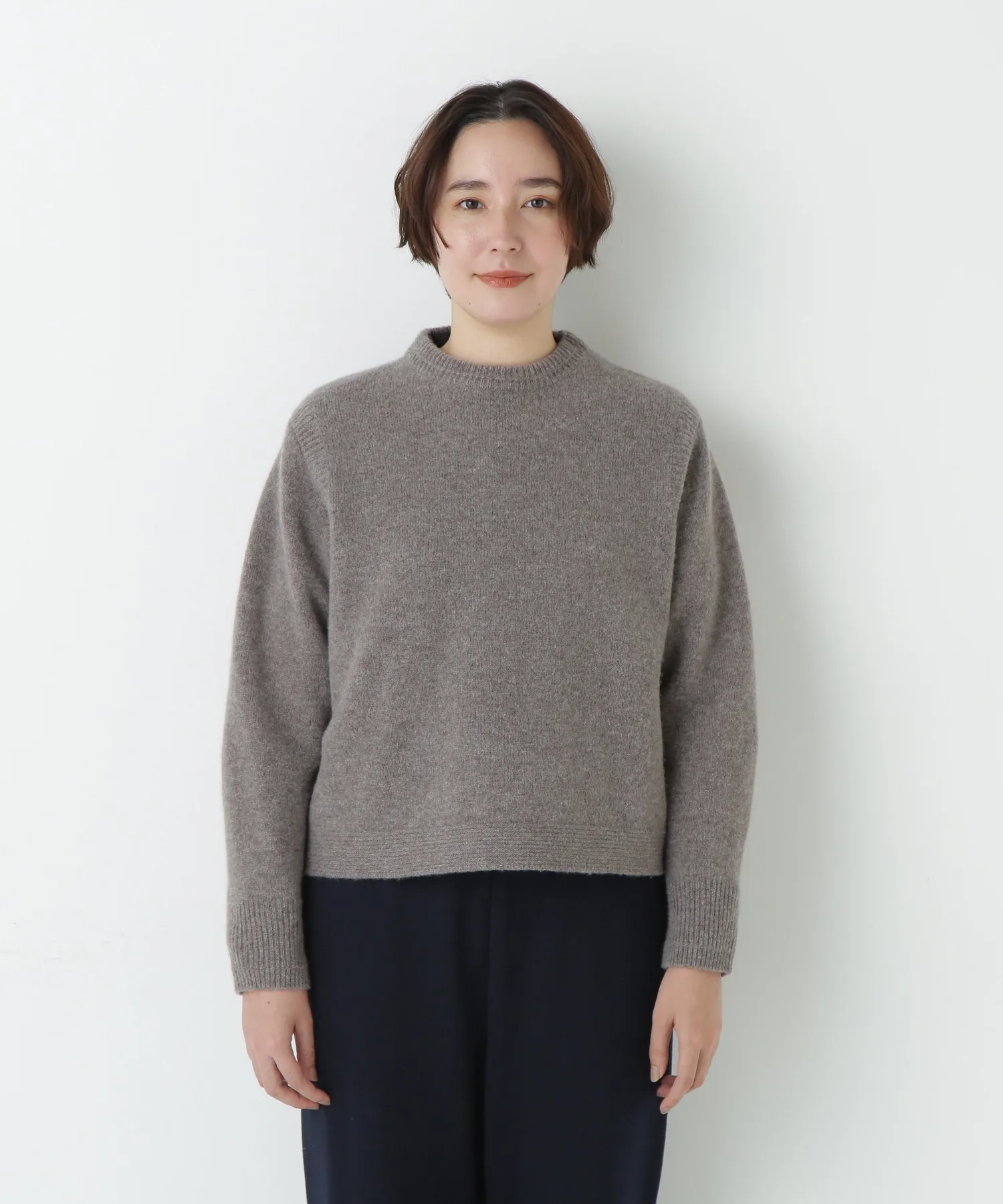 Пуловер свободного силуэта с круглым вырезом, трикотажной основой и акцентами из резинки. Простой дизайн, максимально подчеркивающий текстуру материала.