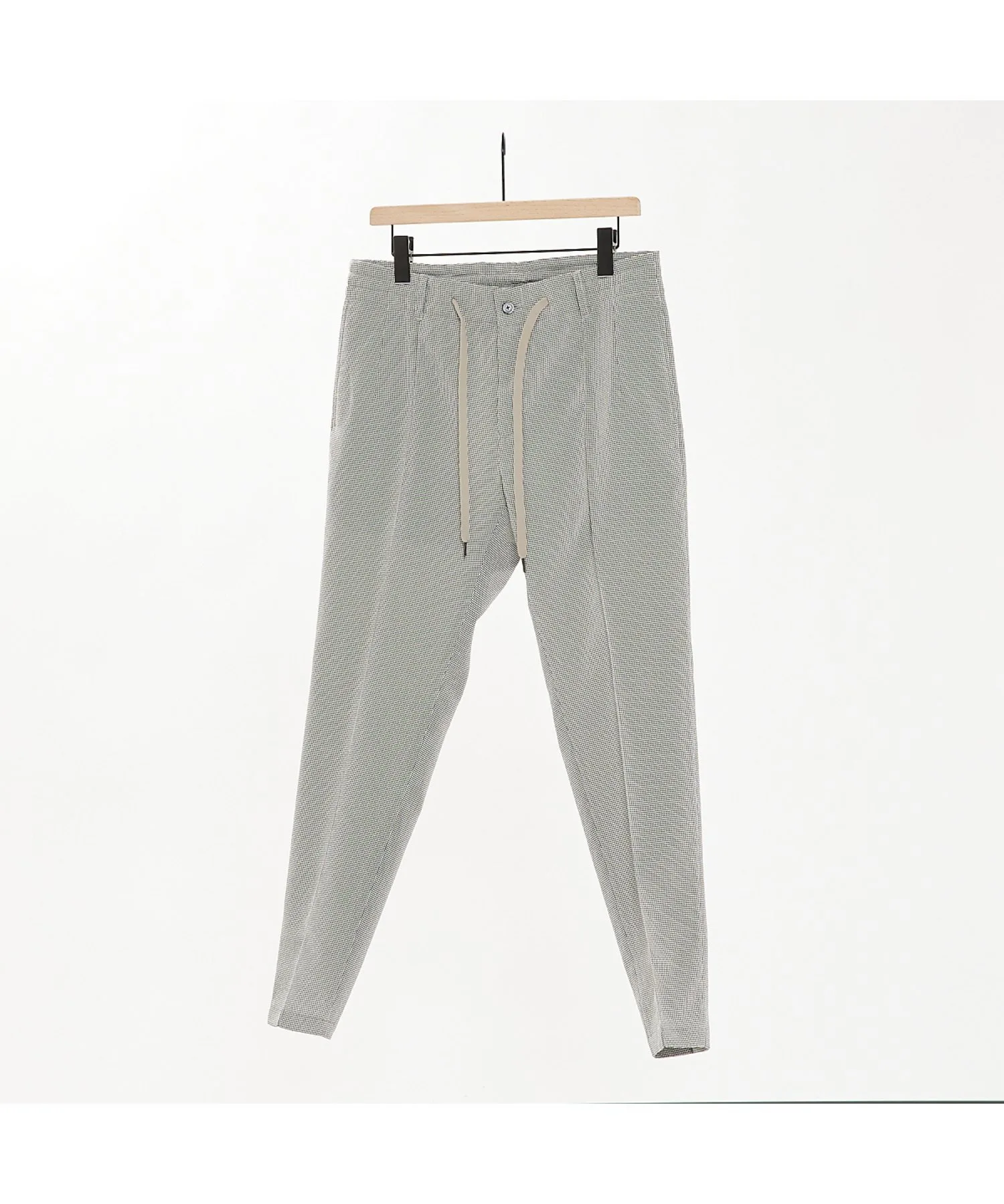 Зауженный низ создает привлекательный силуэт, который можно сочетать с любым стилем, а эластичный материал обеспечивает комфортную посадку. Шнурок на талии позволяет создать эффект блузона, вытянув его наружу для отсутствия пояса или спрятав внутрь. Центральная складка, созданная швом, подчеркивает вертикальные линии и выгодно выделяет ноги.