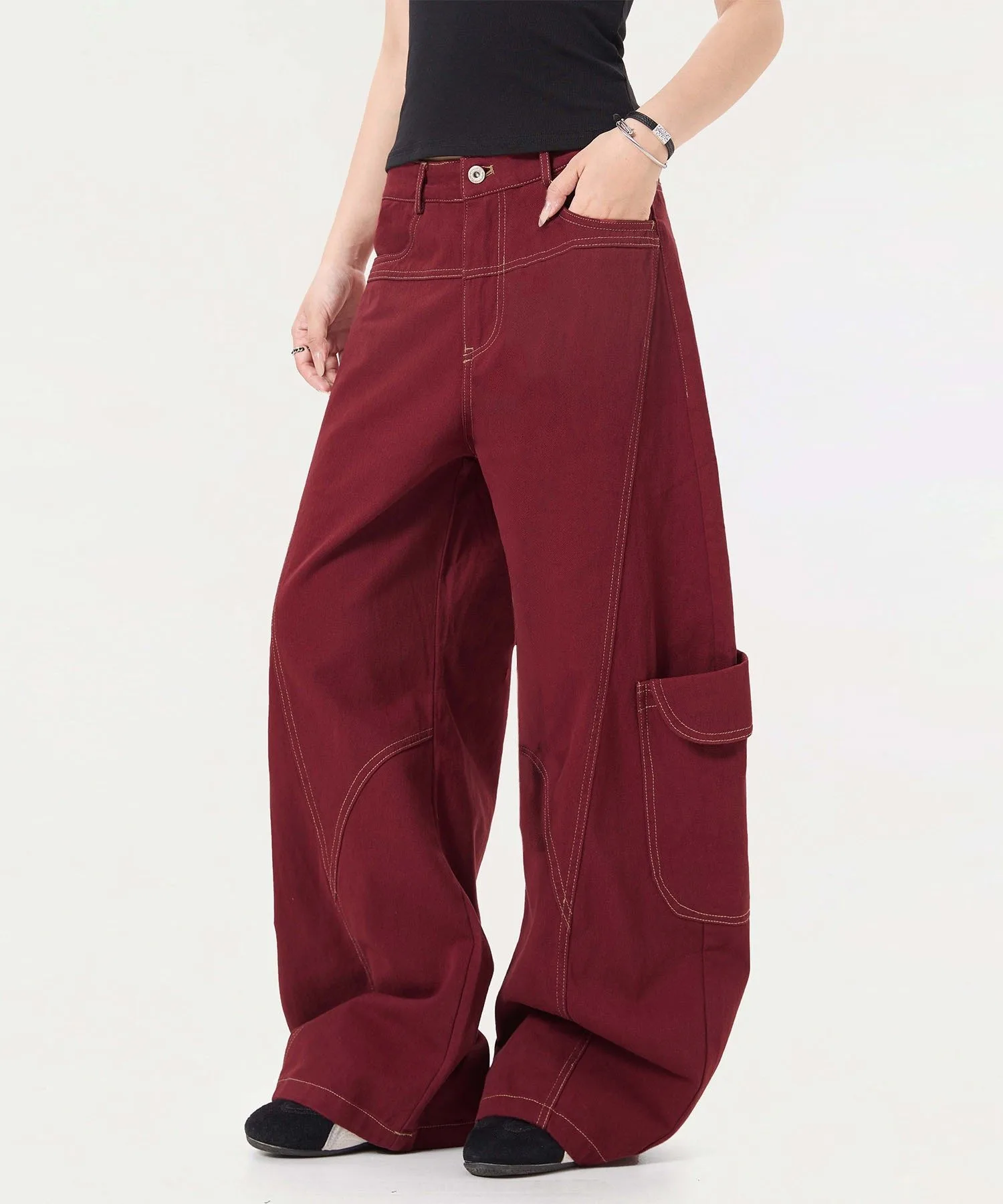 Тисненая строчка спереди и большие боковые карманы создают трехмерный эффект.