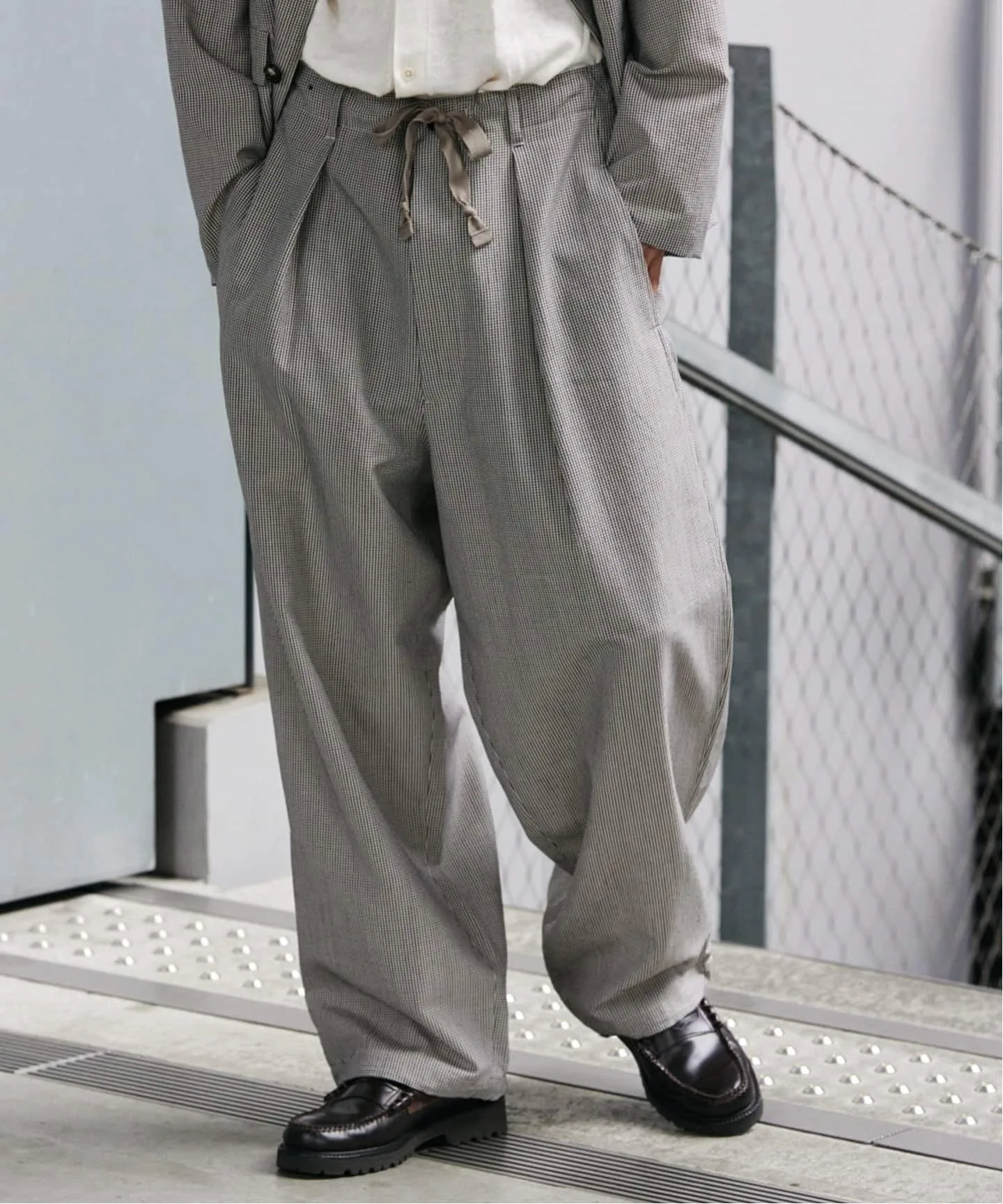 Силуэт широкий и свободный. По низу имеется шнурок, позволяющий свободно регулировать силуэт, затягивая его.