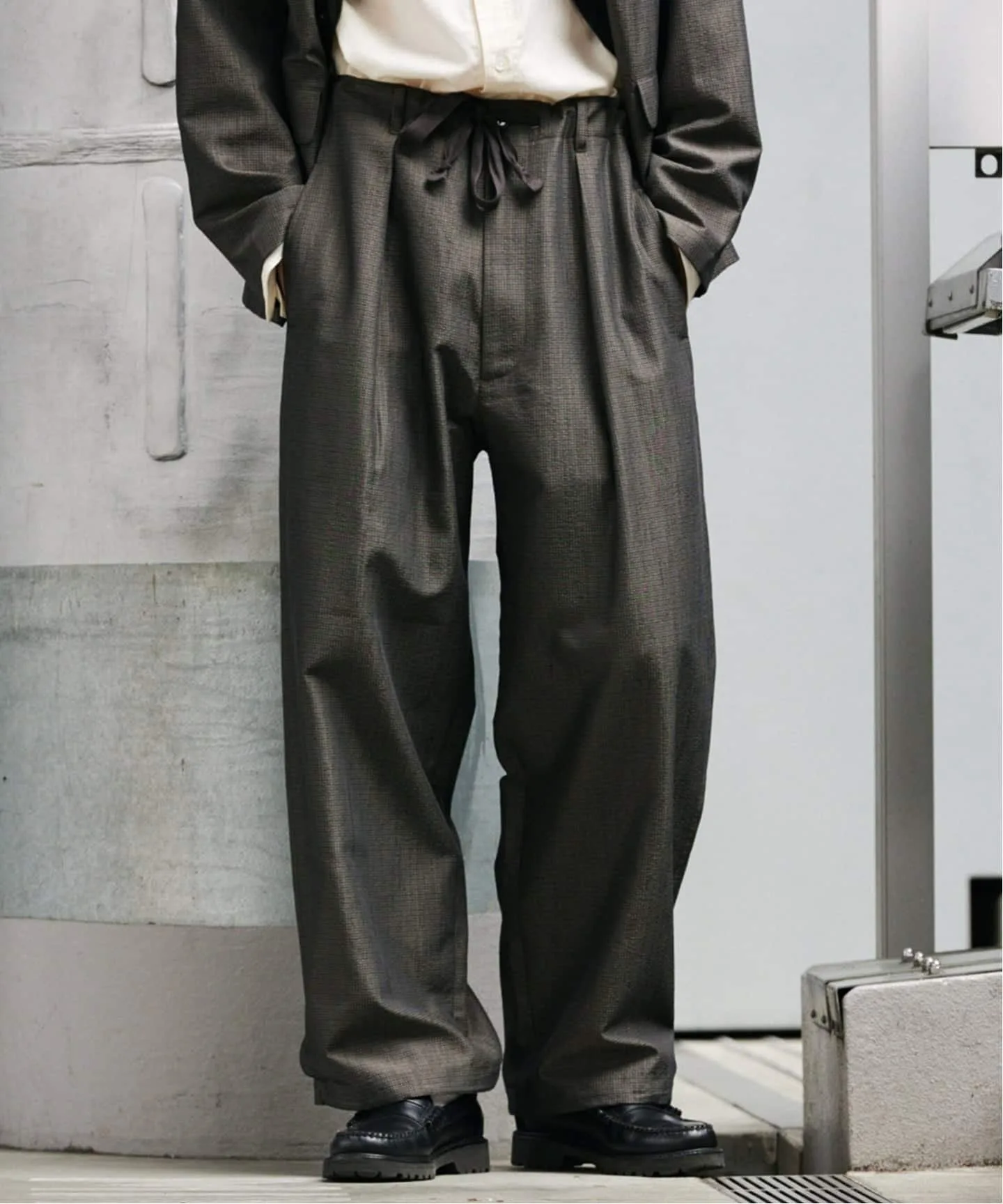 Силуэт широкий и свободный. По низу имеется шнурок, позволяющий свободно регулировать силуэт, затягивая его.