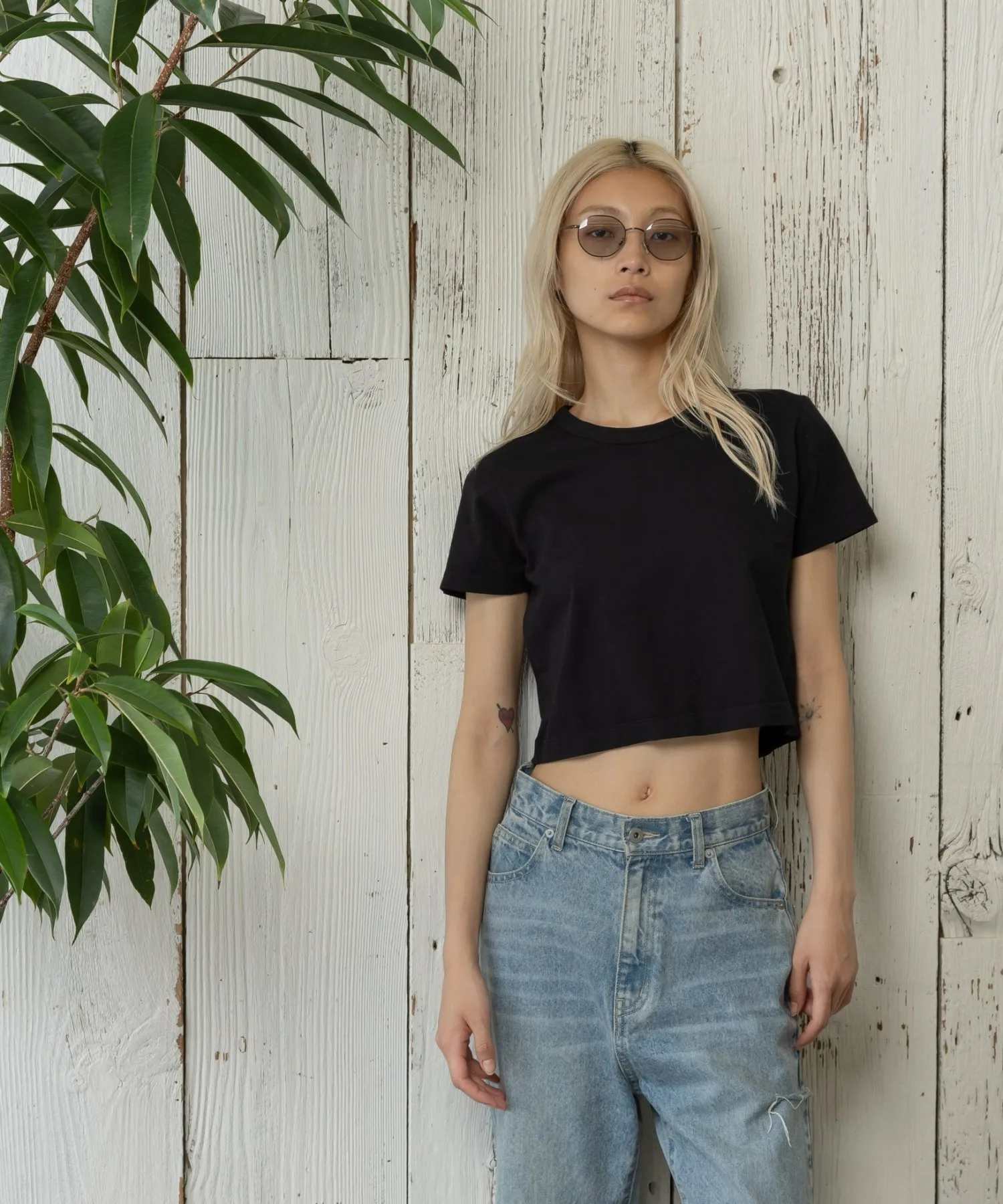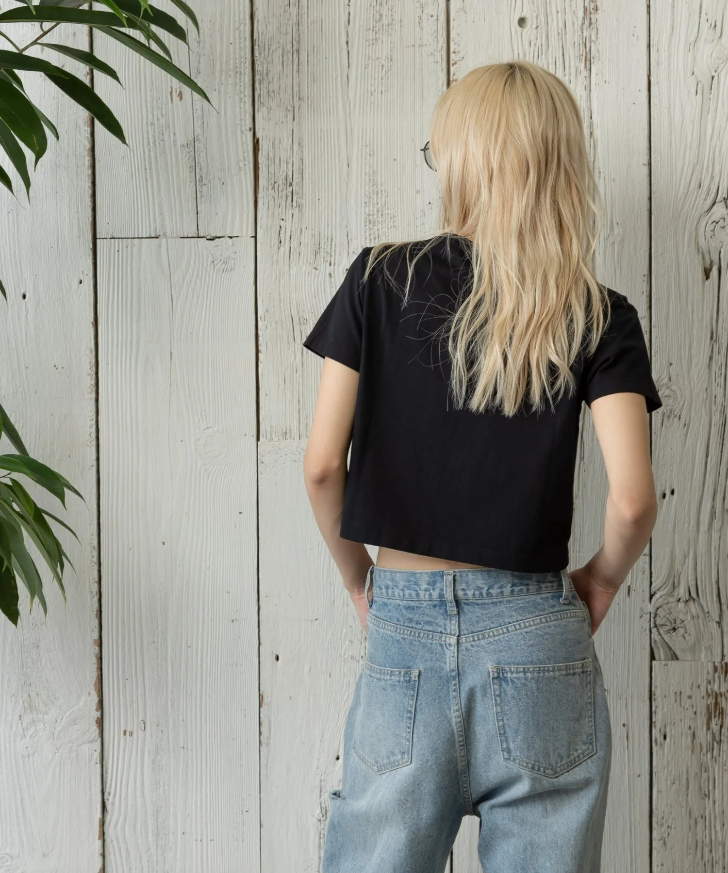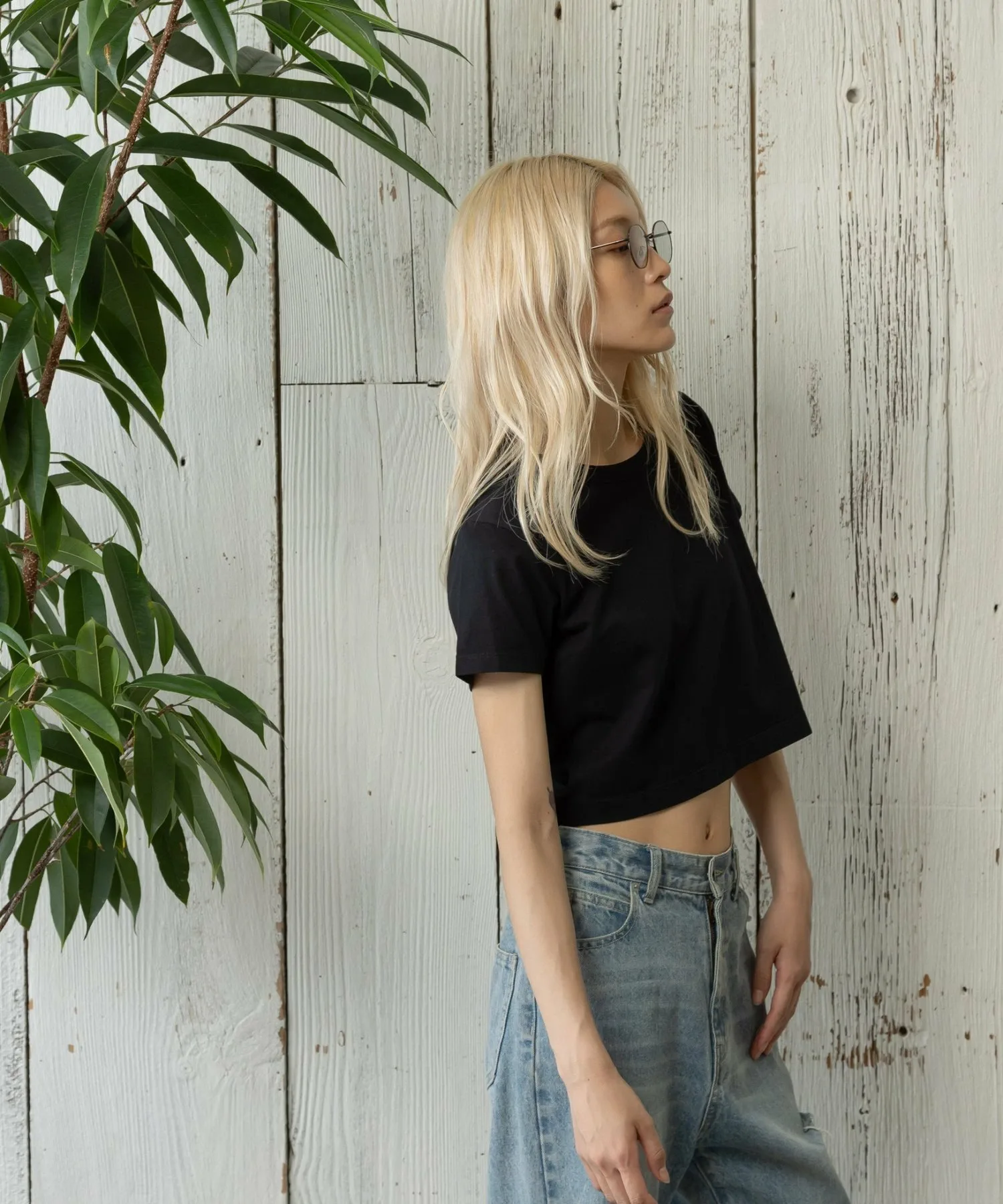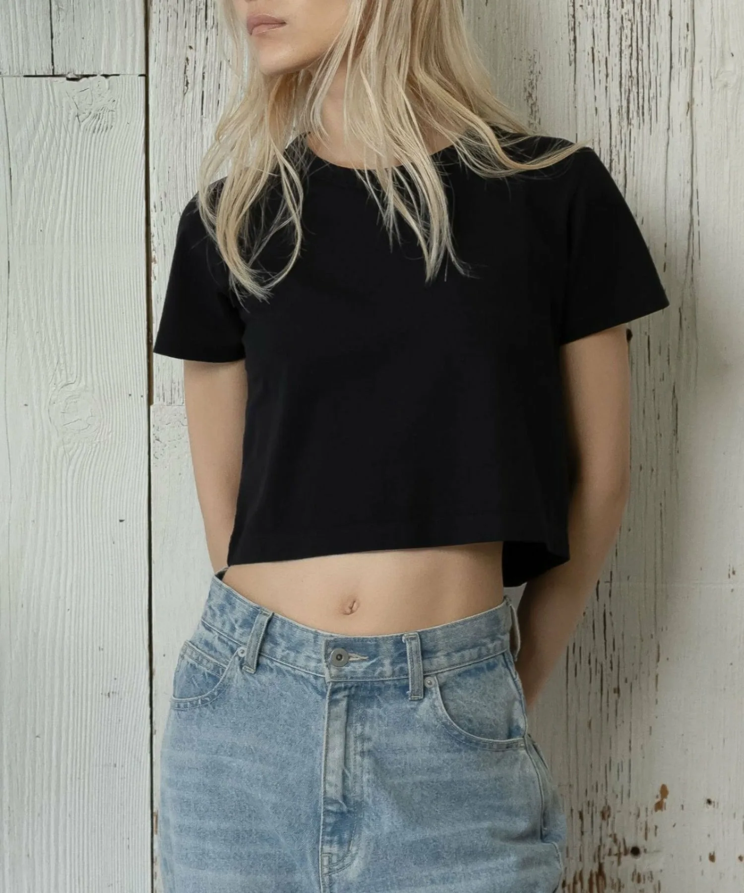 Модный, гладкий, короткий крой этой компактной футболки создает стильный эффект.