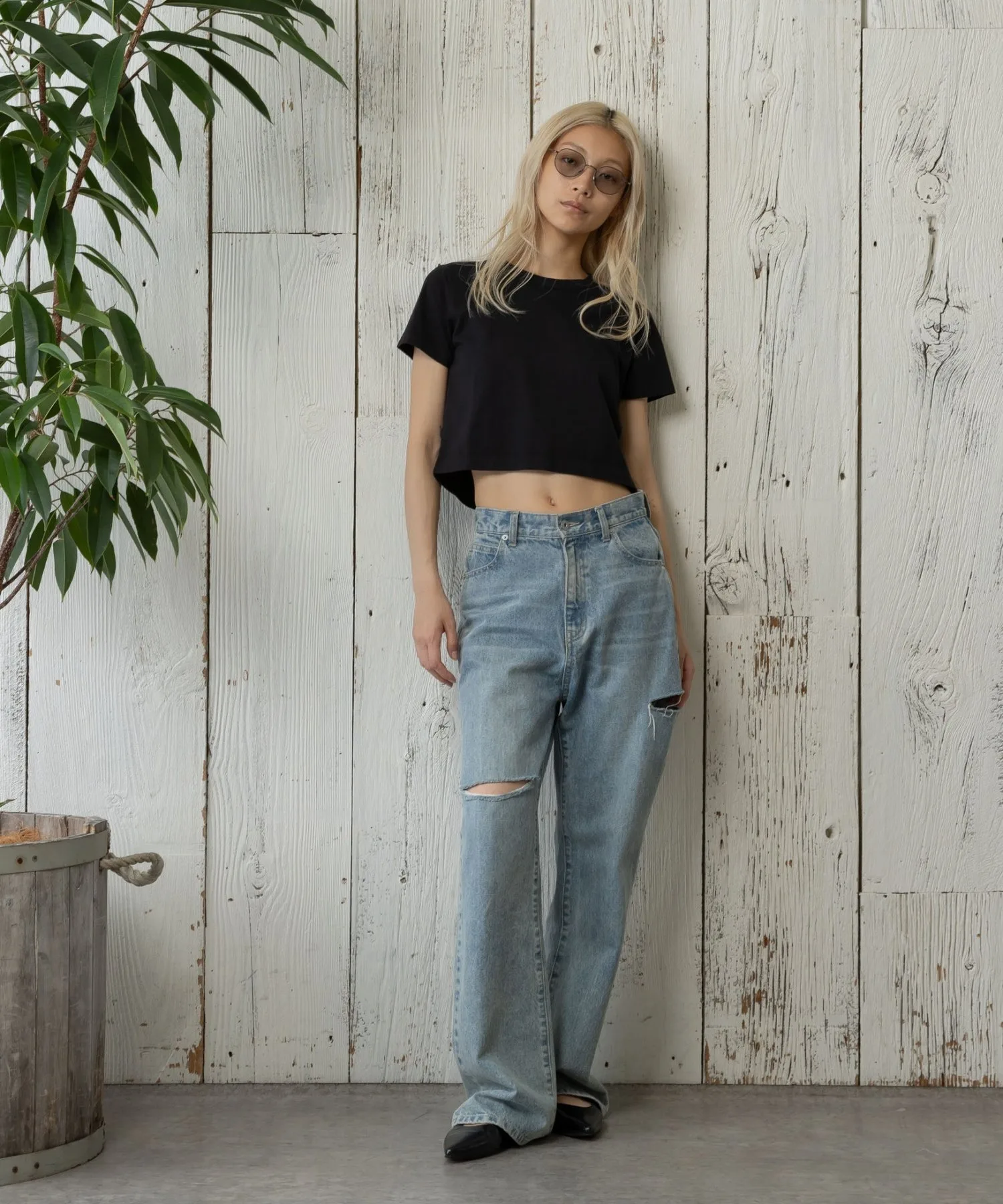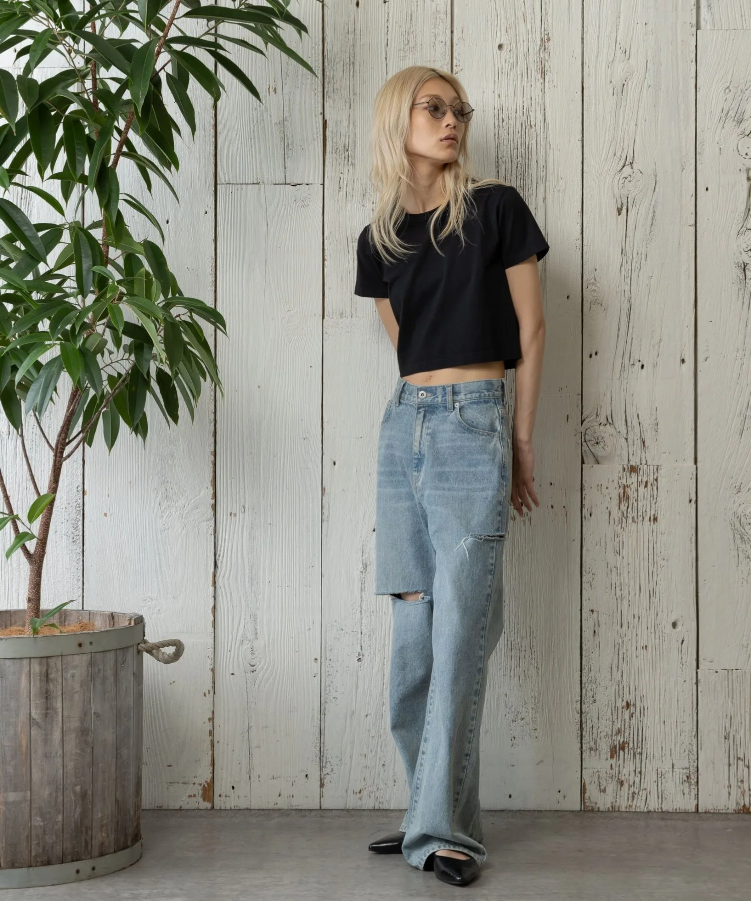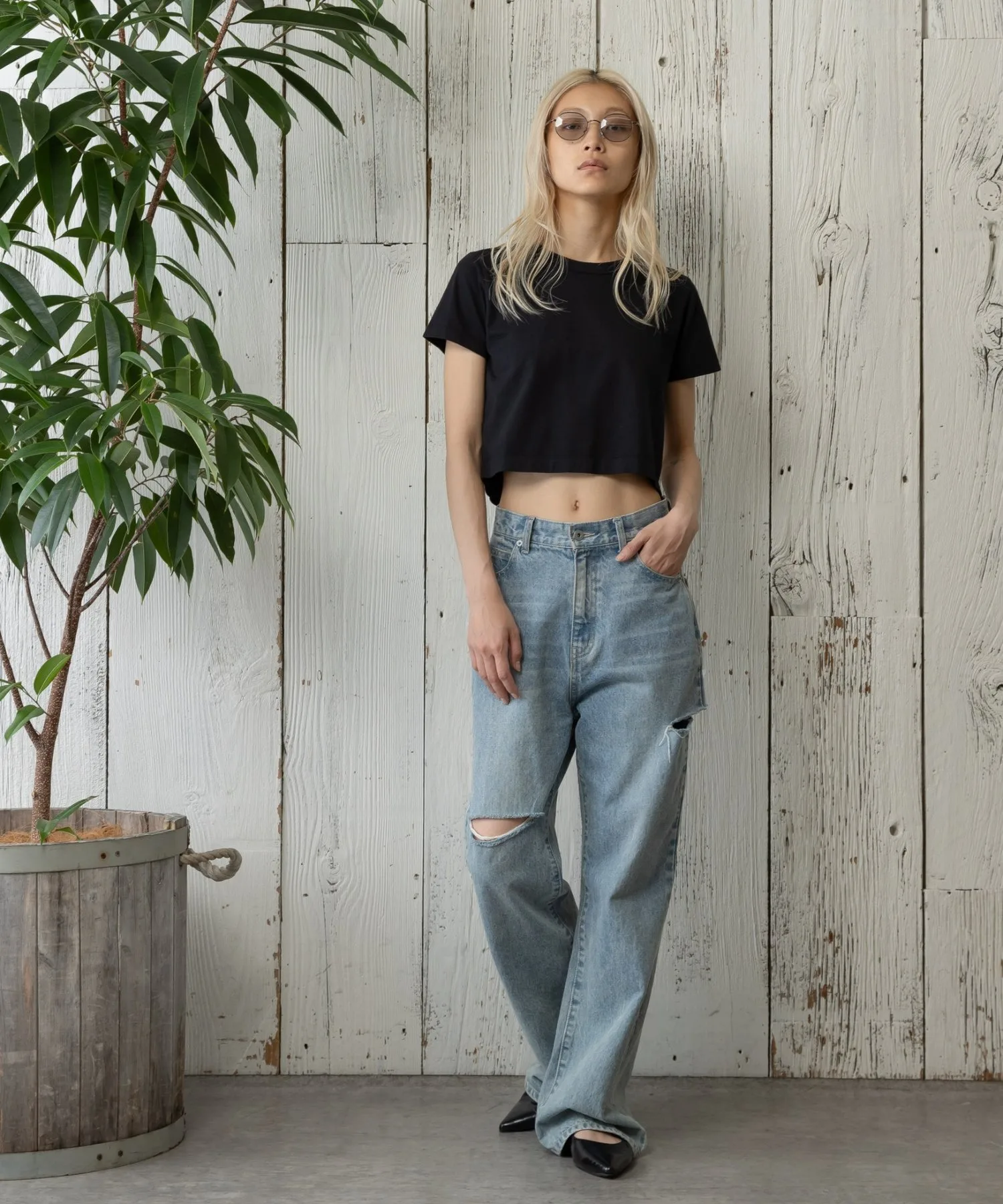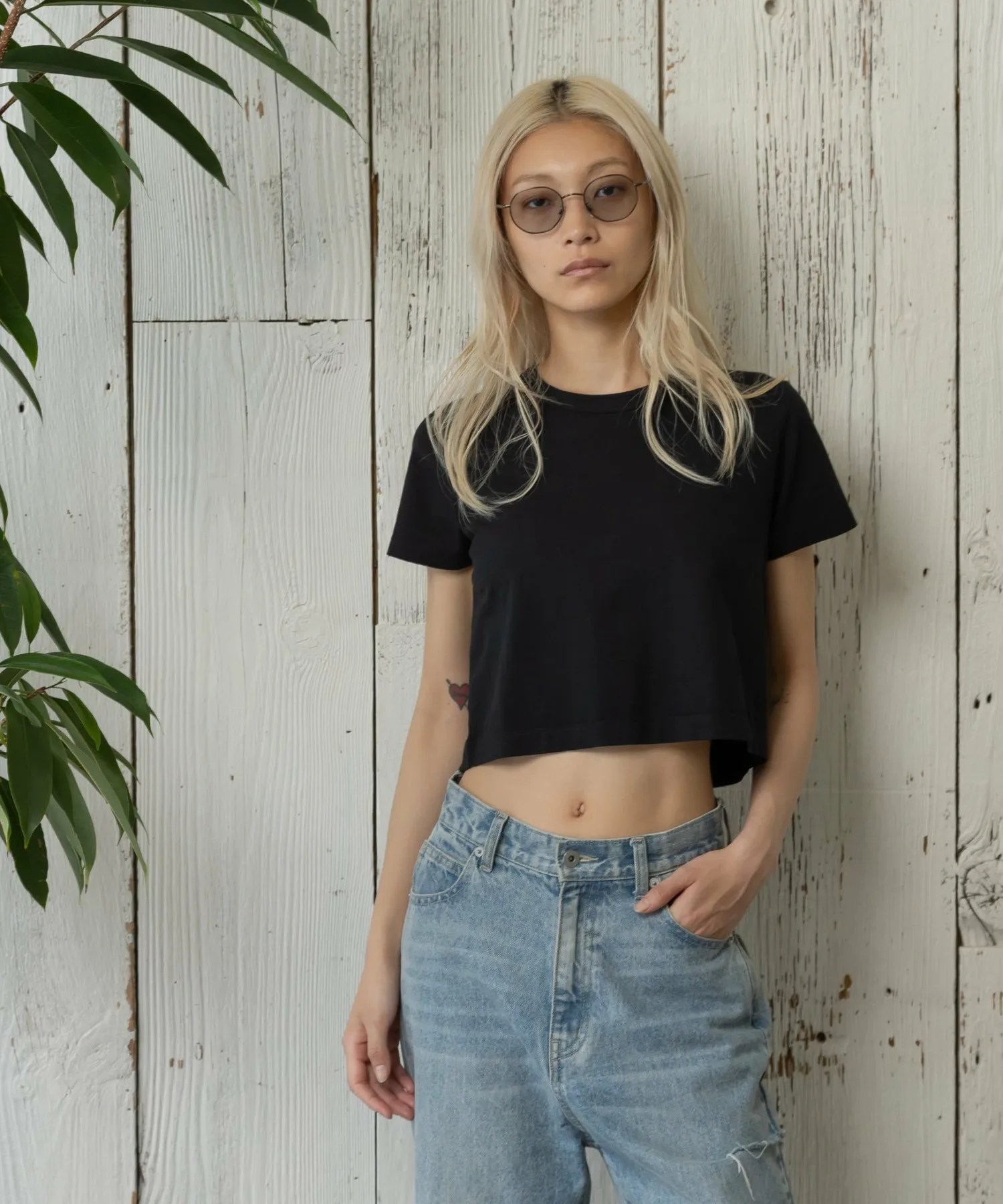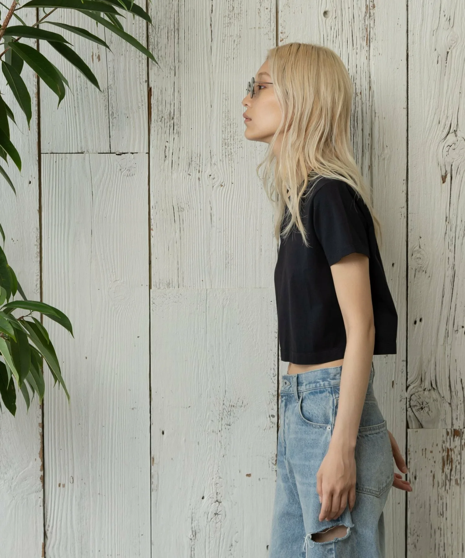 Модный, гладкий, короткий крой этой компактной футболки создает стильный эффект.