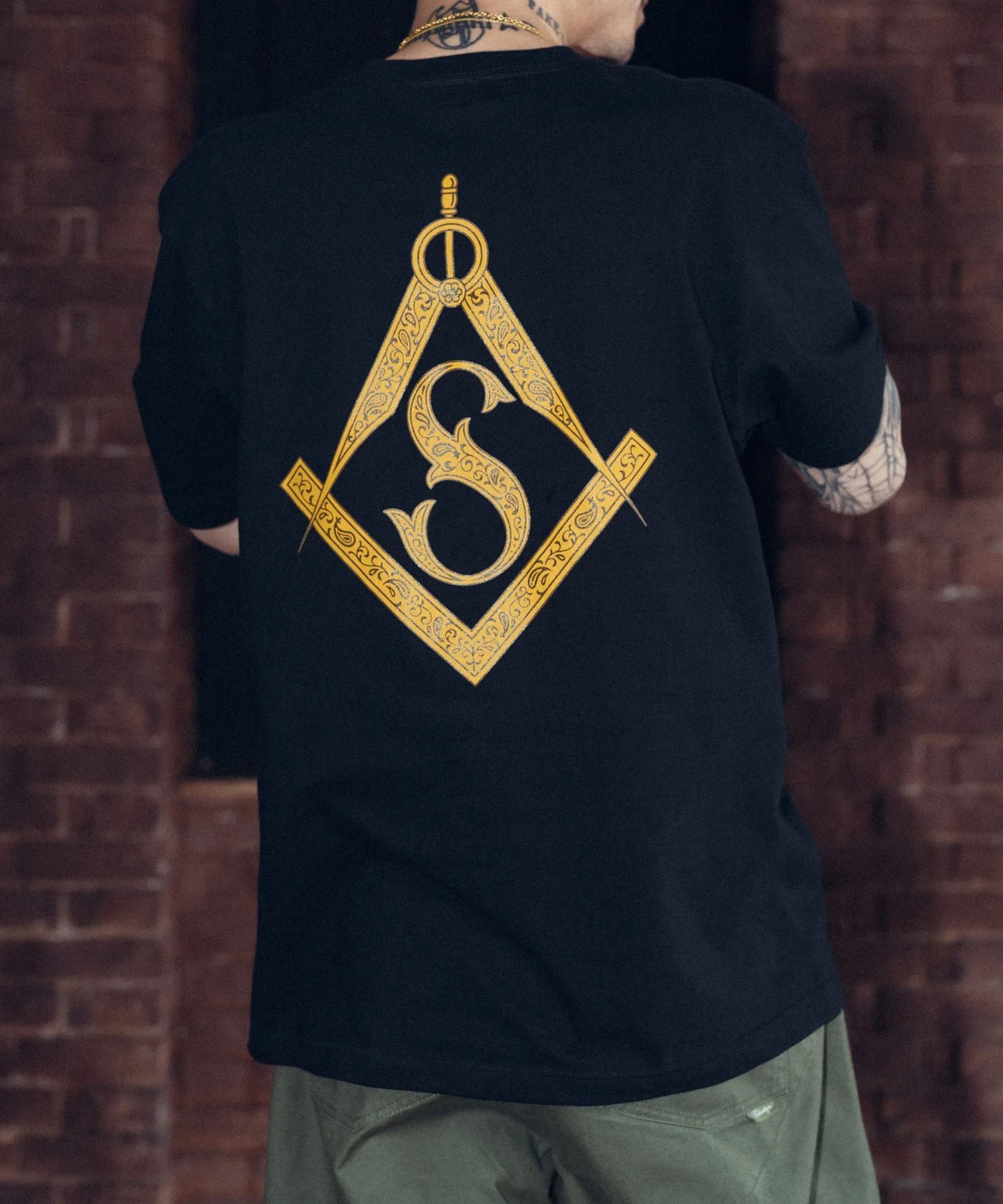 Логотип включает в себя инициал бренда S, линейку, циркуль и узор пейсли.