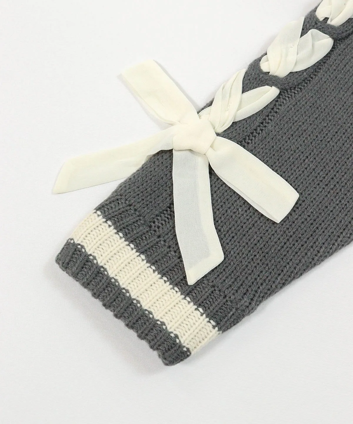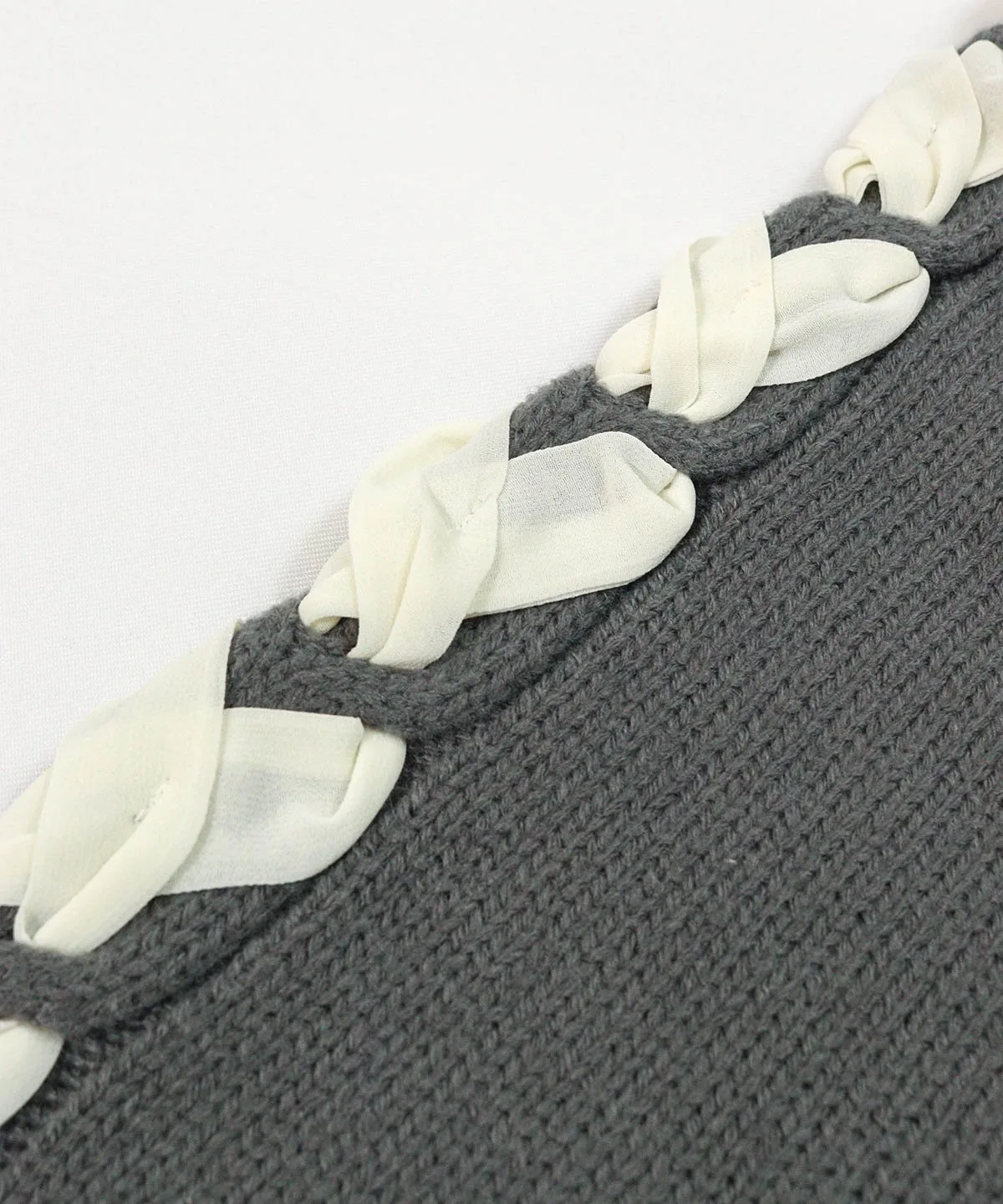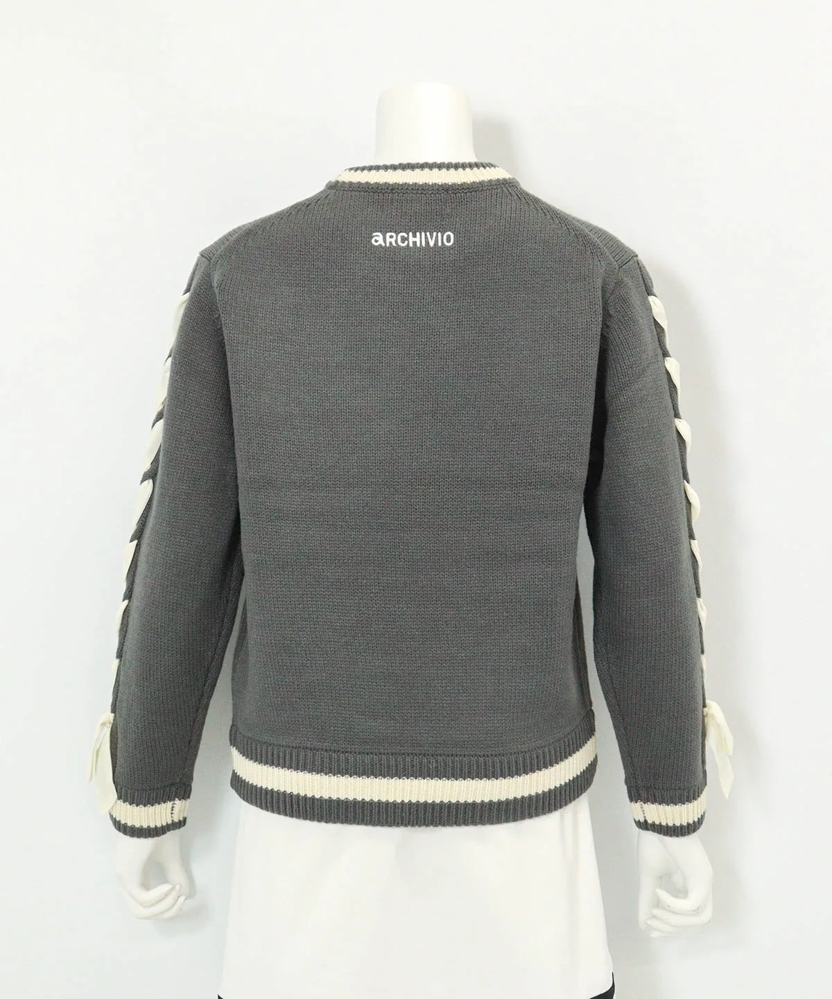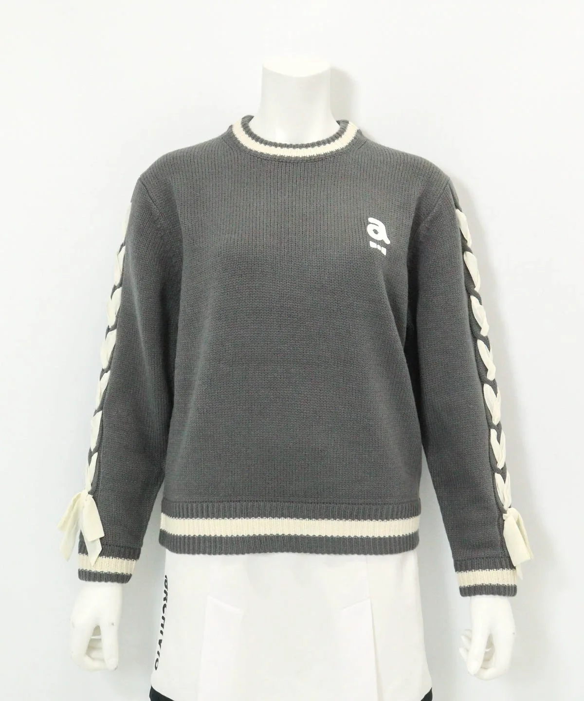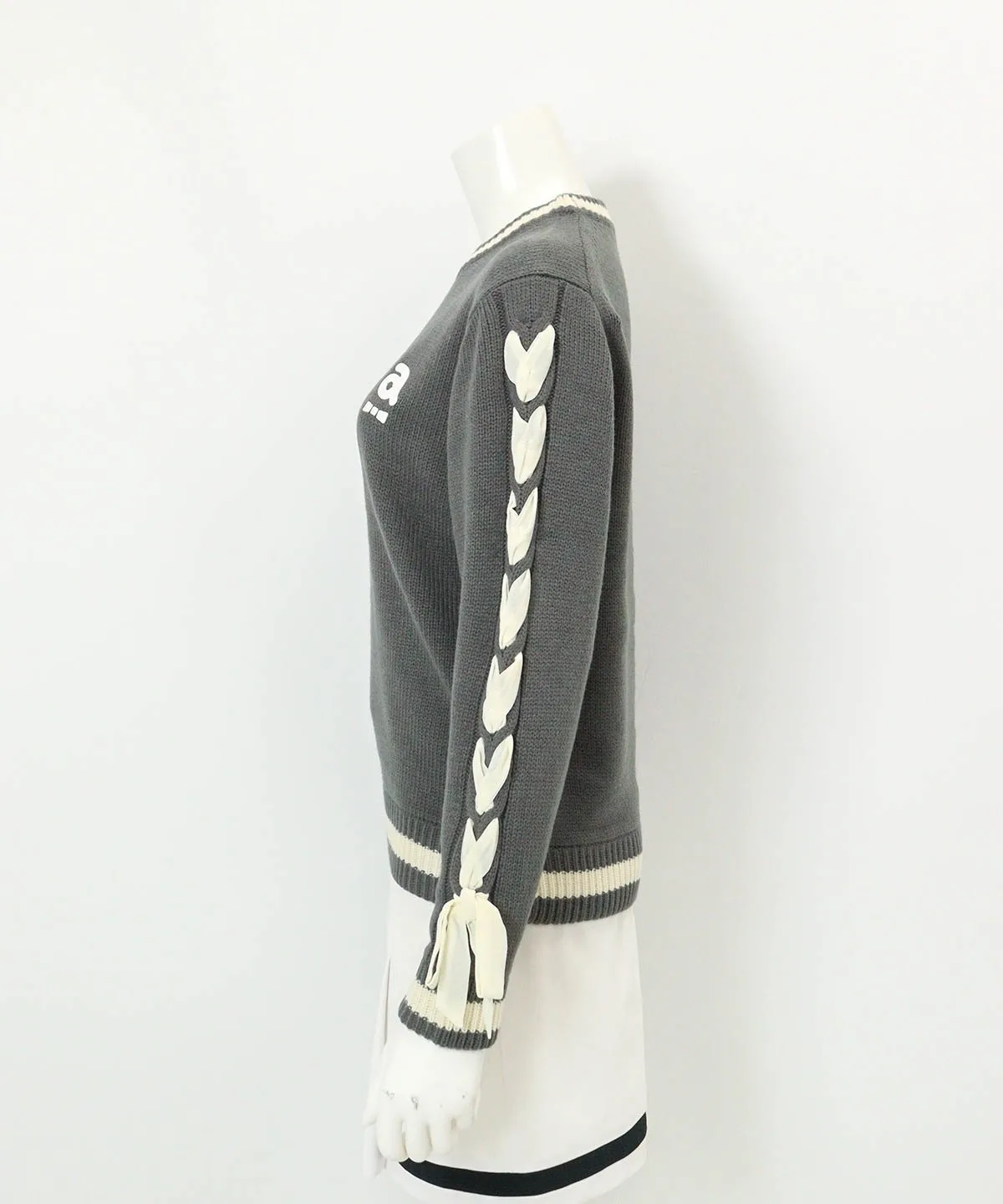 Вязаный пуловер с рукавами, украшенными вязаными лентами