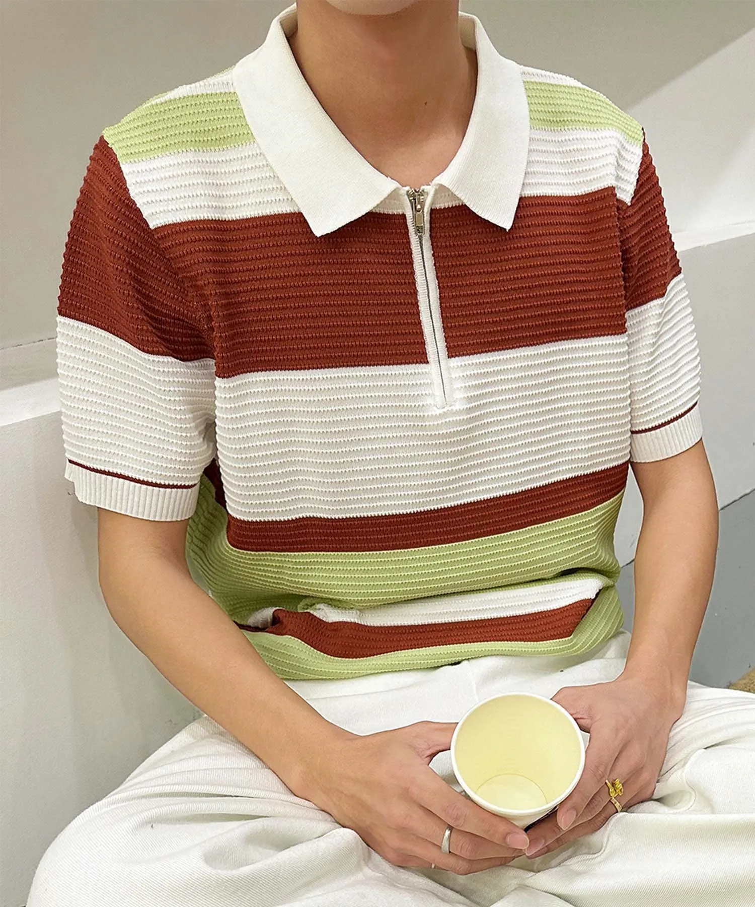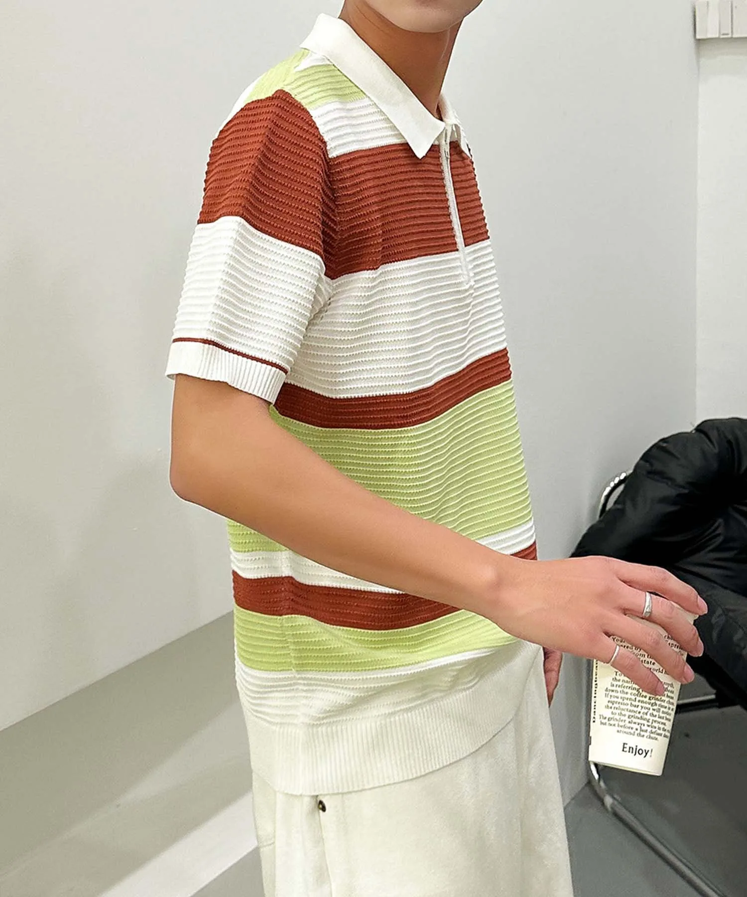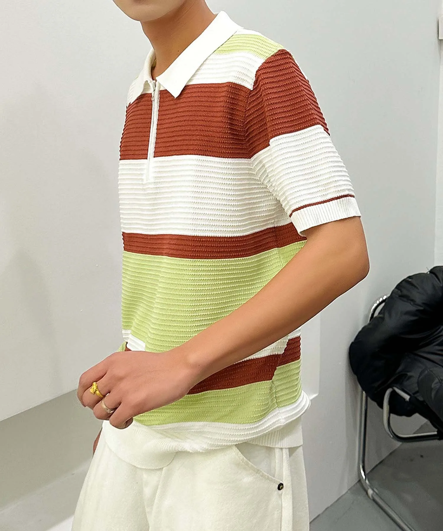 "Поло с коротким рукавом, трикотажная, с современным дизайном каймы."