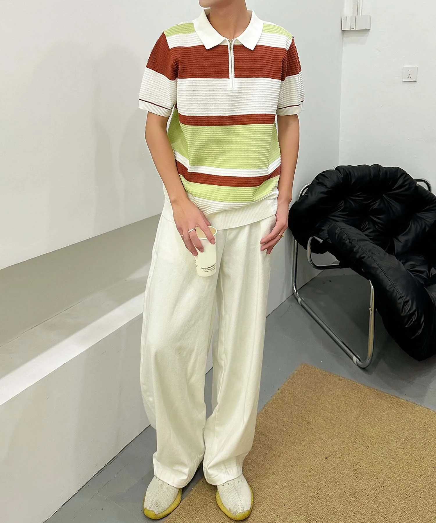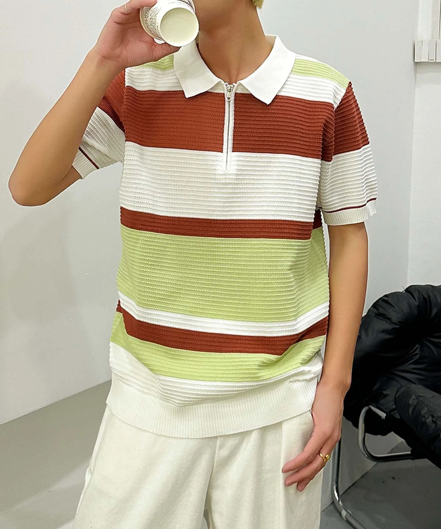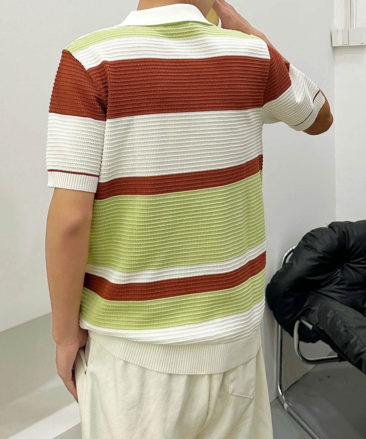 "Поло с коротким рукавом, трикотажная, с современным дизайном каймы."