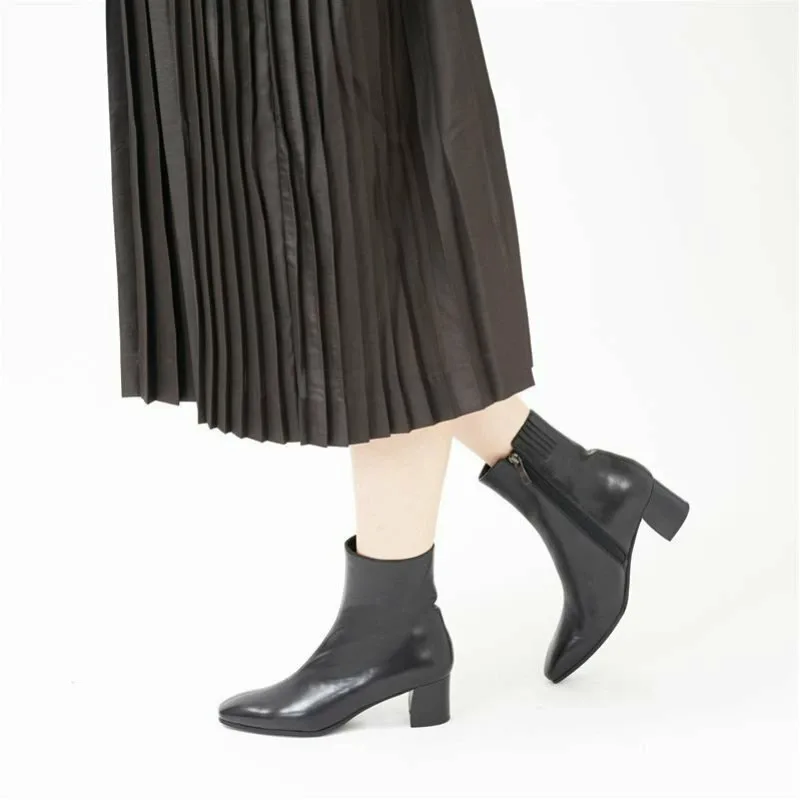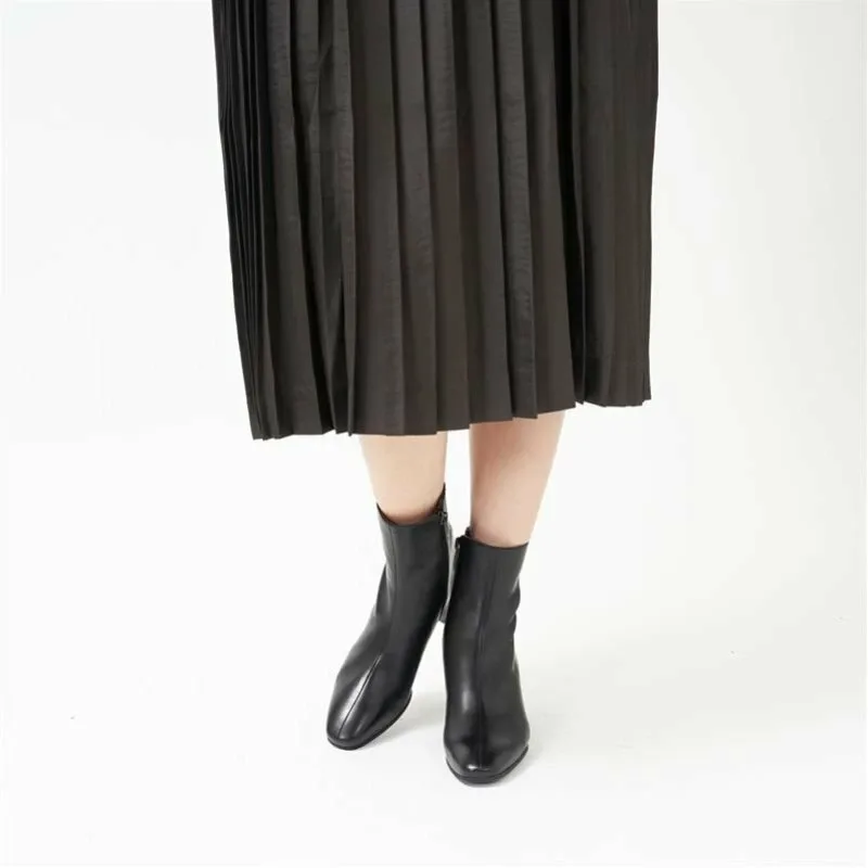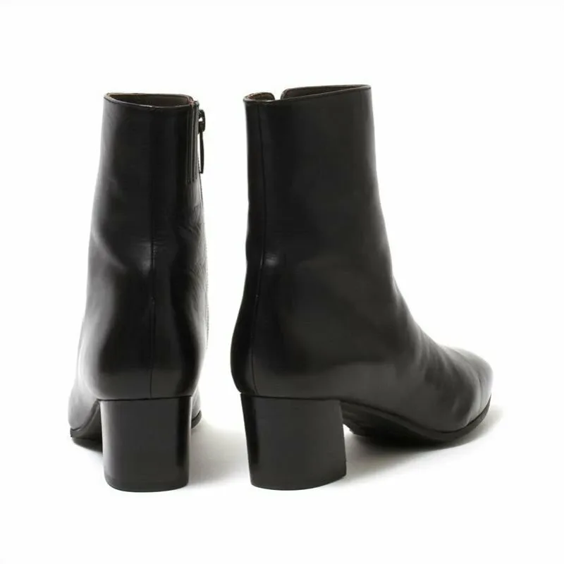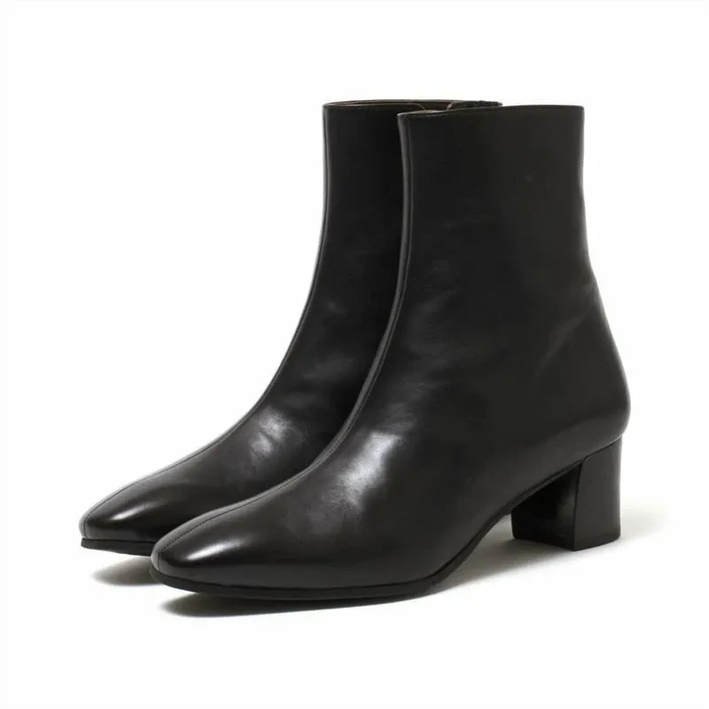 Эти простые короткие ботинки имеют центральный шов и трапециевидный каблук, что придает им современный вид. Они имеют лаконичную линию щиколотки, но изготовлены из мягкой итальянской телячьей кожи, поэтому нежно облегают стопу, обеспечивая комфортную посадку. Подошва: Резина / Высота каблука: 50 мм / Ширина: 2E
