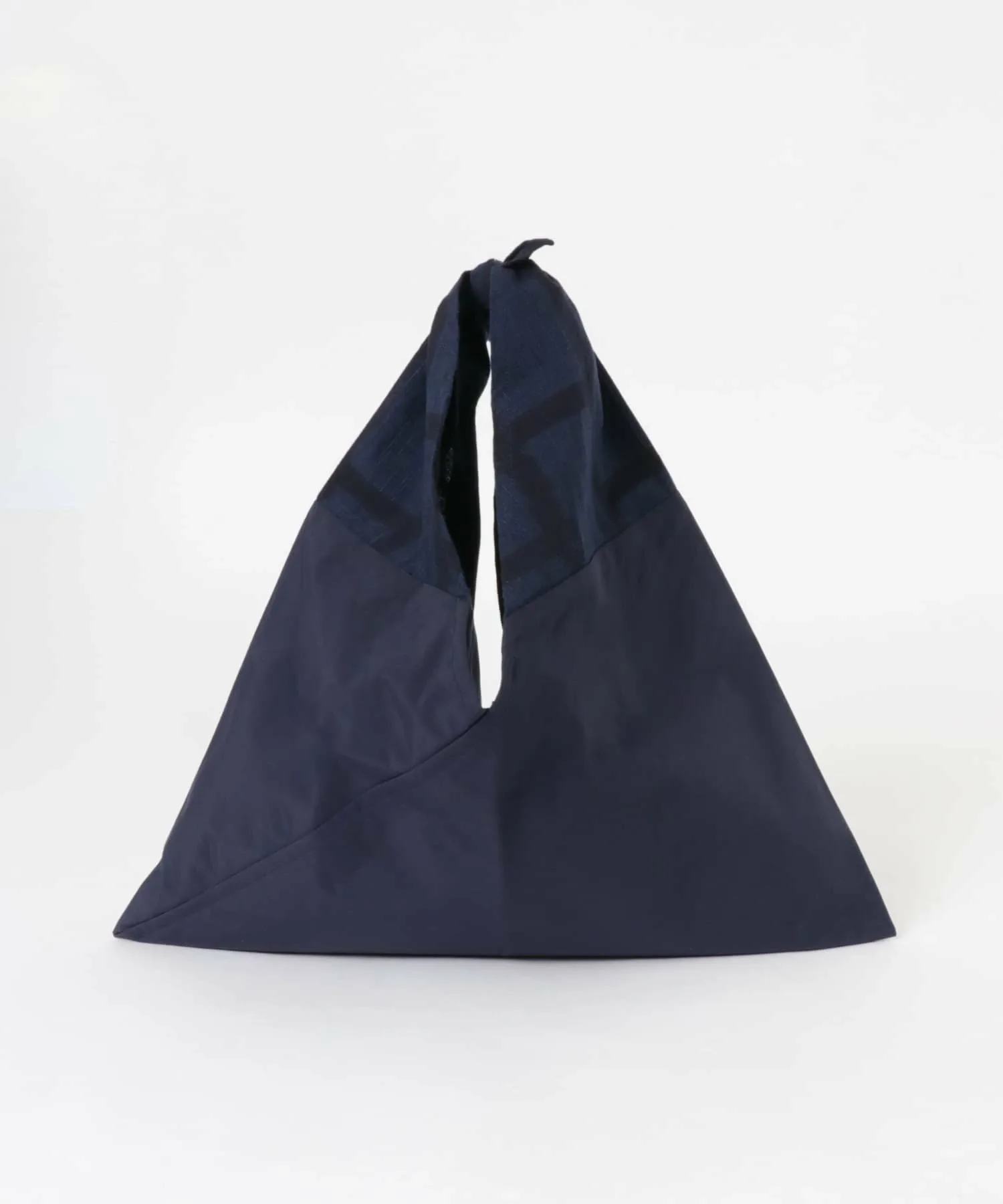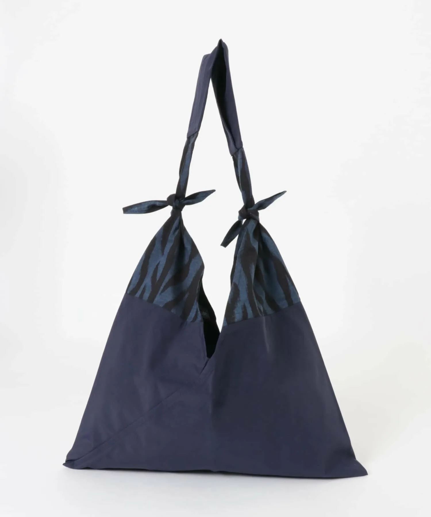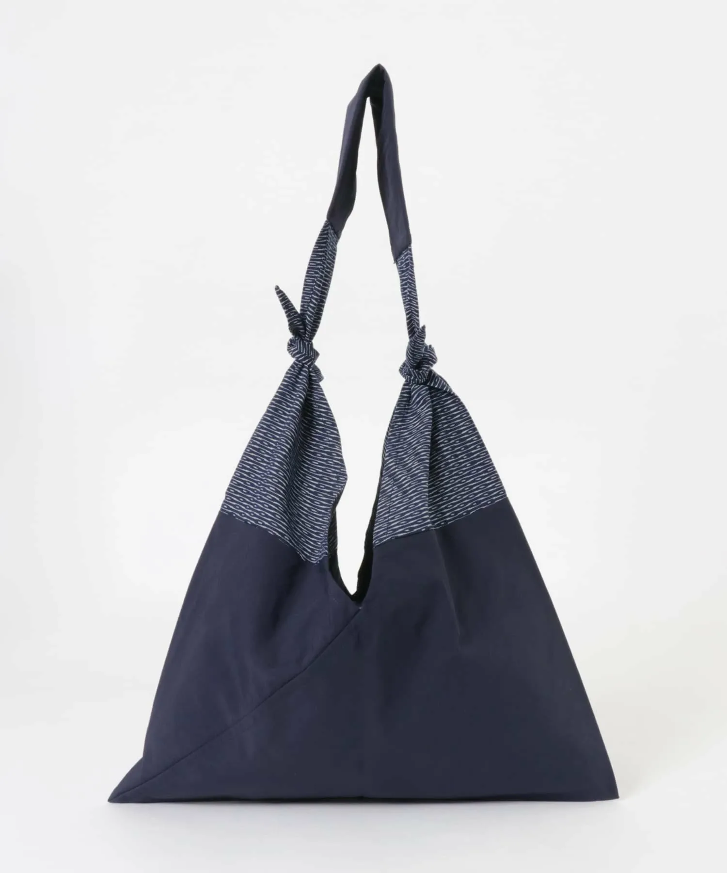 Эта сумка имеет простую треугольную форму с замысловатым узором, характерным для касури. Прочный, но легкий материал делает ее удобной для переноски. Она подходит для самых разных ситуаций, от повседневного использования до путешествий.