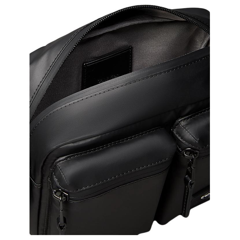 Сумка изготовлена из высококачественного синтетического материала, состоящего из 60% полиэстера и 40% полиуретана. Такое сочетание обеспечивает не только долговечность и износостойкость, но и сохранение формы изделия на протяжении всего срока службы. Гладкая текстура материала придает сумке особый шик и подчеркивает ее минималистичный дизайн. Универсальный черный цвет позволяет легко комбинировать сумку с различными элементами гардероба, создавая гармоничные и стильные ансамбли. Лаконичная прямоугольная форма с четкими контурами отражает современную эстетику Calvin Klein, а деликатный логотип бренда служит единственным, но выразительным декоративным элементом.