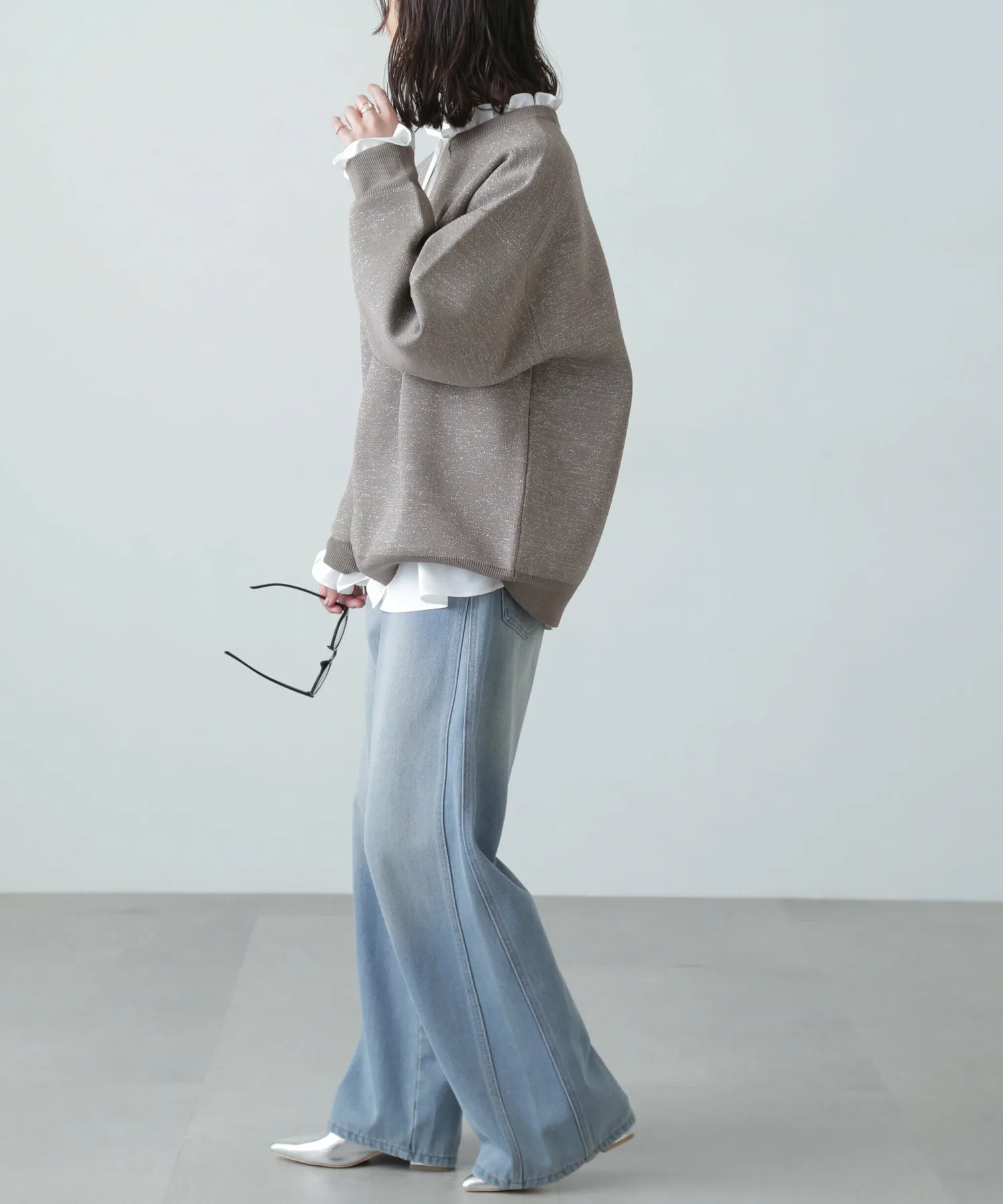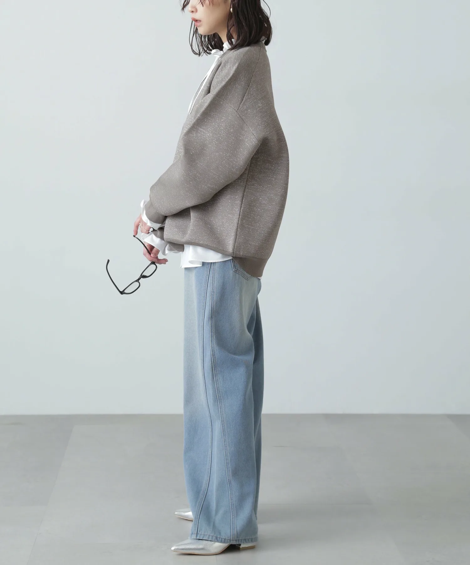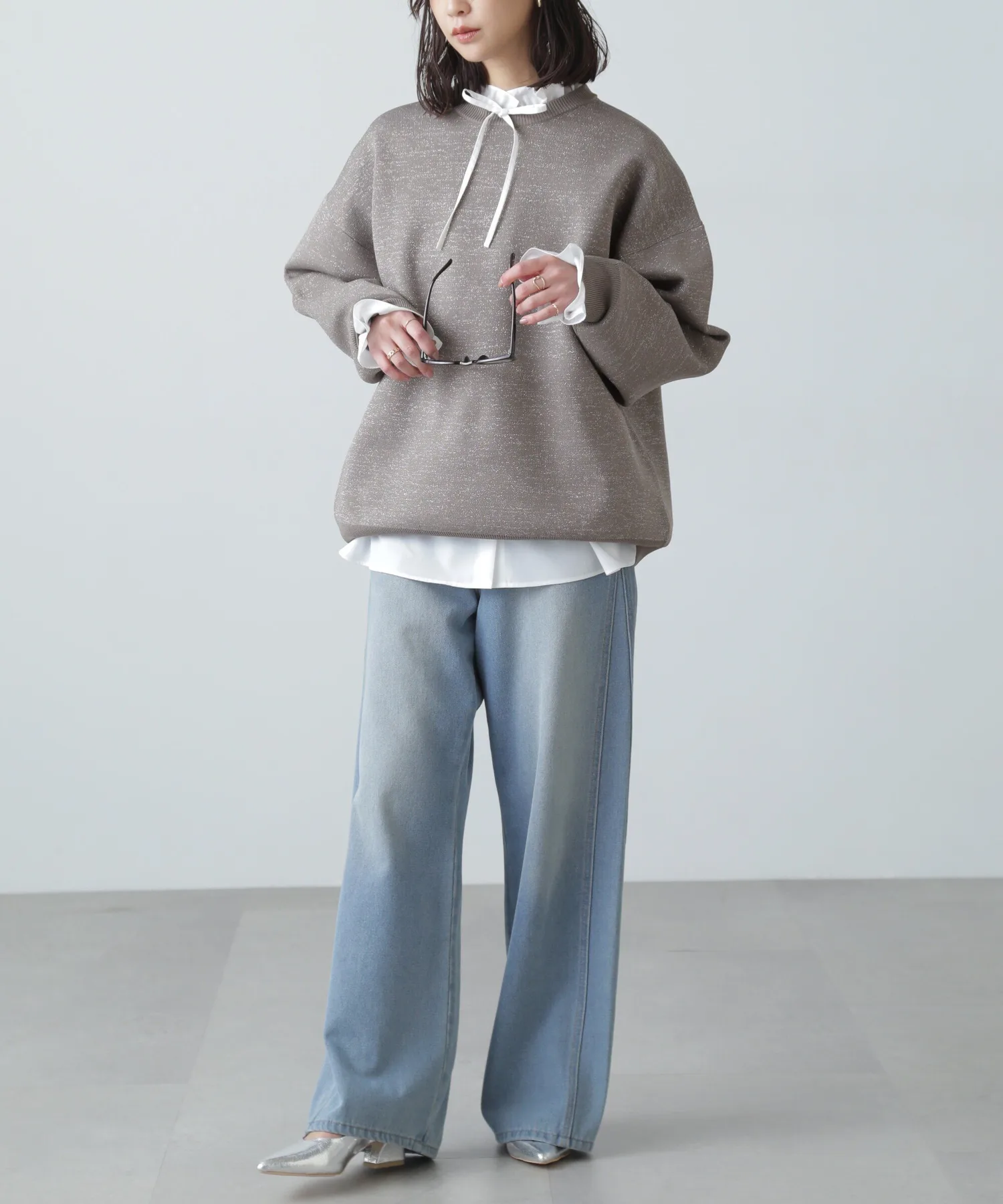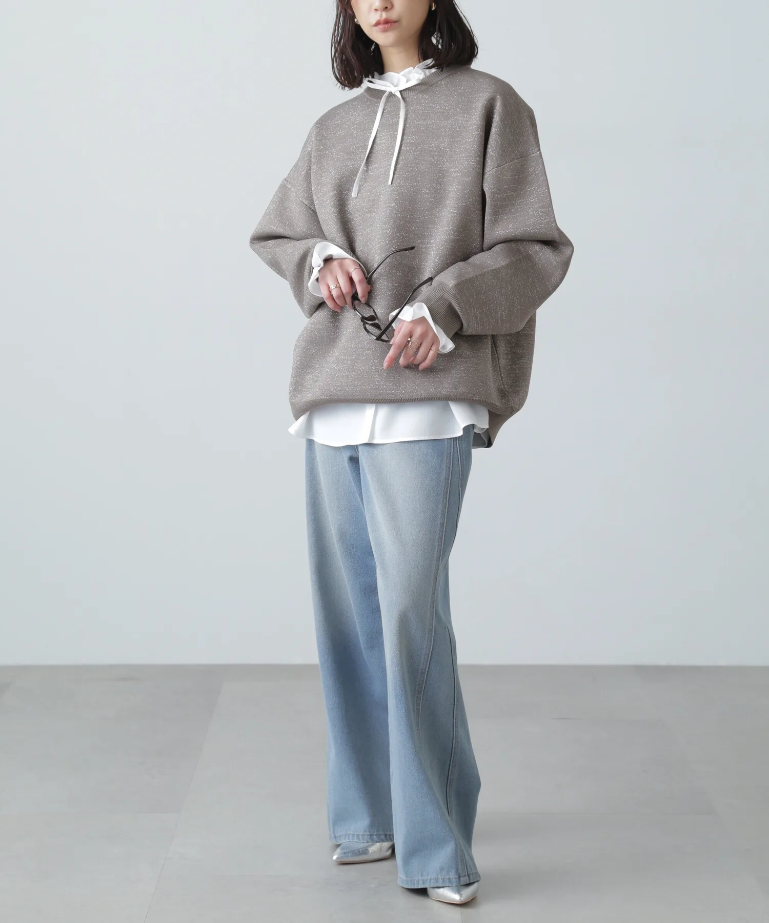 Трикотажная вещь с блестками, похожая на толстовку, идеально подходит для повседневного стиля для взрослых Простая, но свободная трикотажная вещь, напоминающая толстовку, с объемными рукавами. Изготовлена из блестящего материала, поэтому вы можете наслаждаться модным повседневным образом с гламурным оттенком. Блестящий материал приятен на ощупь. Благодаря трикотажной ткани, вещь не тяжелая даже при объемном силуэте. Сочетайте ее с шортами или, поскольку она имеет объемный силуэт, с узкой юбкой для аккуратного образа.