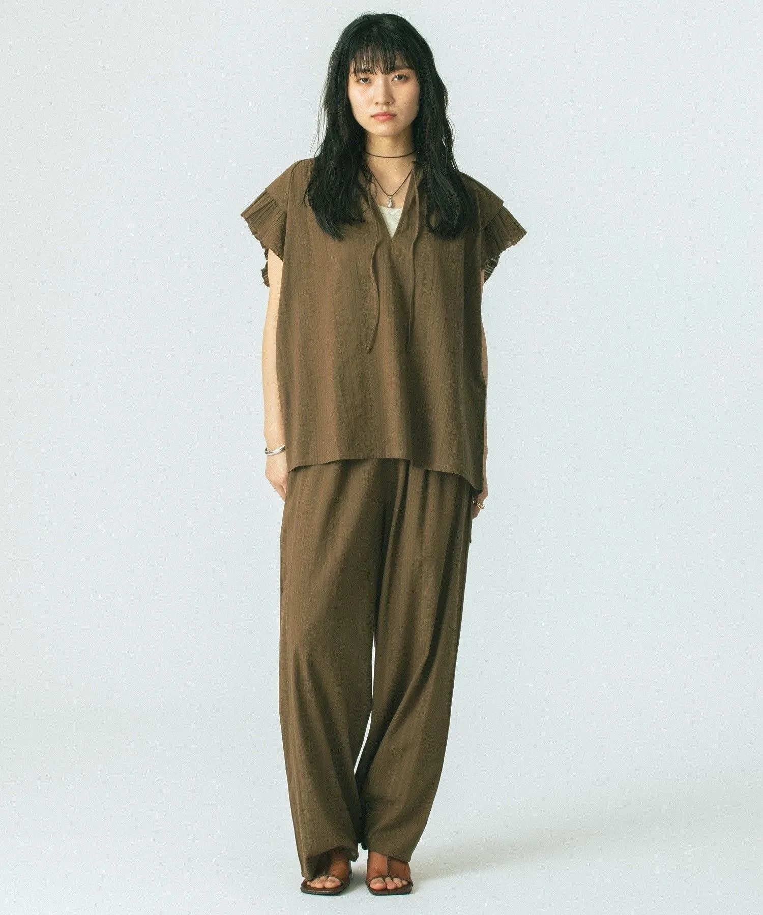 Свободный силуэт создает сбалансированный образ, независимо от того, заправлена блузка или носится свободно.