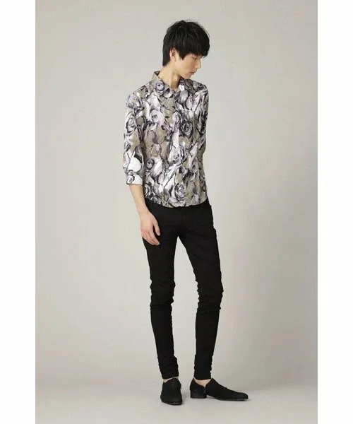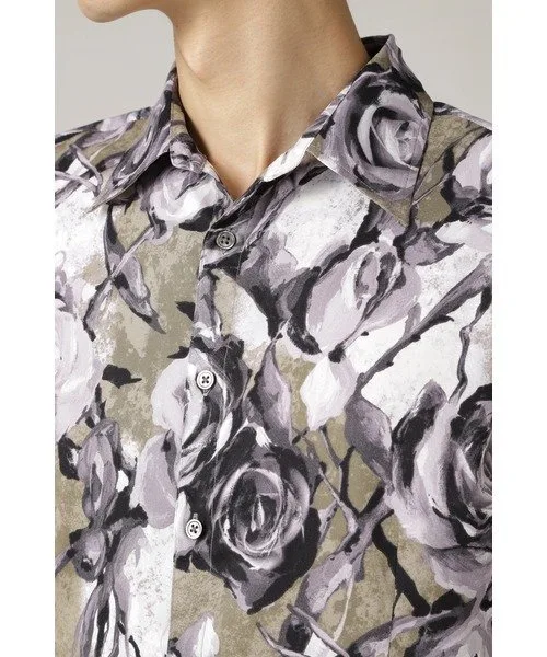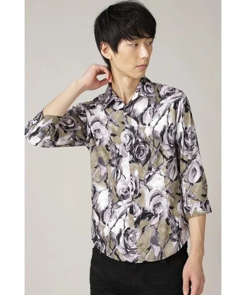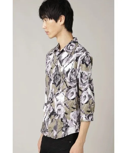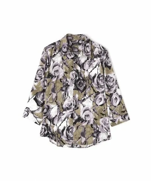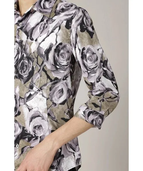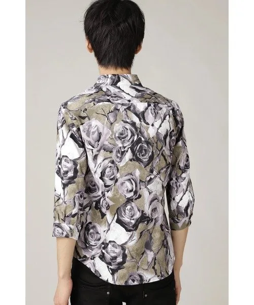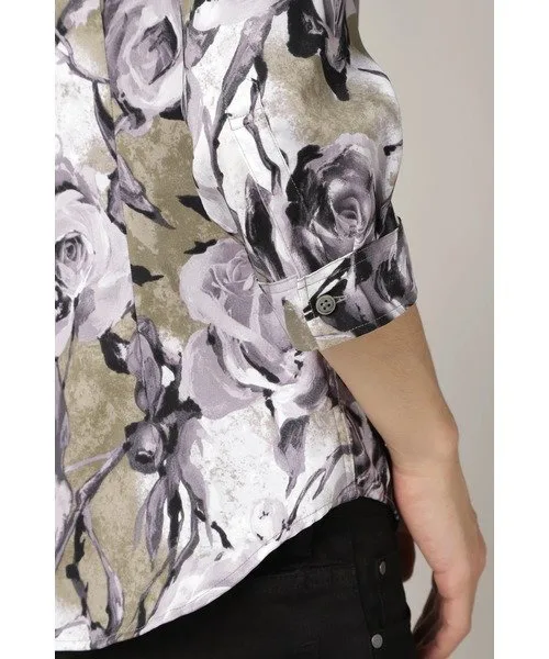 Рубашка с рукавами три четверти, украшенная оригинальным принтом с изображением роз.