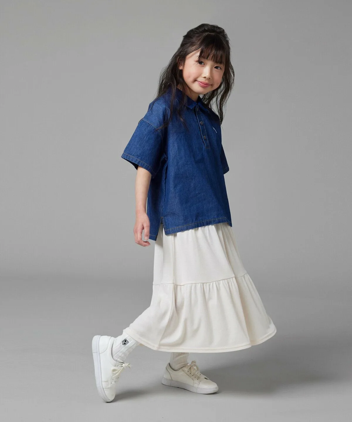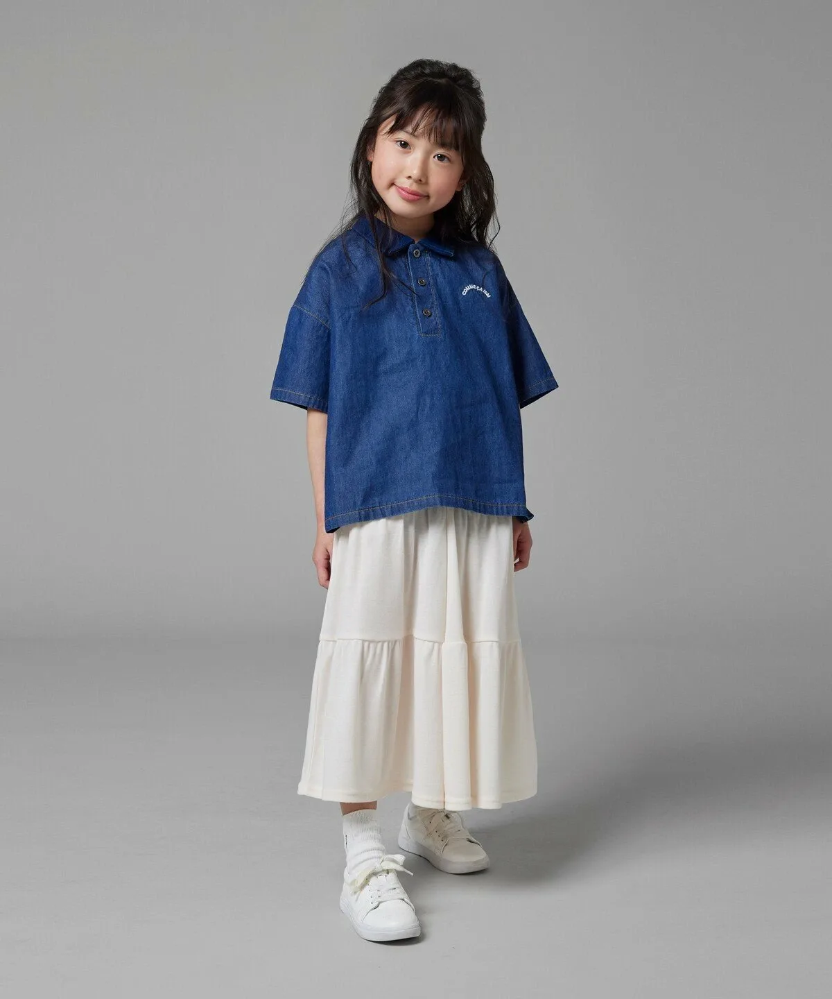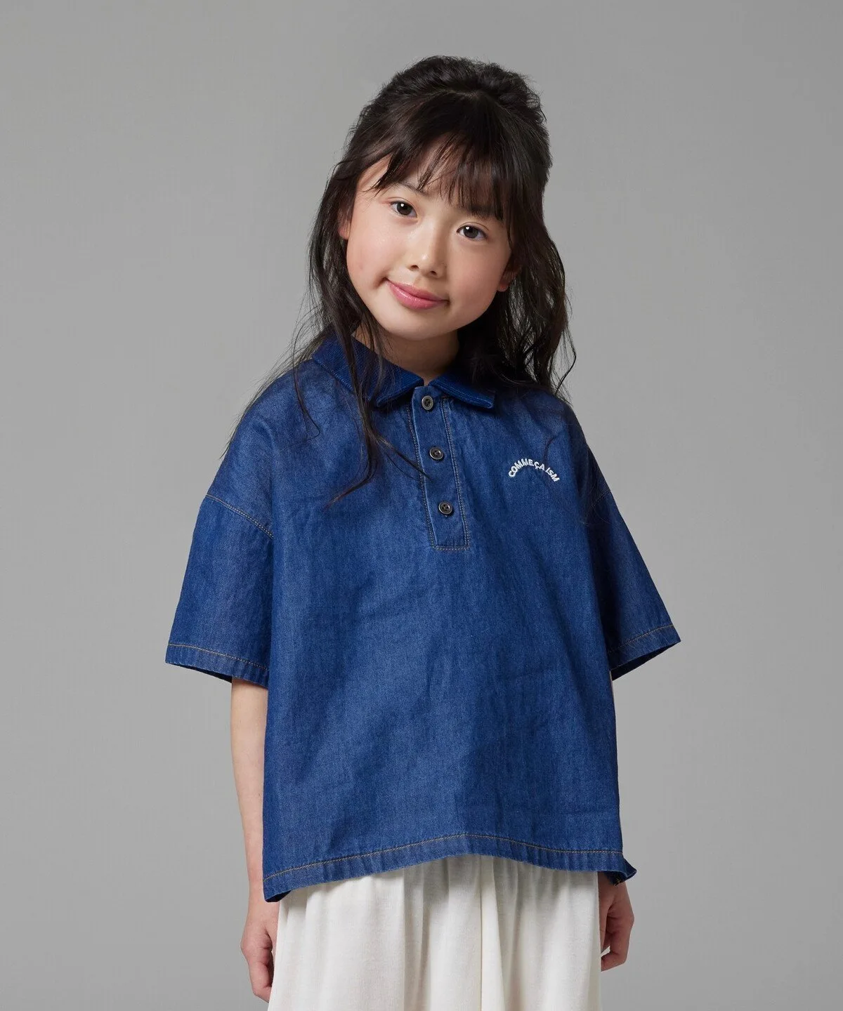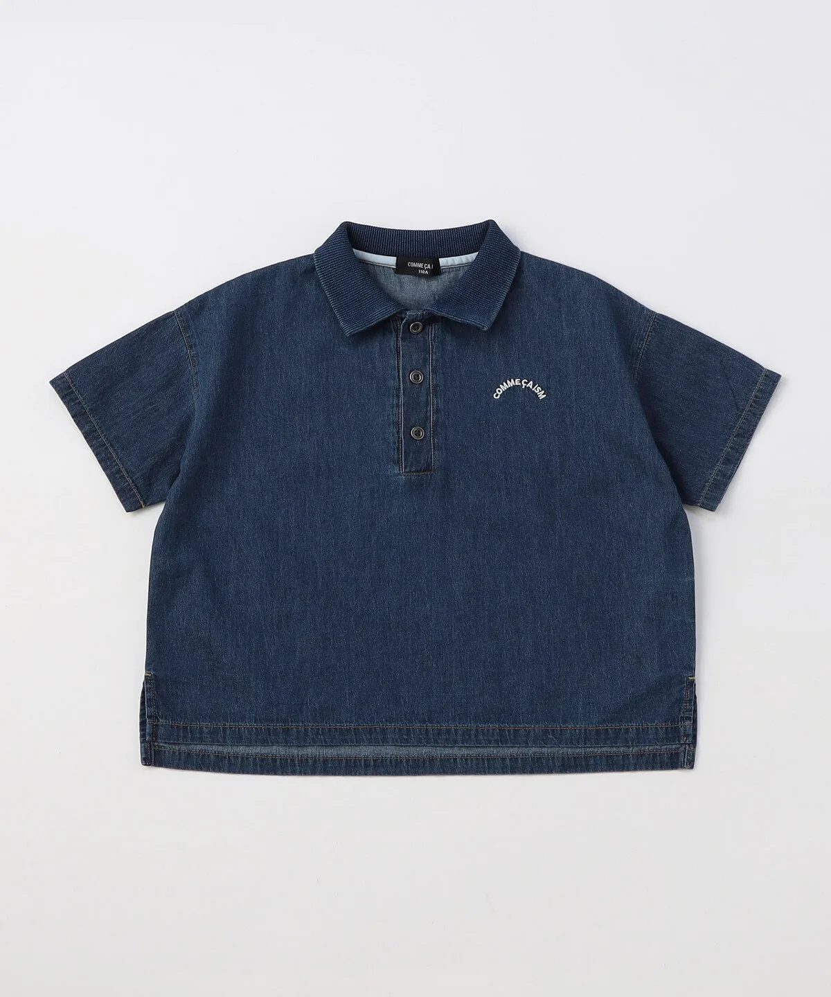 Эта джинсовая рубашка-поло изготовлена из тонкого, похожего на рубашку материала и имеет свободный крой.
