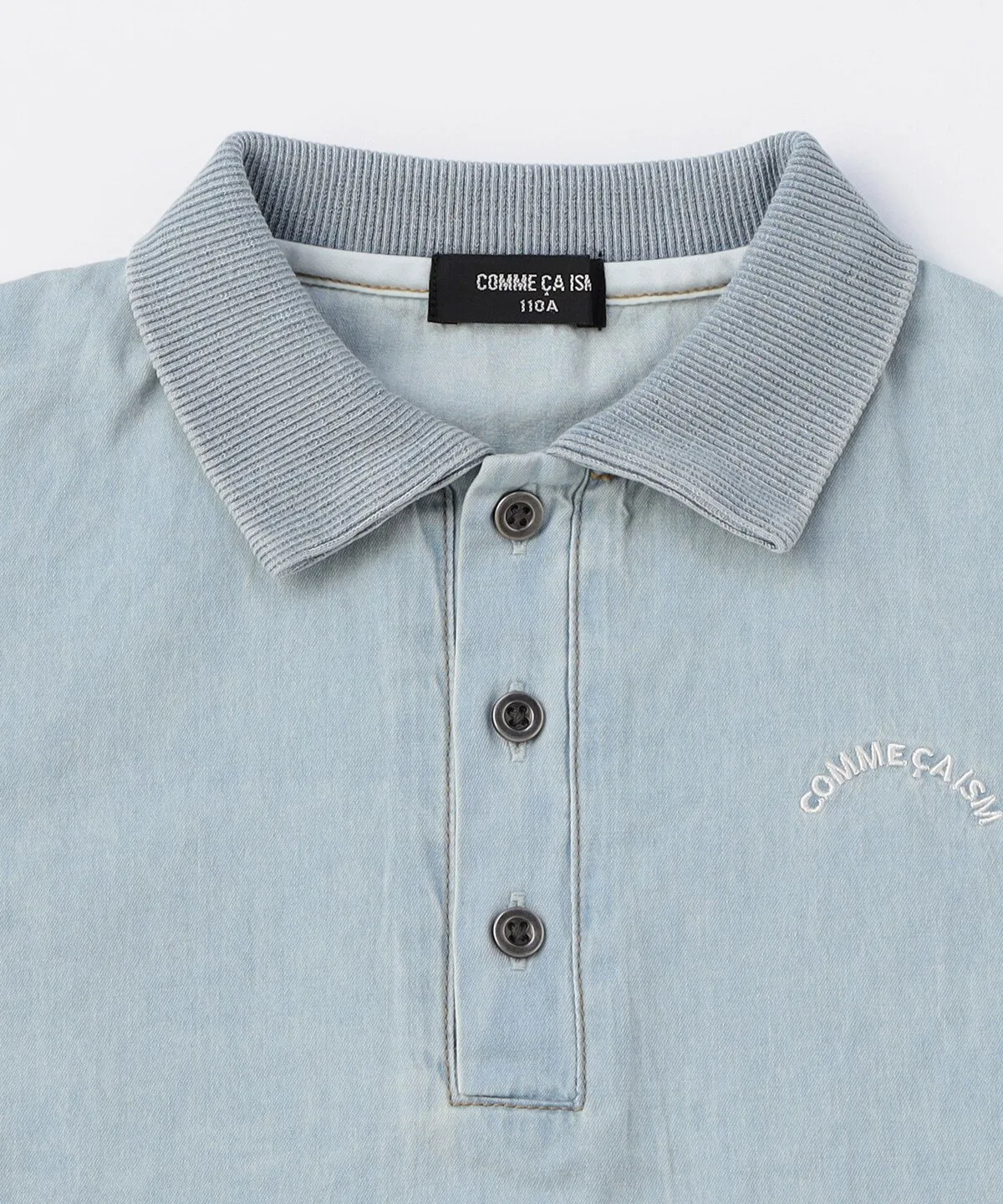 Эта джинсовая рубашка-поло изготовлена из тонкого, похожего на рубашку материала и имеет свободный крой.