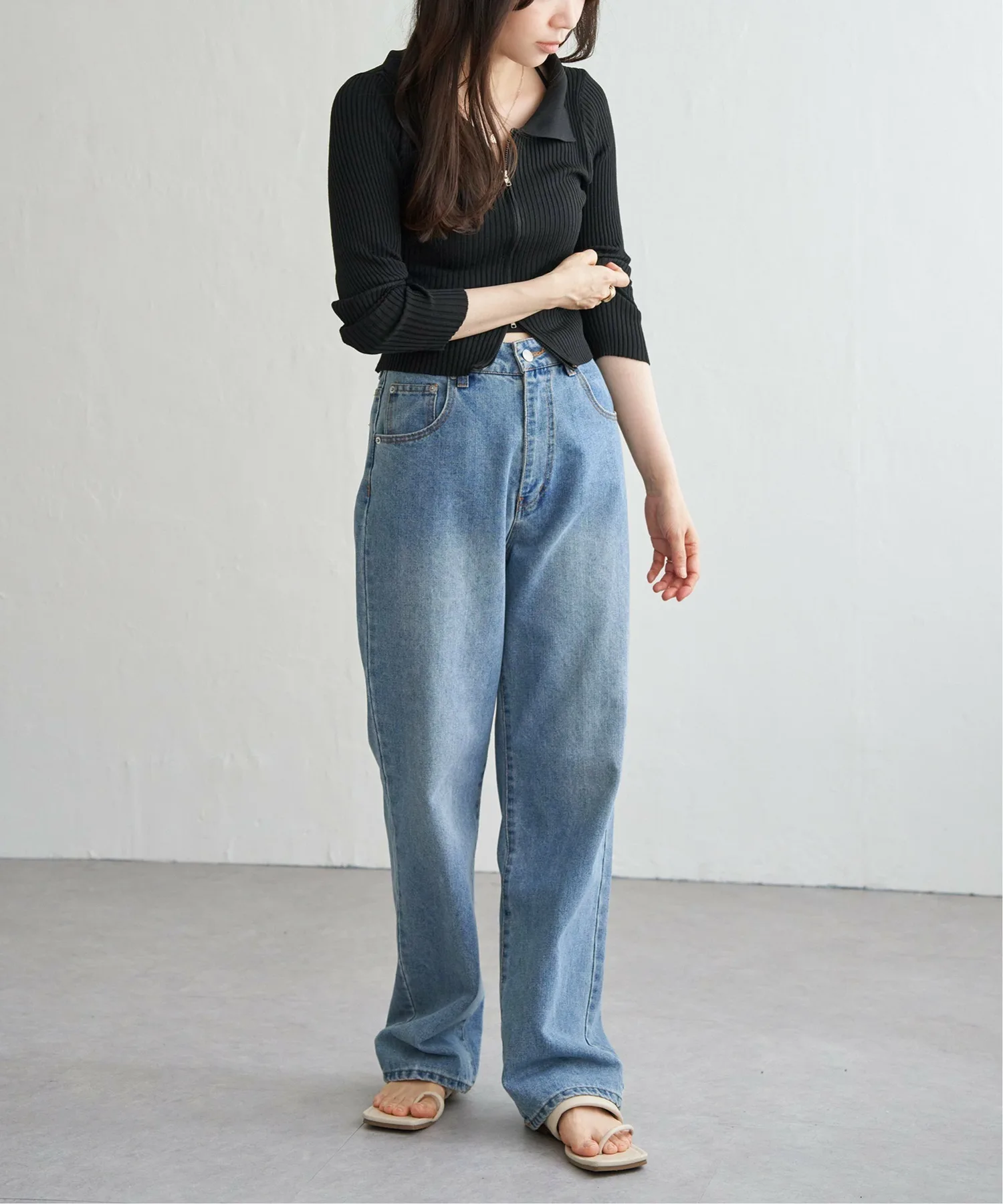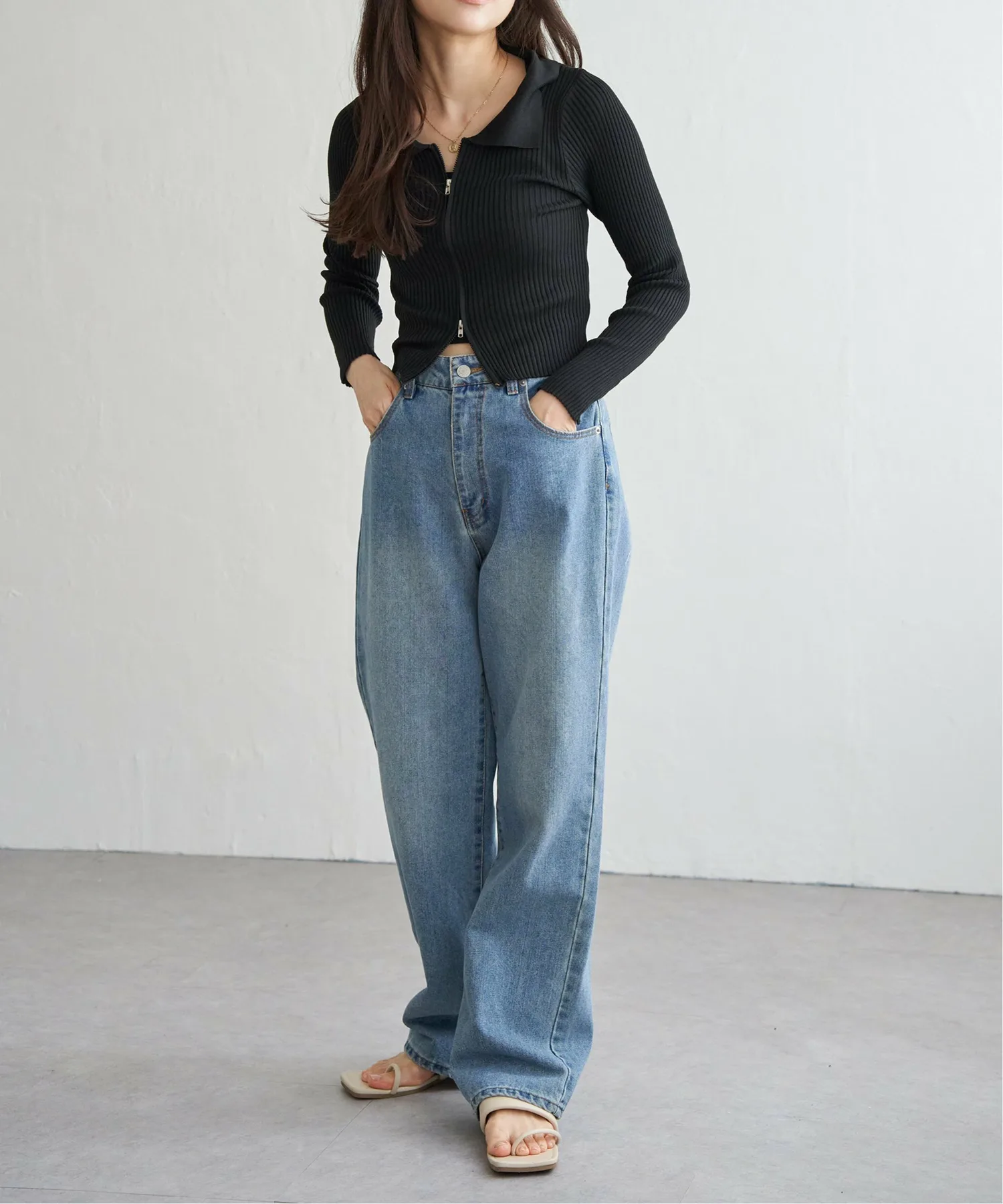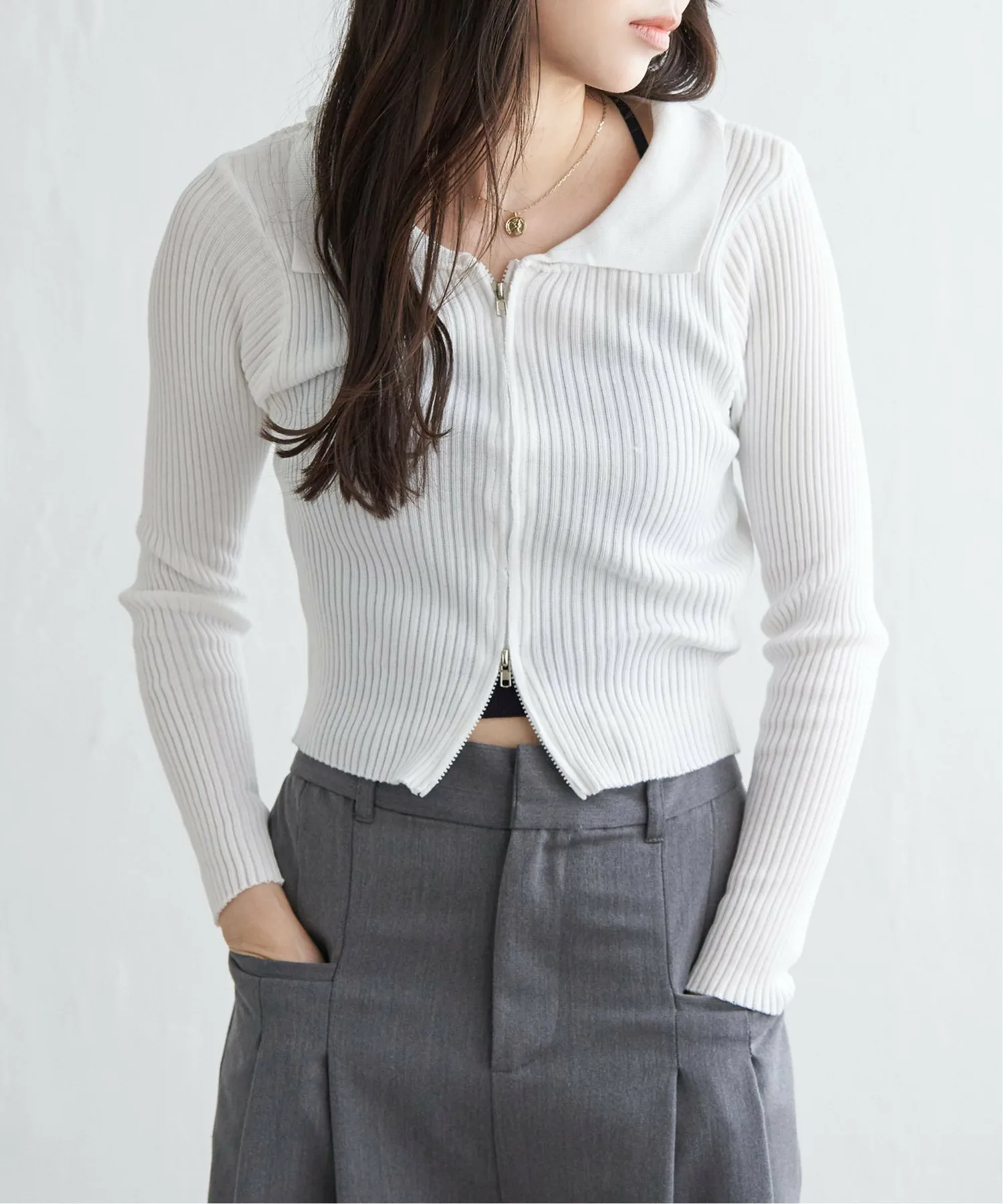 Трикотажная блузка в рубчик короткой длины с двойной молнией, позволяющая создавать самые разнообразные образы.