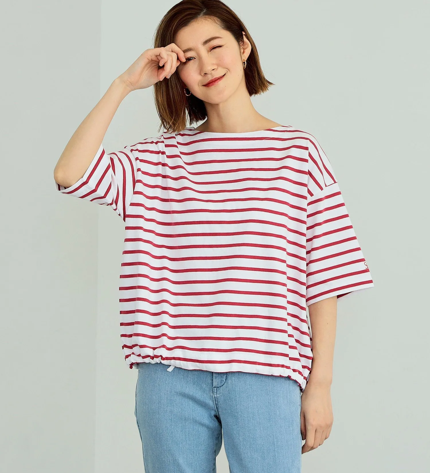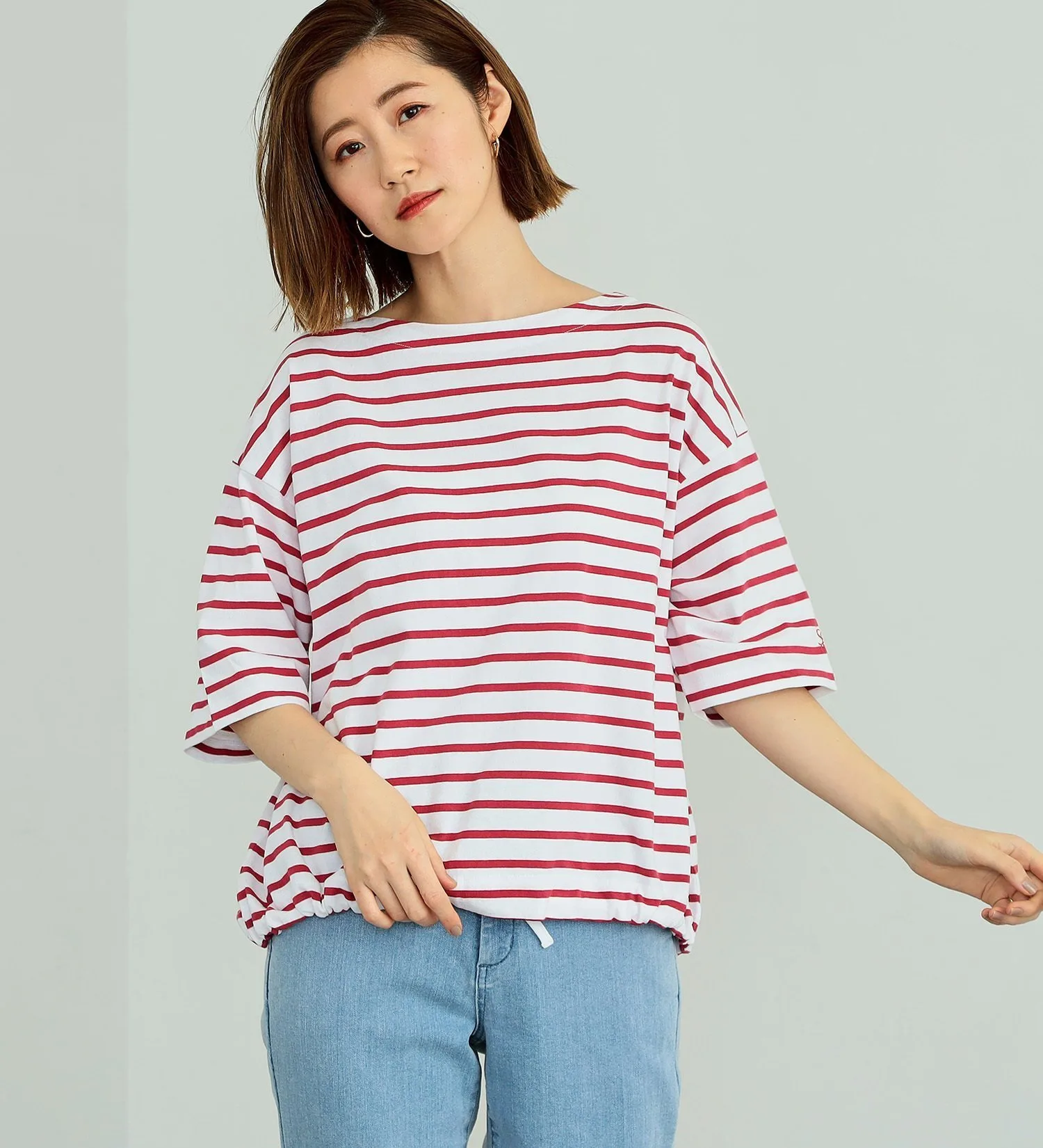 Изюминкой дизайна является шнурок внизу. Вы можете затянуть его, чтобы изменить силуэт, или носить футболку свободно, создавая множество разных образов.