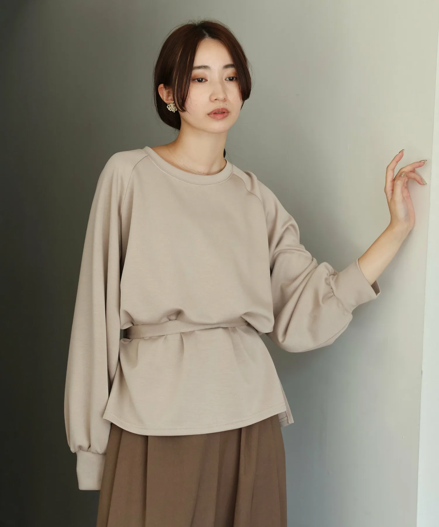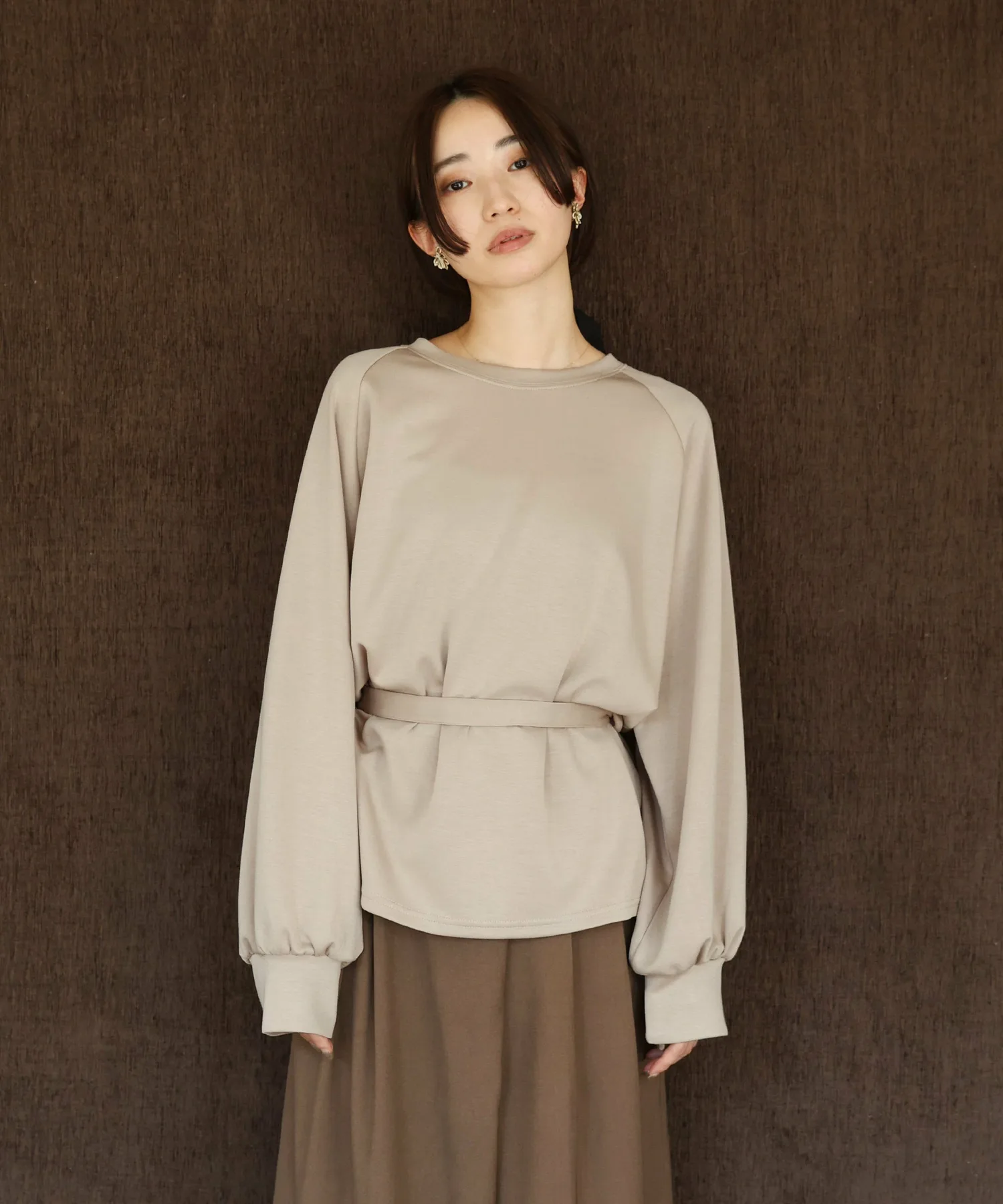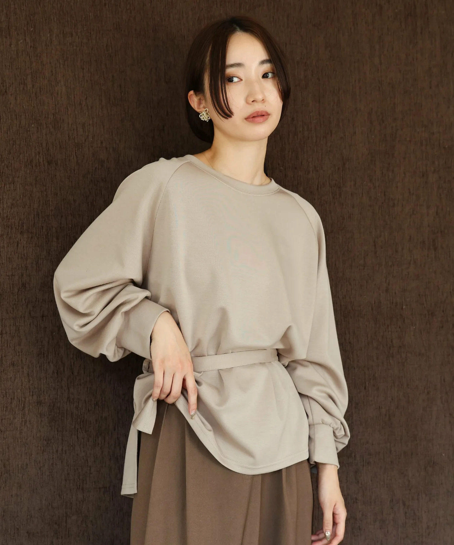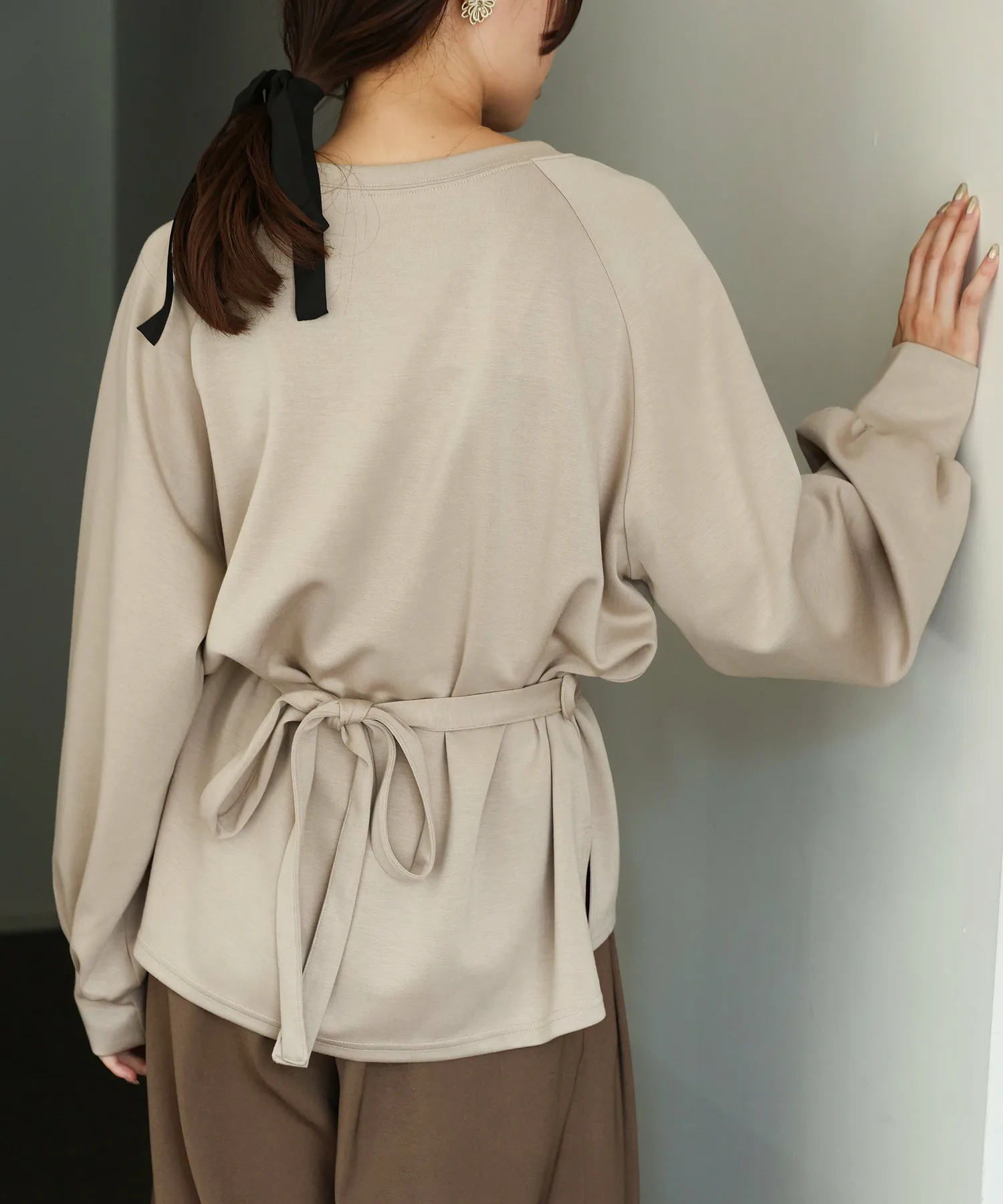 У него есть завязка на талии, поэтому в сочетании с объемными брюками вы можете создать четкий силуэт, отметив талию,