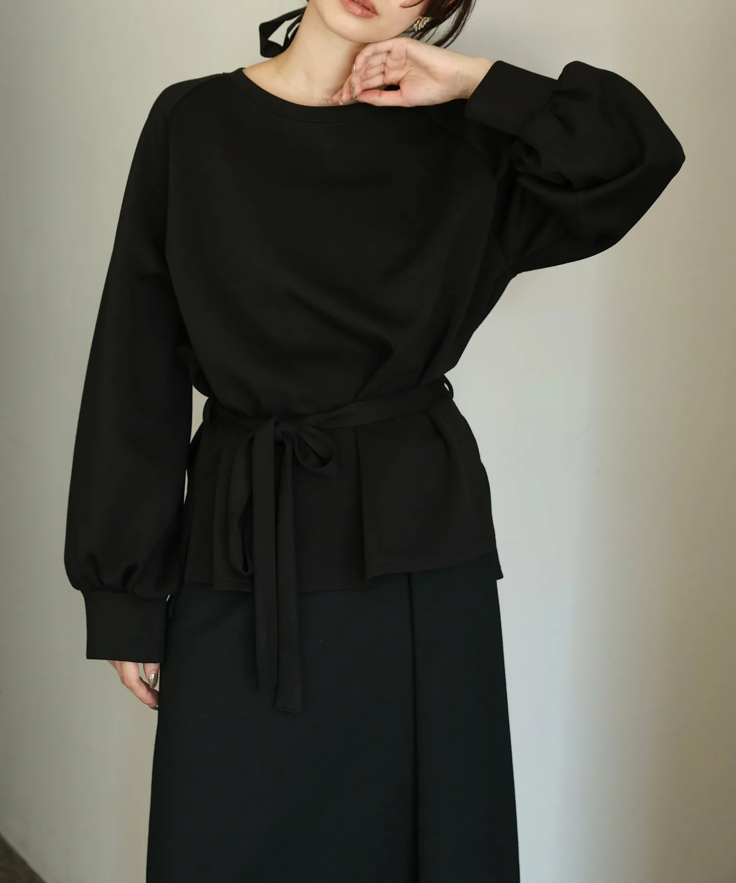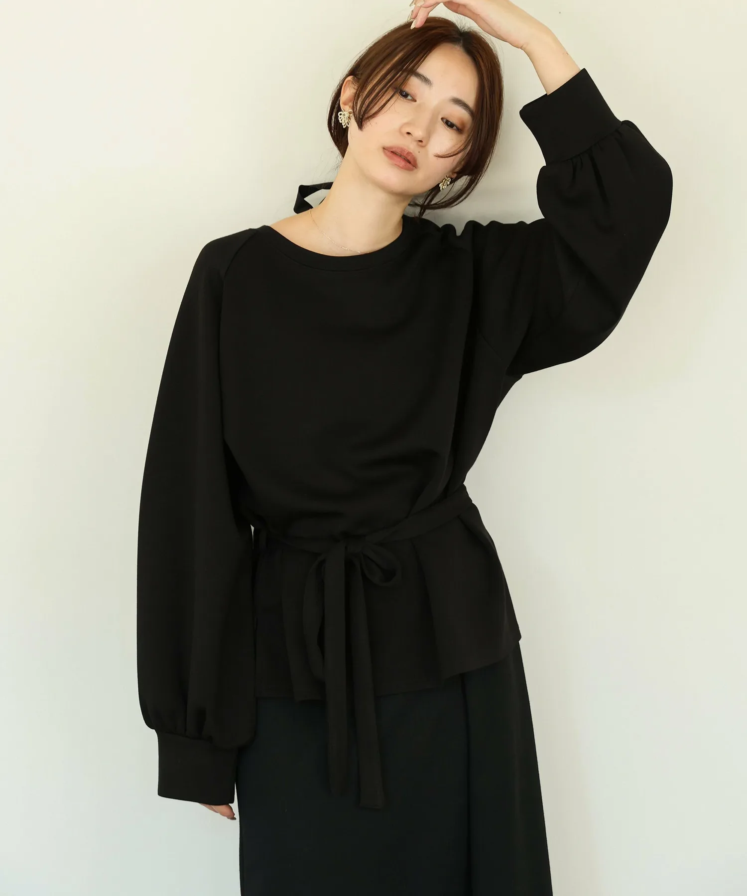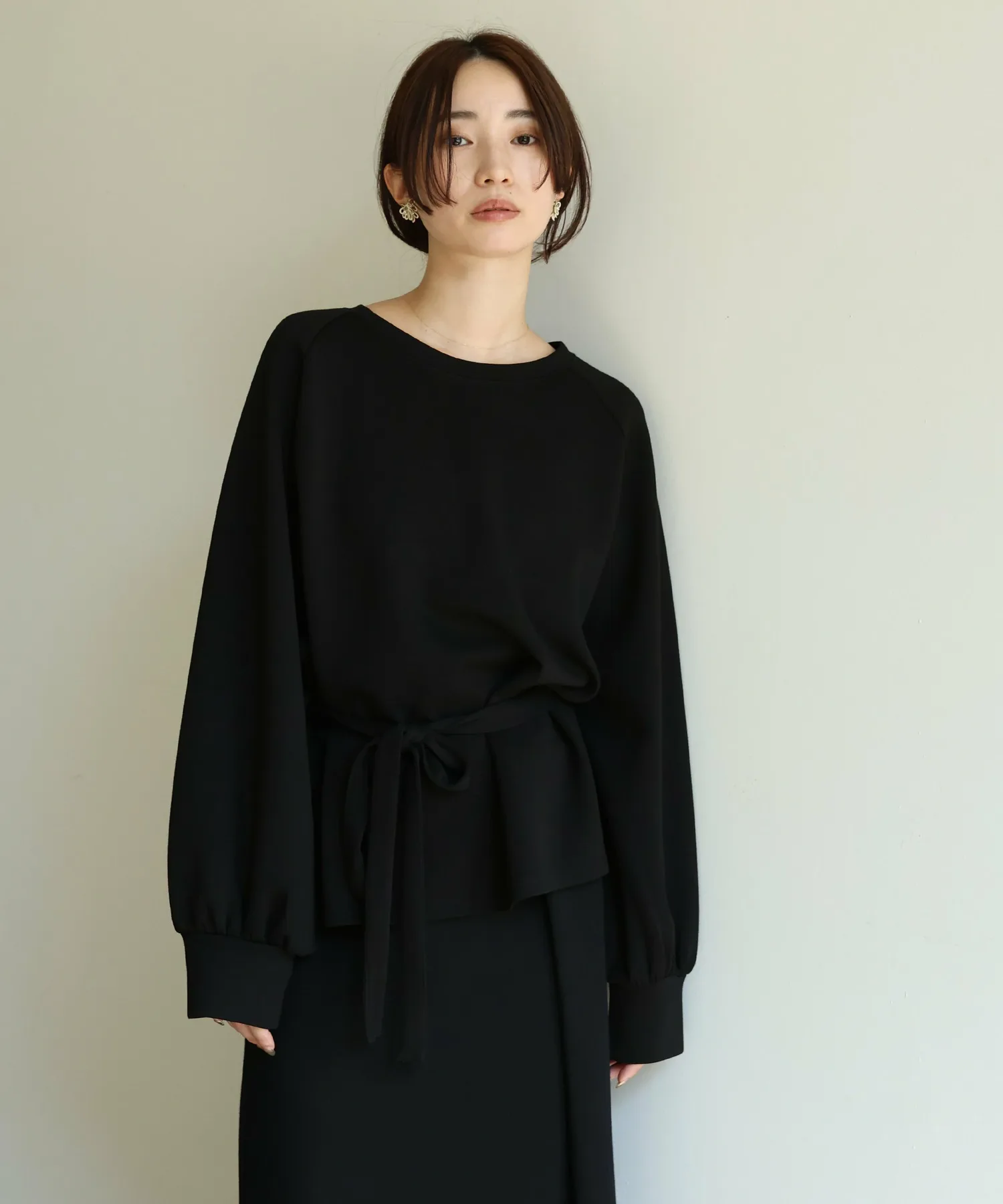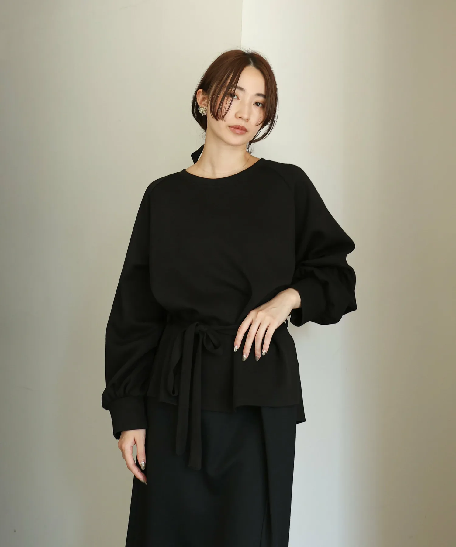 У него есть завязка на талии, поэтому в сочетании с объемными брюками вы можете создать четкий силуэт, отметив талию,