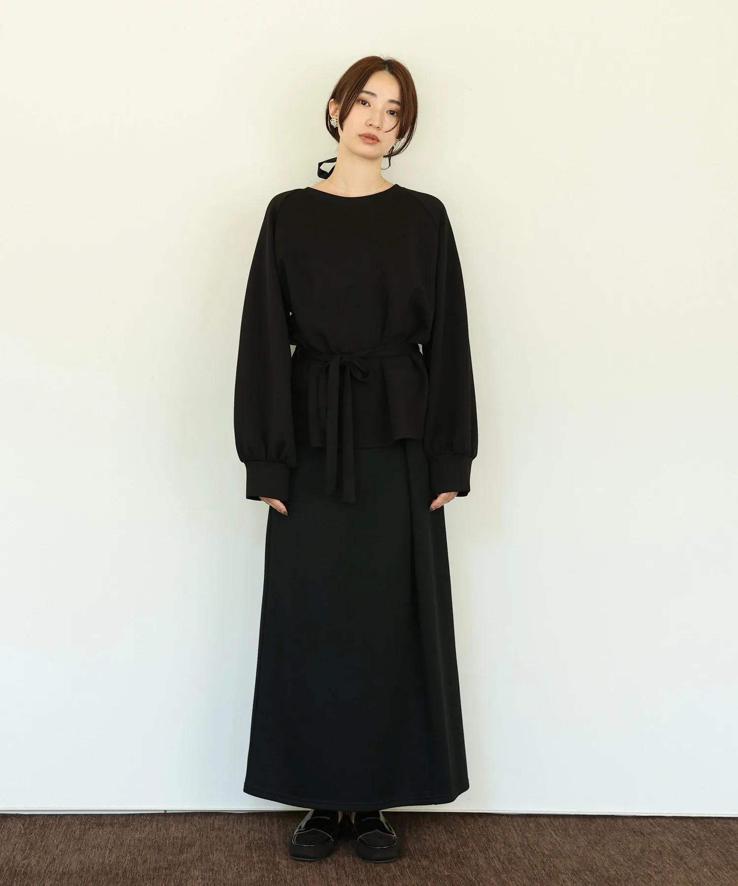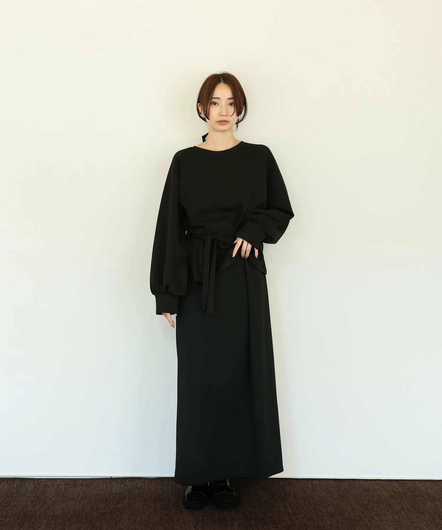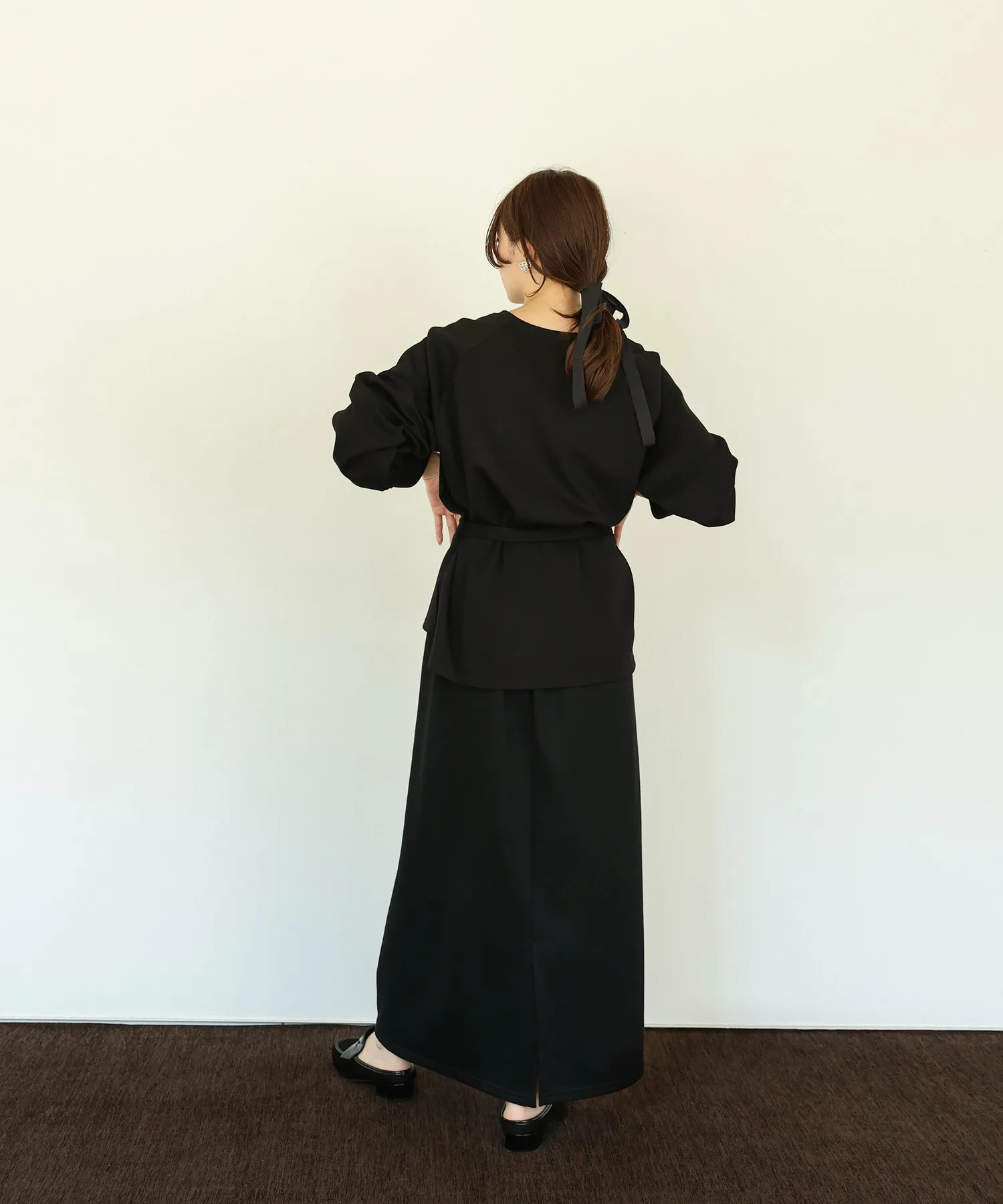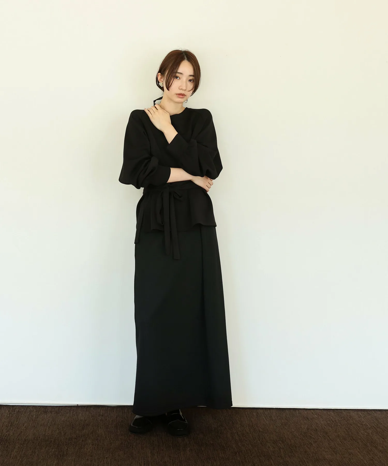 или в сочетании с более узкими брюками, сняв завязку, чтобы создать стиль, который максимально подчеркнет расклешенный подол,