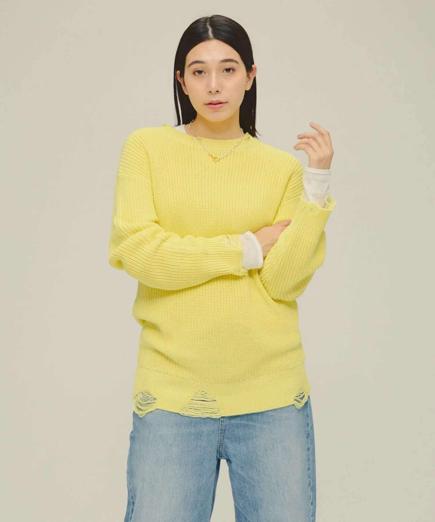 Трикотажный топ с эффектом потертости, создающий игривый взрослый образ.