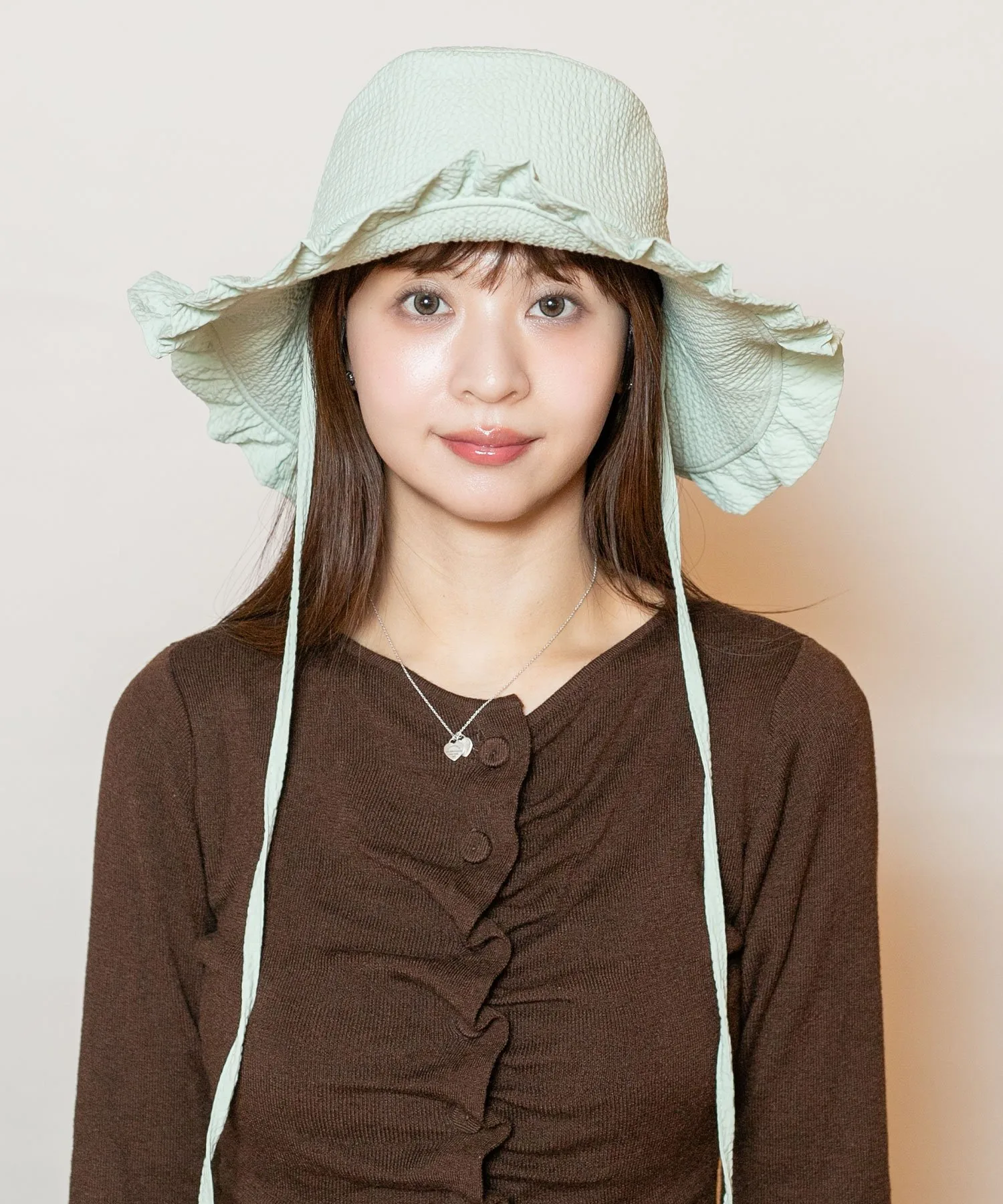 Длинные, волнистые поля имеют проволочный каркас для регулировки размера. В комплекте также идёт съёмный ремешок под подбородком. Материал