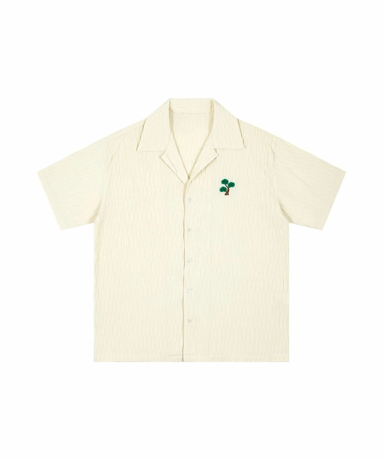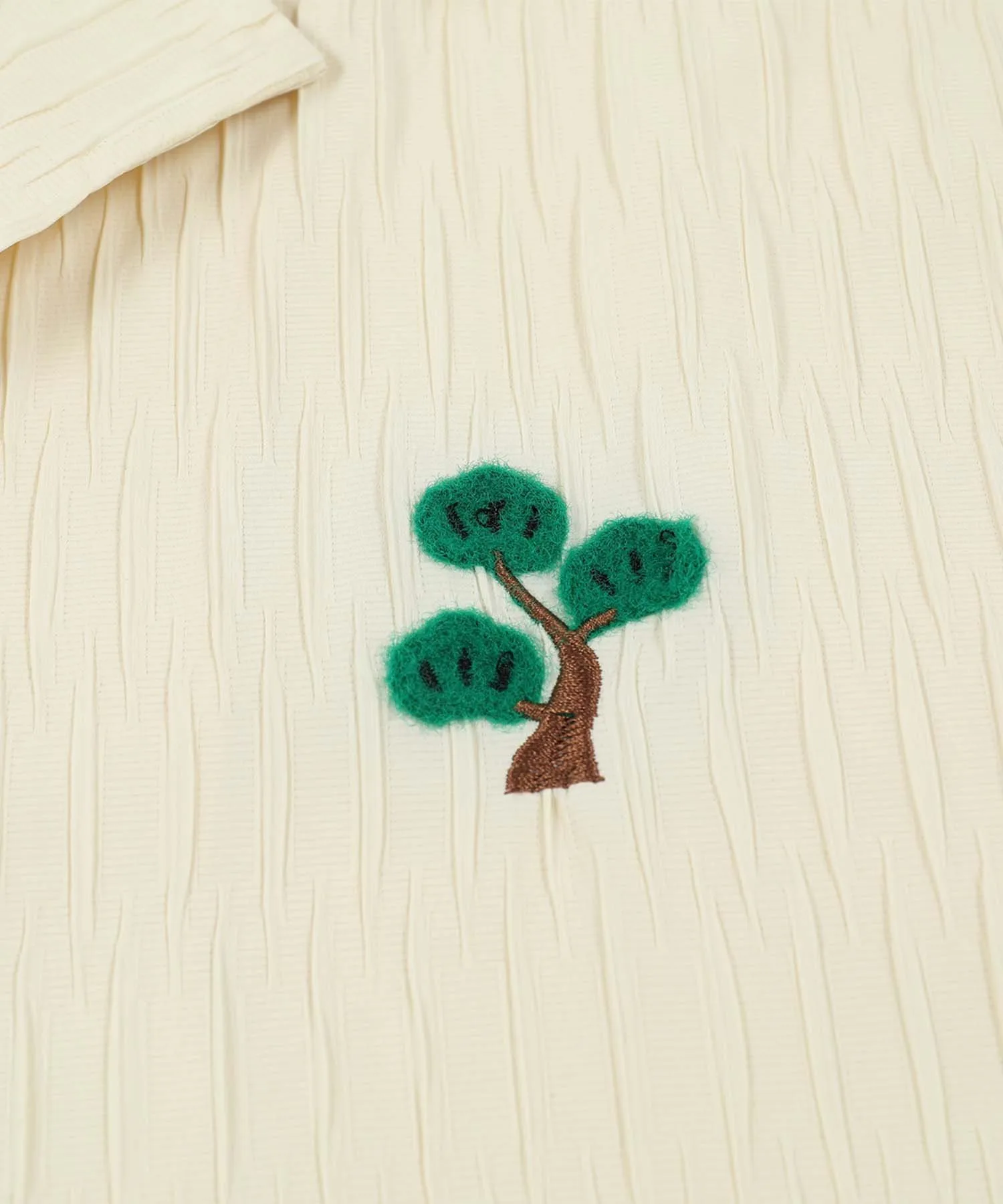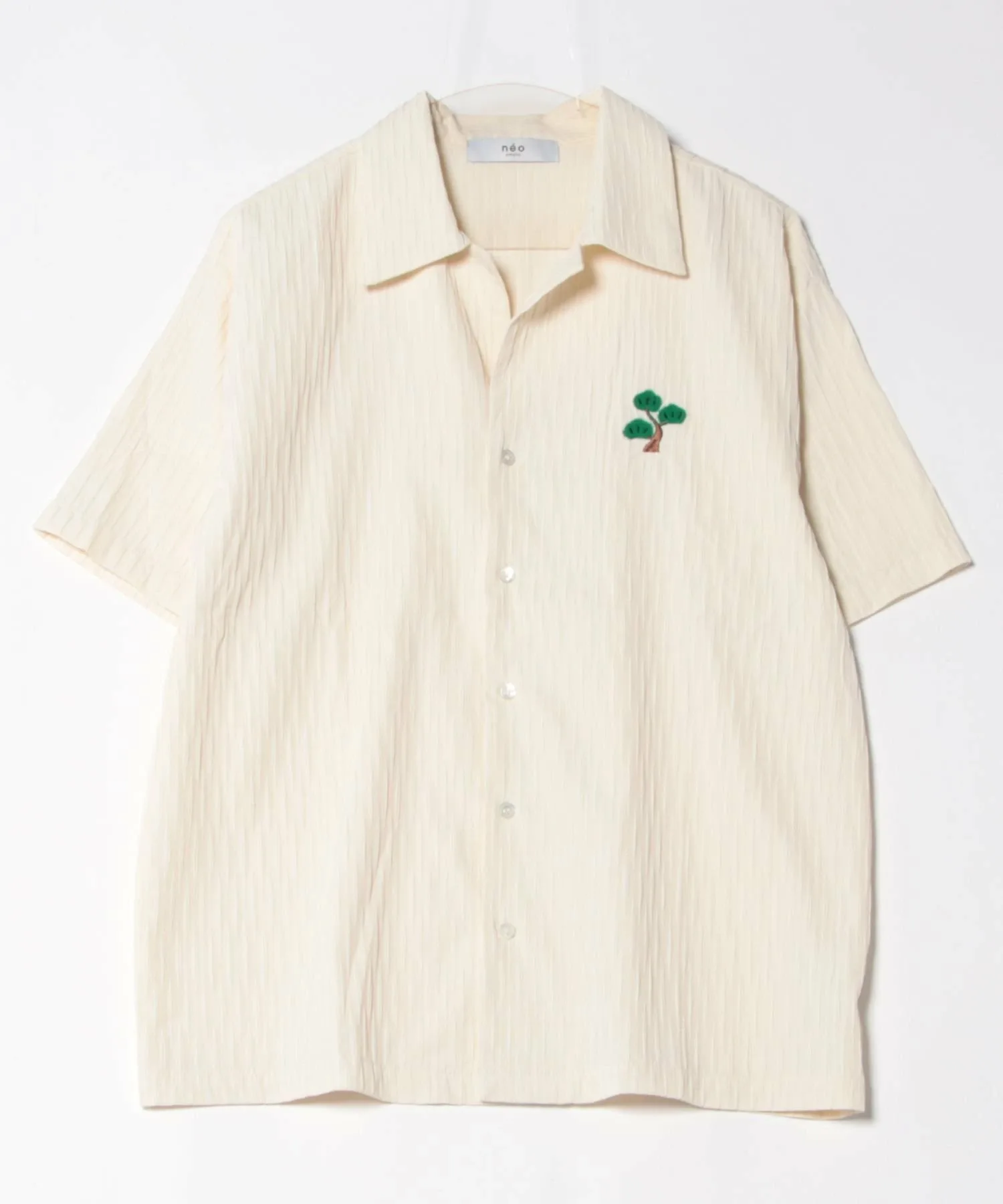 『Рубашка с открытым воротником, украшенная одной вышивкой на груди.』