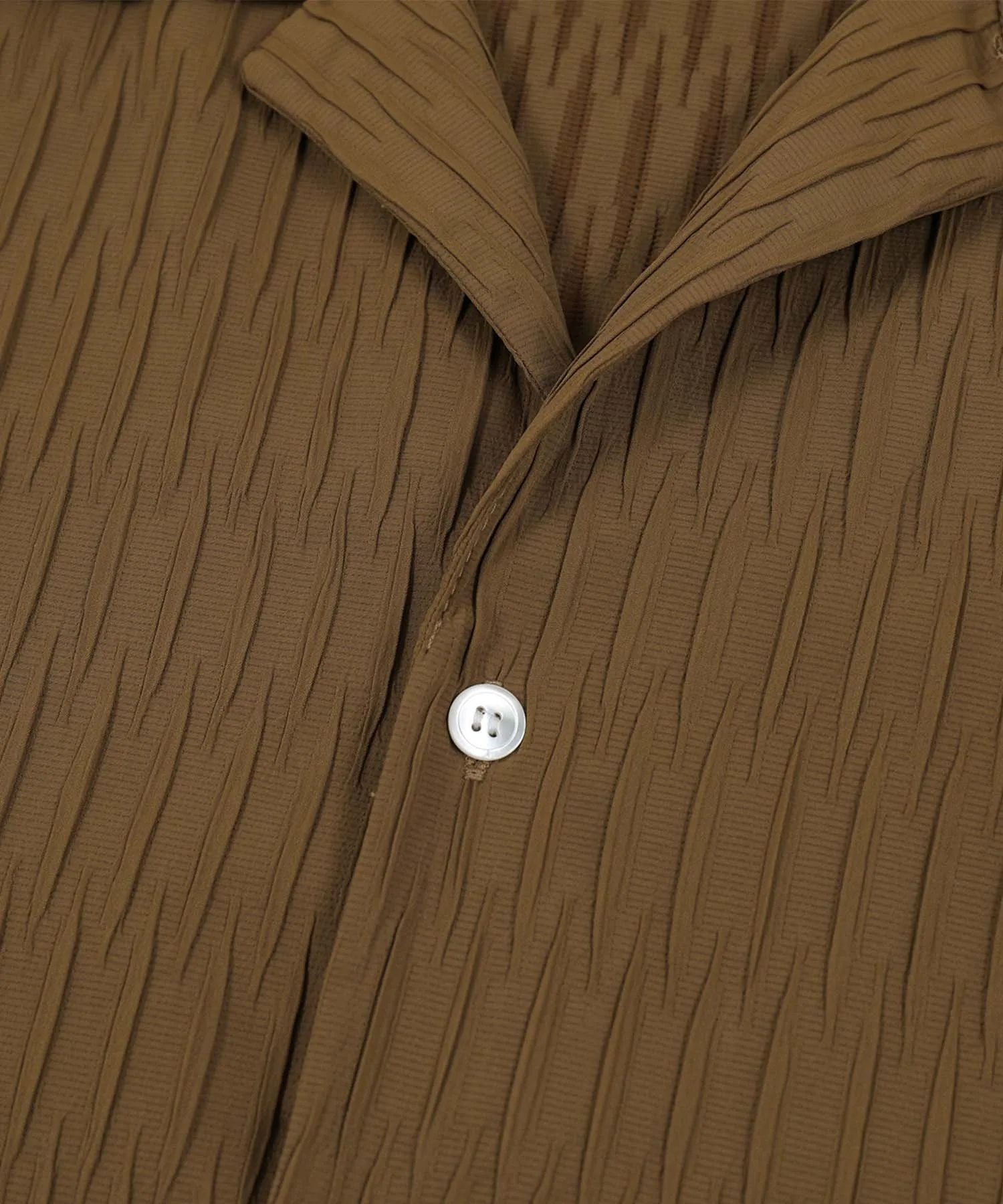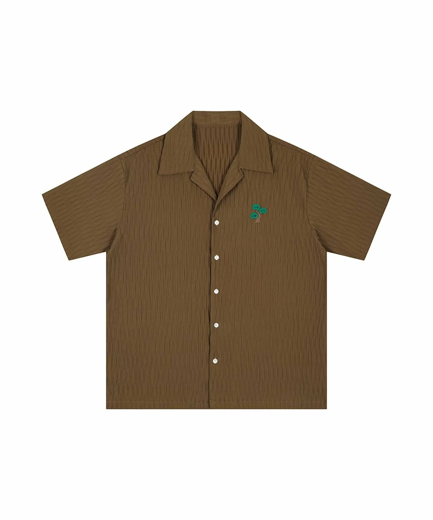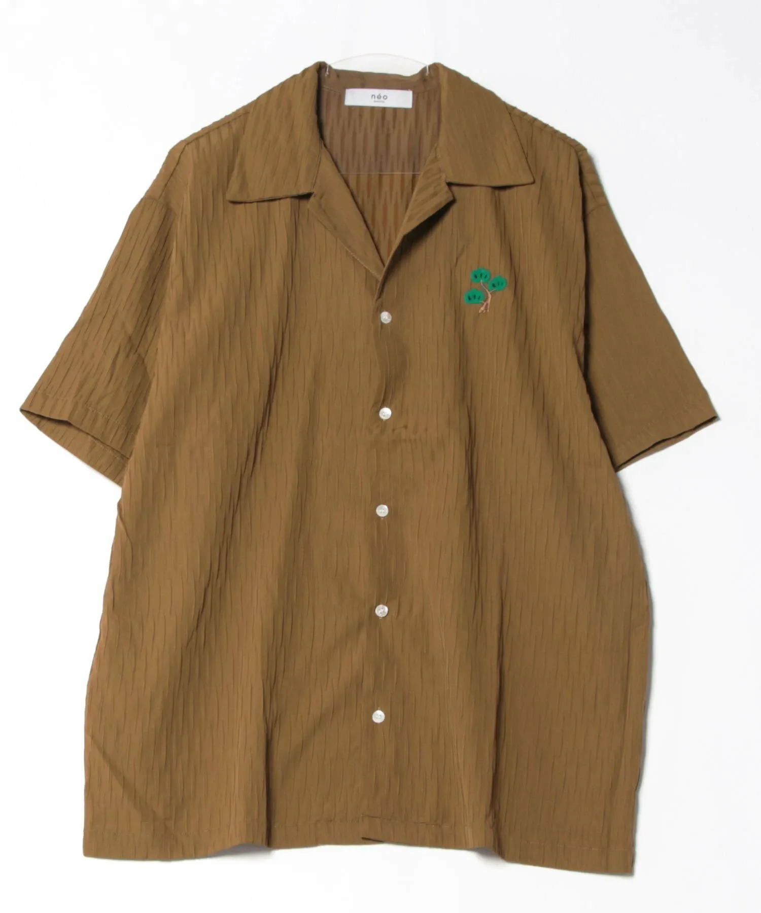 『Рубашка с открытым воротником, украшенная одной вышивкой на груди.』