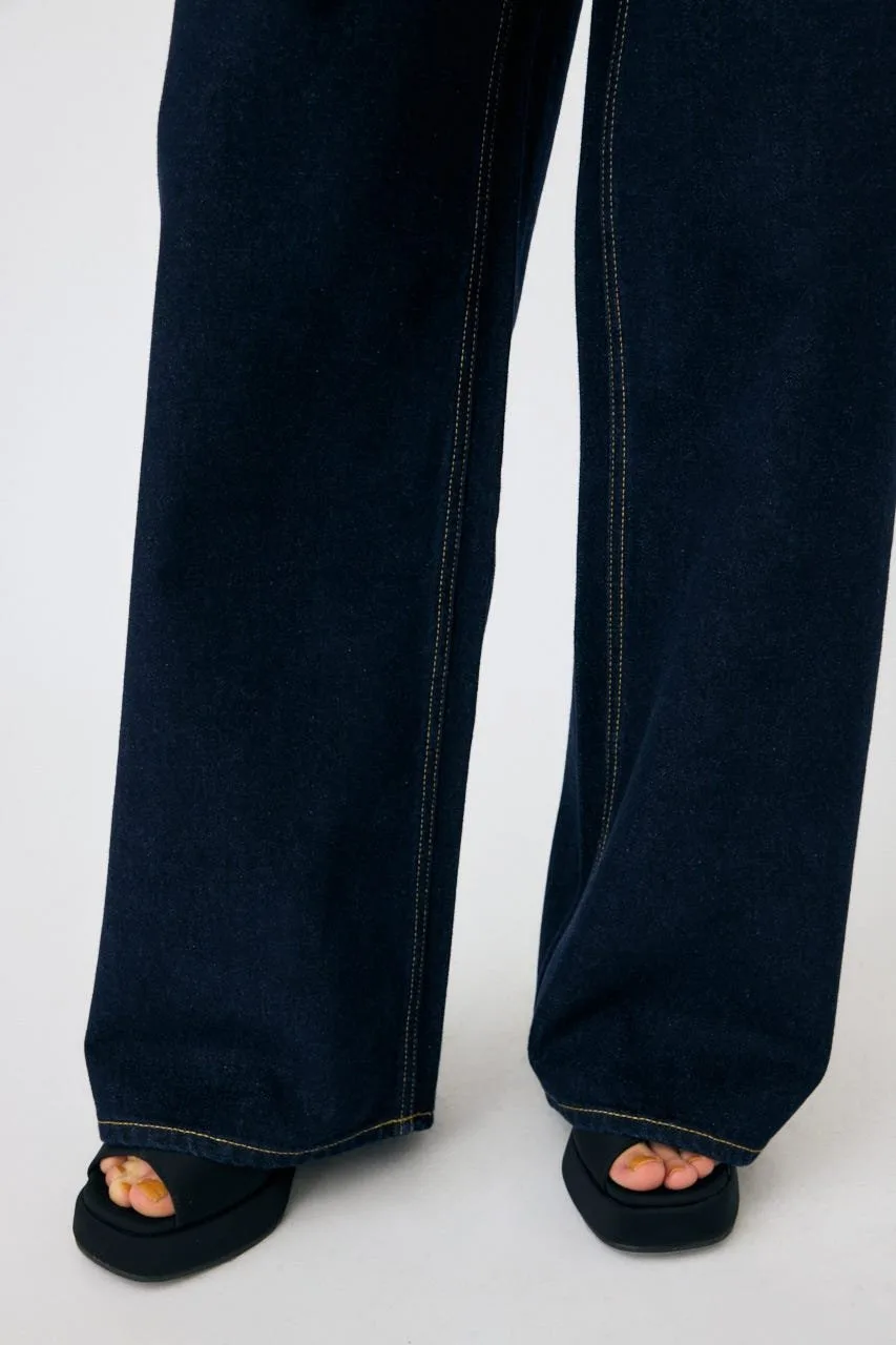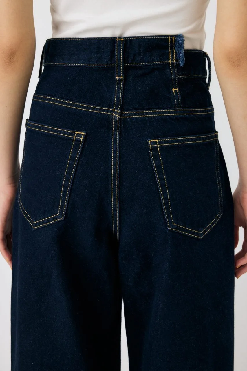 Широкий прямой силуэт, простирающийся от облегающей талии до низа, визуально удлиняет ноги. Легкий мальчишеский стиль также является изюминкой этих джинсов.