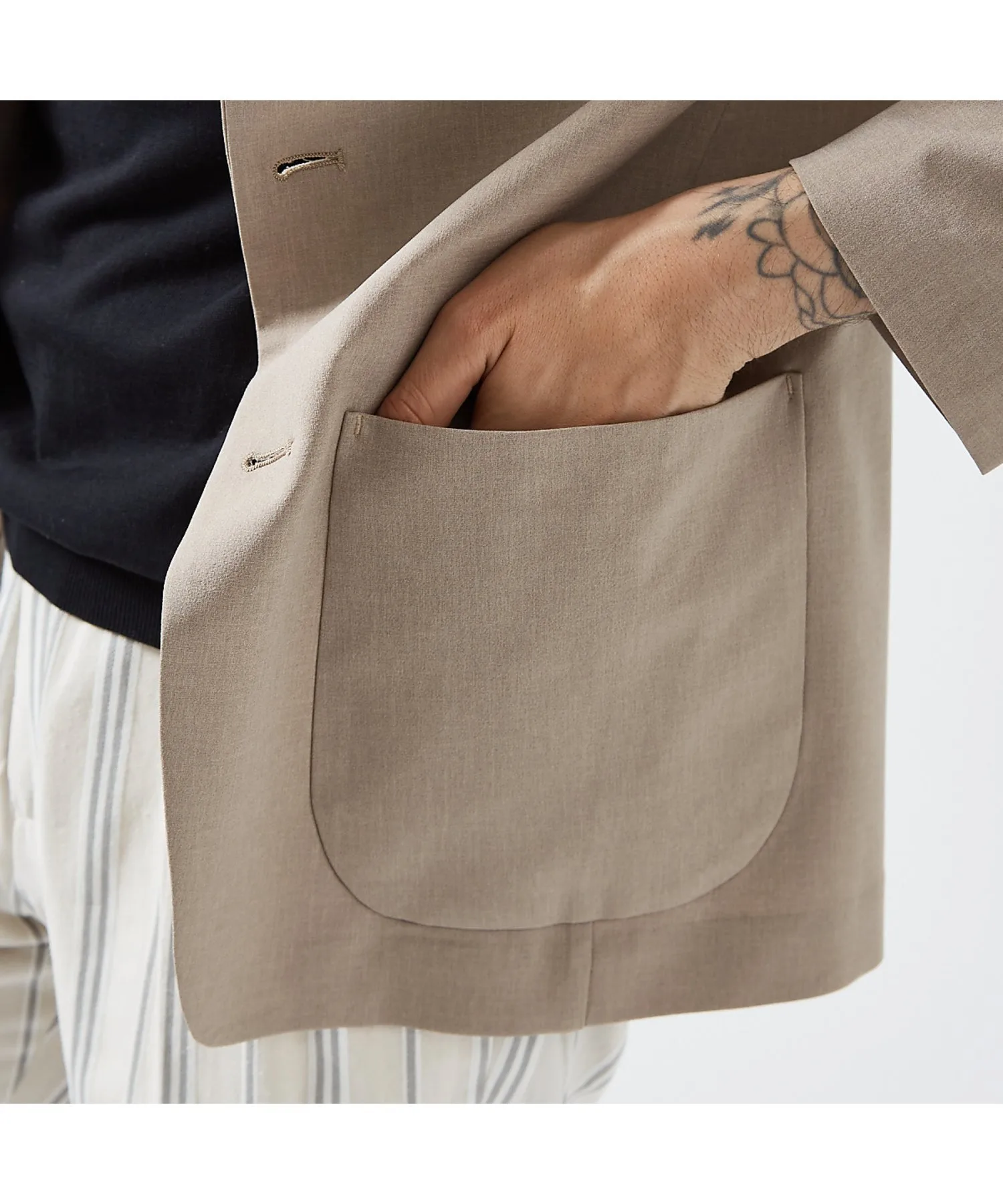 Куртка, которую можно носить с комплектом, имеет текстуру, напоминающую камвольную шерсть, умеренную плотность и приятна на ощупь. Легкая и мягкая конструкция, а также накладные карманы делают ее очень универсальной моделью, которую можно носить как на отдыхе, так и на работе.