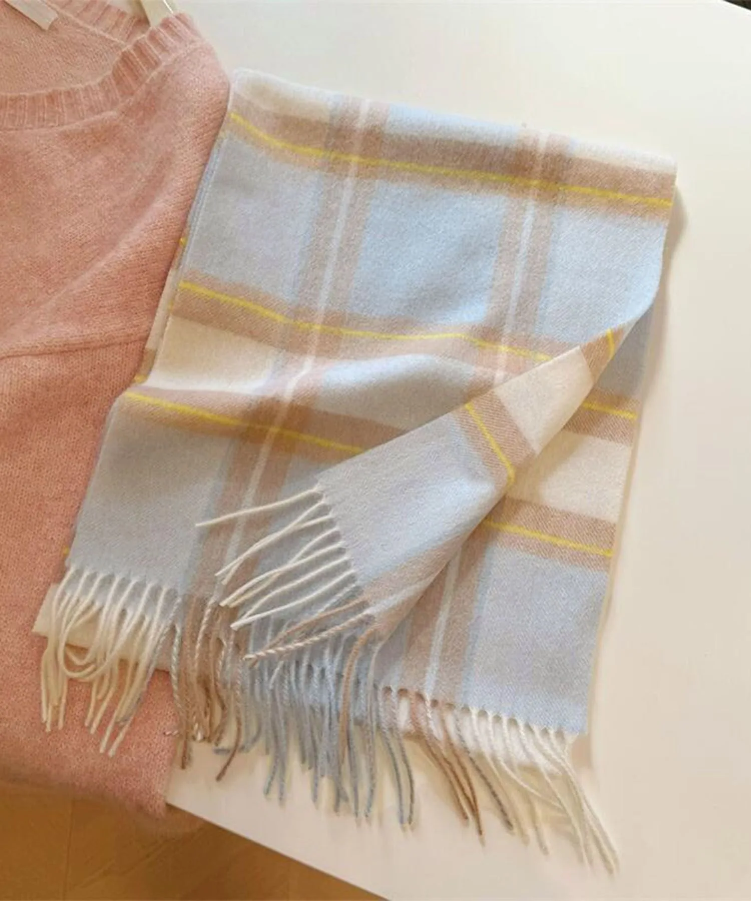 Шарф в клетку с бахромой — незаменимый аксессуар для осенних и зимних нарядов.