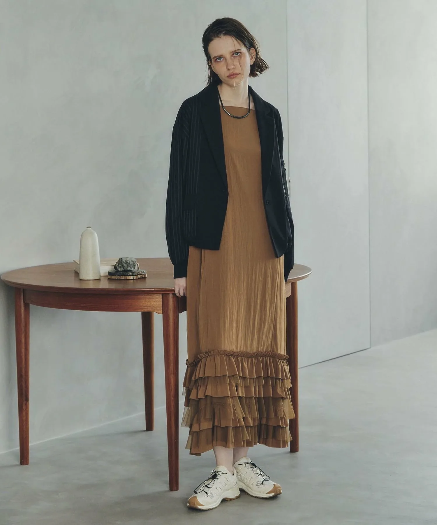 Платье-майка с эффектной оборкой по низу, выполненное из многослойного тюля.