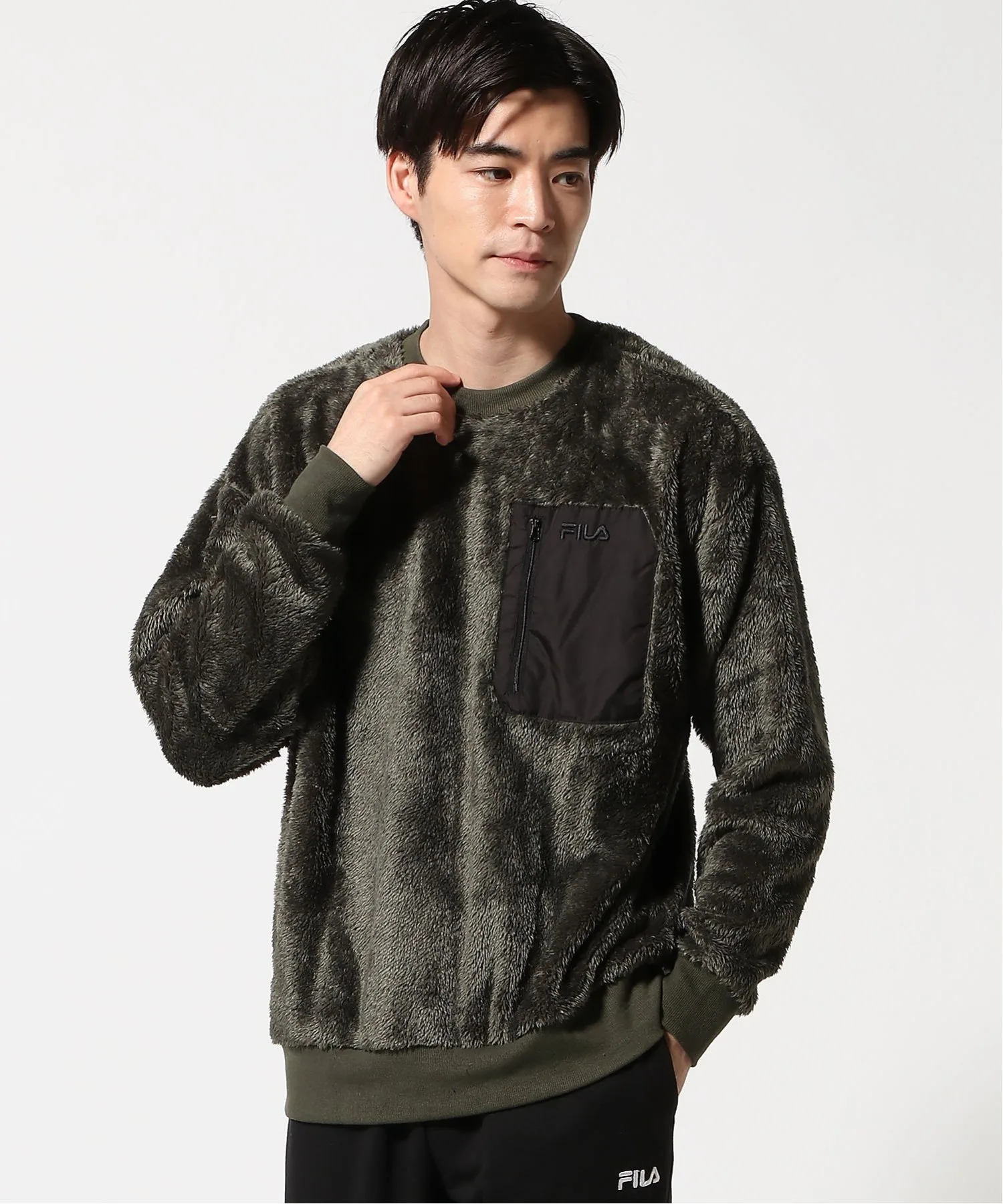 На груди расположен контрастный карман с логотипом бренда, что делает ее простой, но в то же время изысканной вещью.