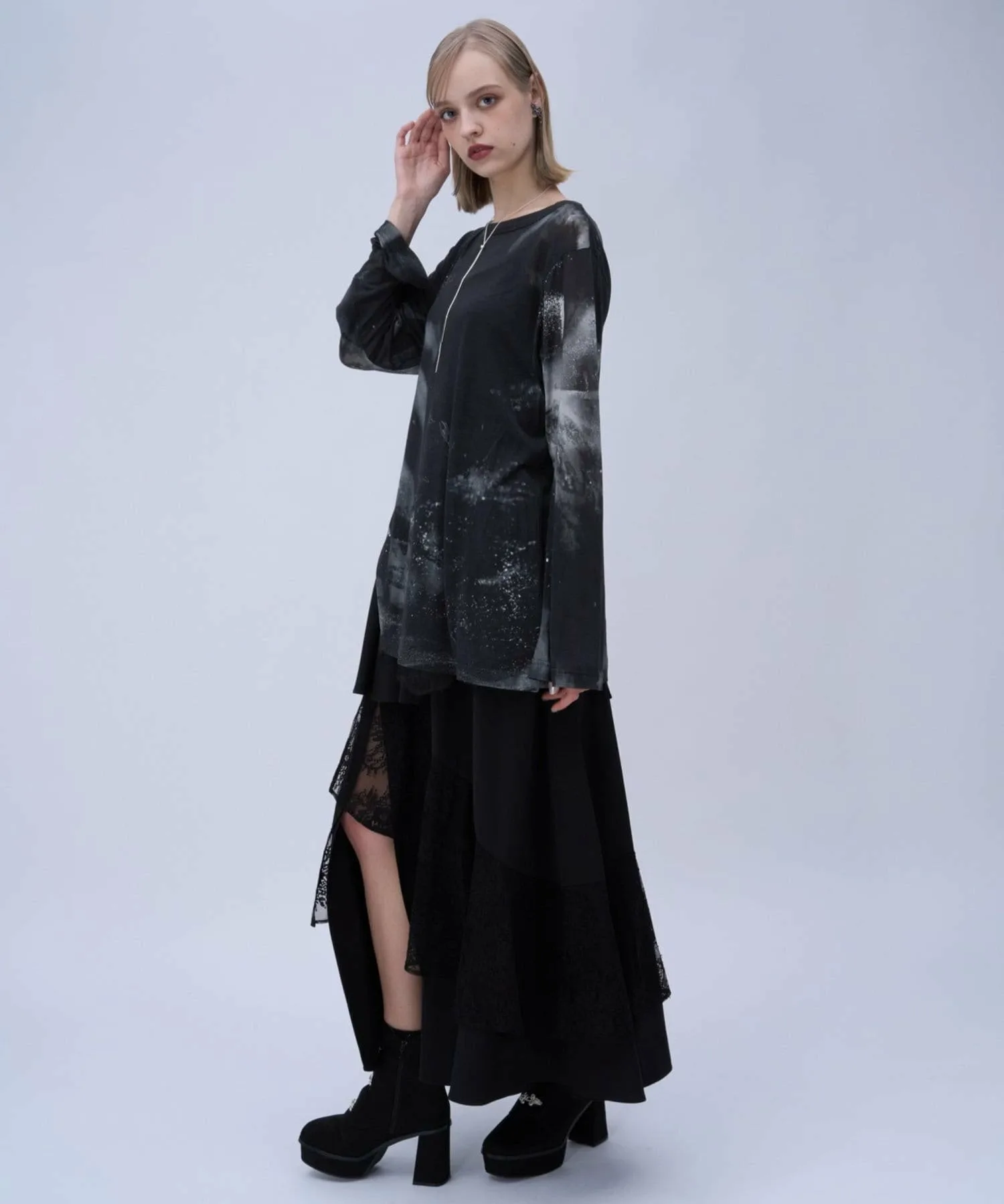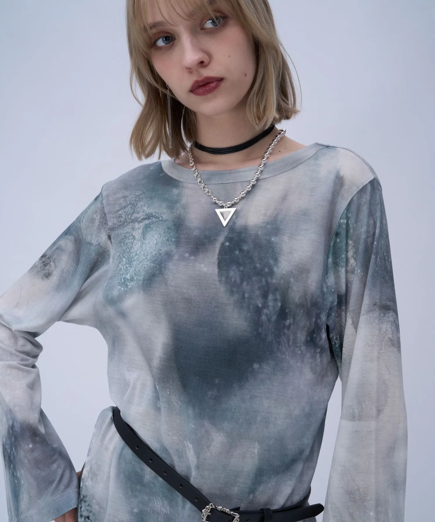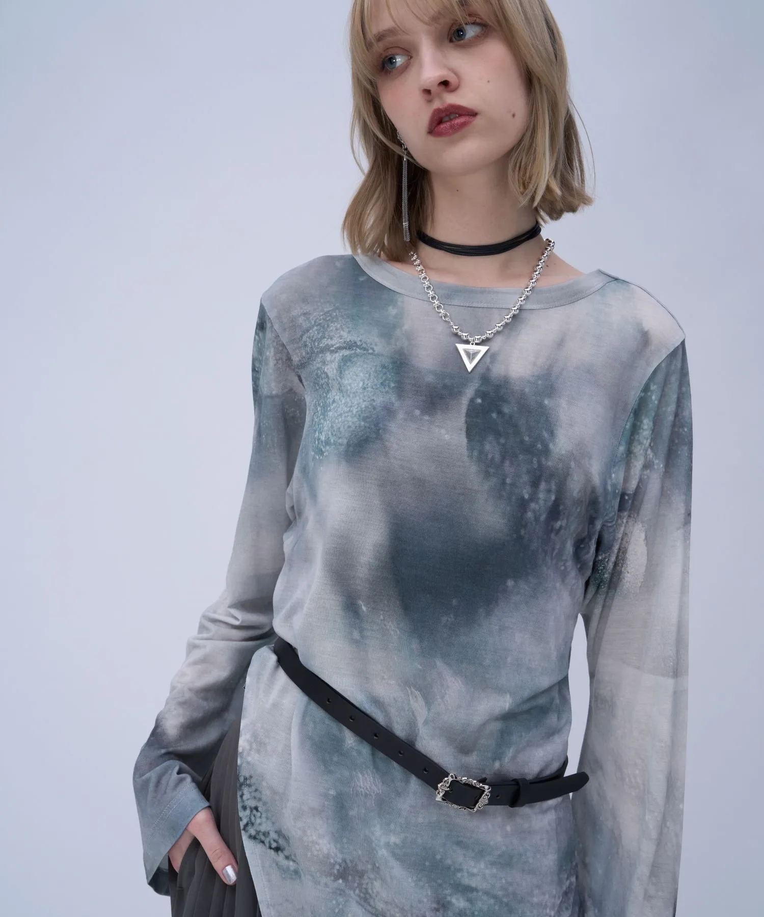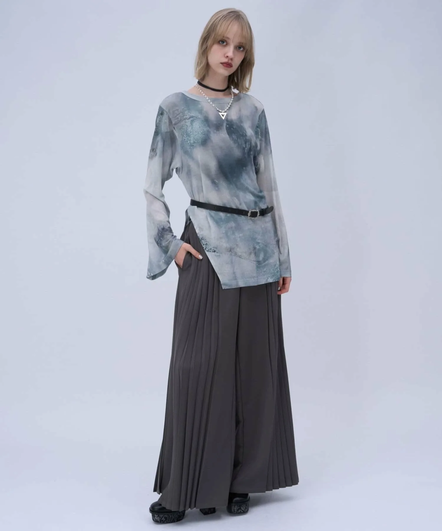 Полупрозрачный топ с боковым разрезом и графическим рисунком для современного образа
