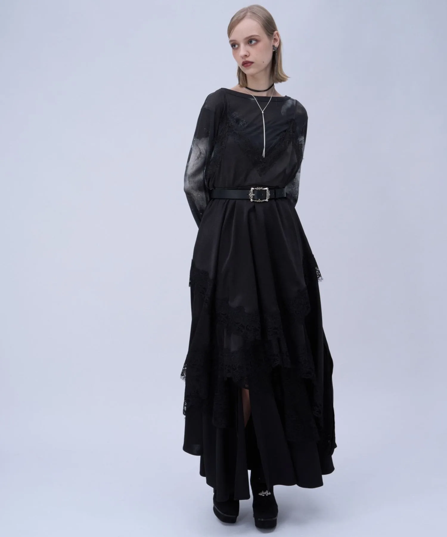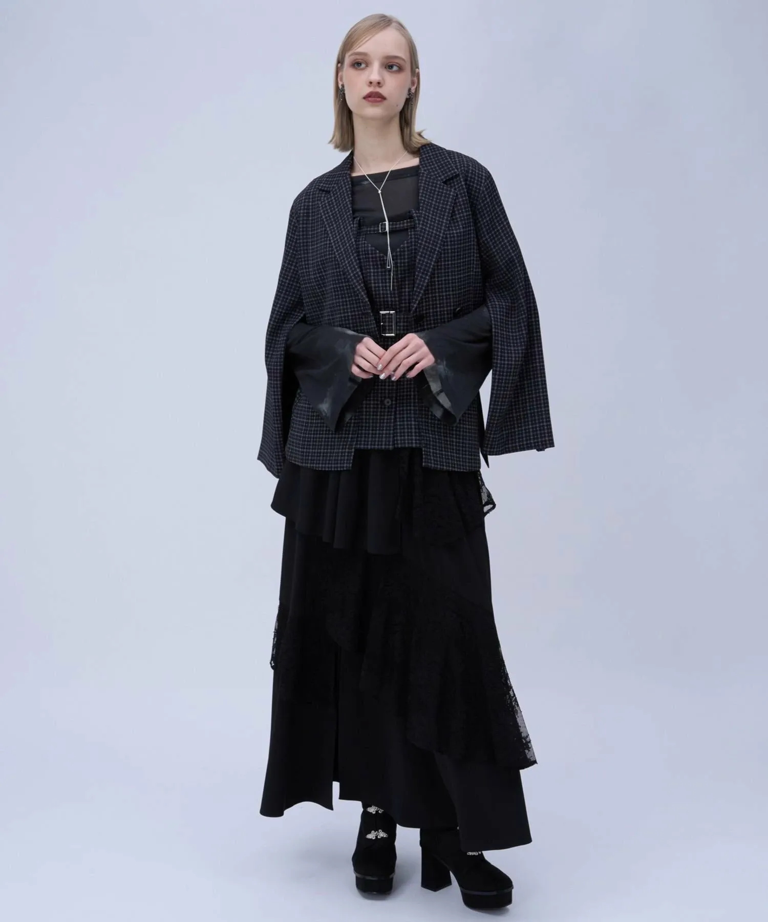 □Боковые разрезы и расклешенные рукава добавляют женственности