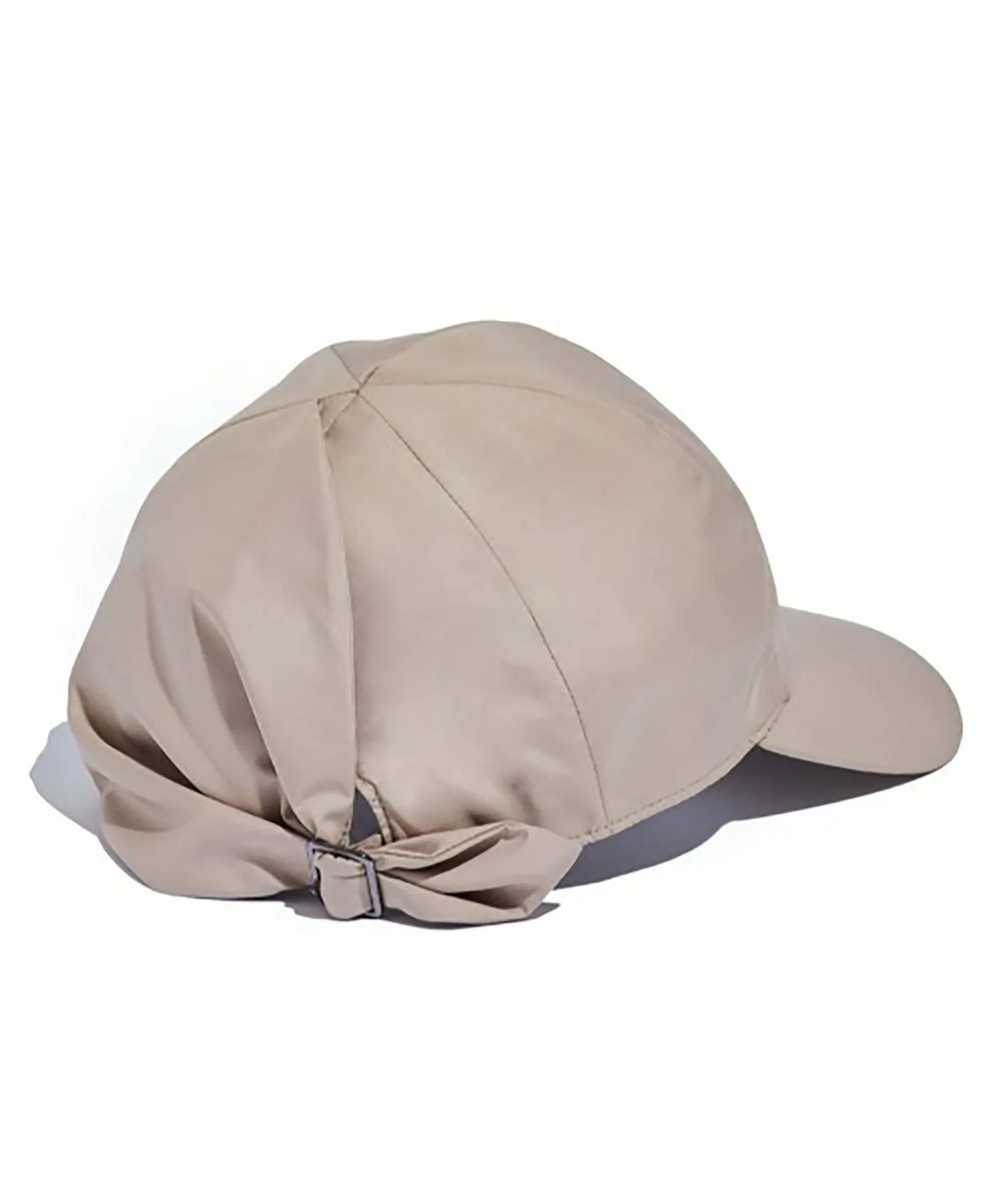 Бесшовная конструкция подчеркивает тонкий блеск и красивый глянец, делая лицо ярче и красивее. Ремешок сзади — это современный и элегантный дизайн, напоминающий завязанный шарф. Спортивный стиль кепки спереди и женственный, утонченный сзади создают привлекательный двойной образ.