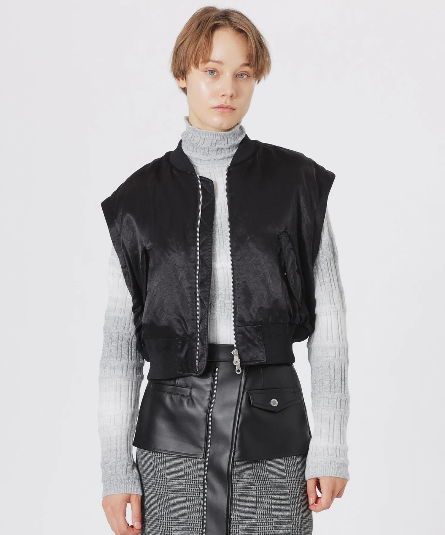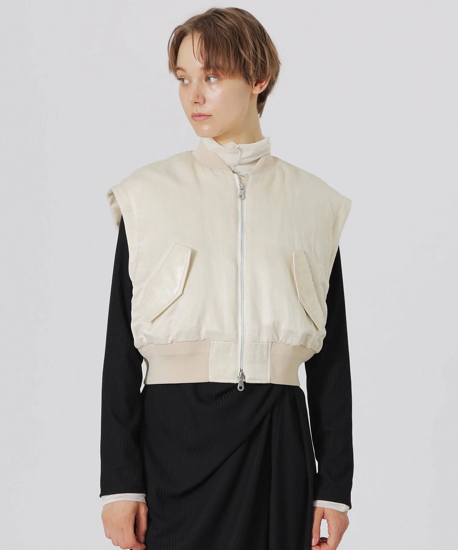 Рукава отстегиваются на молнию, поэтому вы можете носить их с жилетом или жакетом.