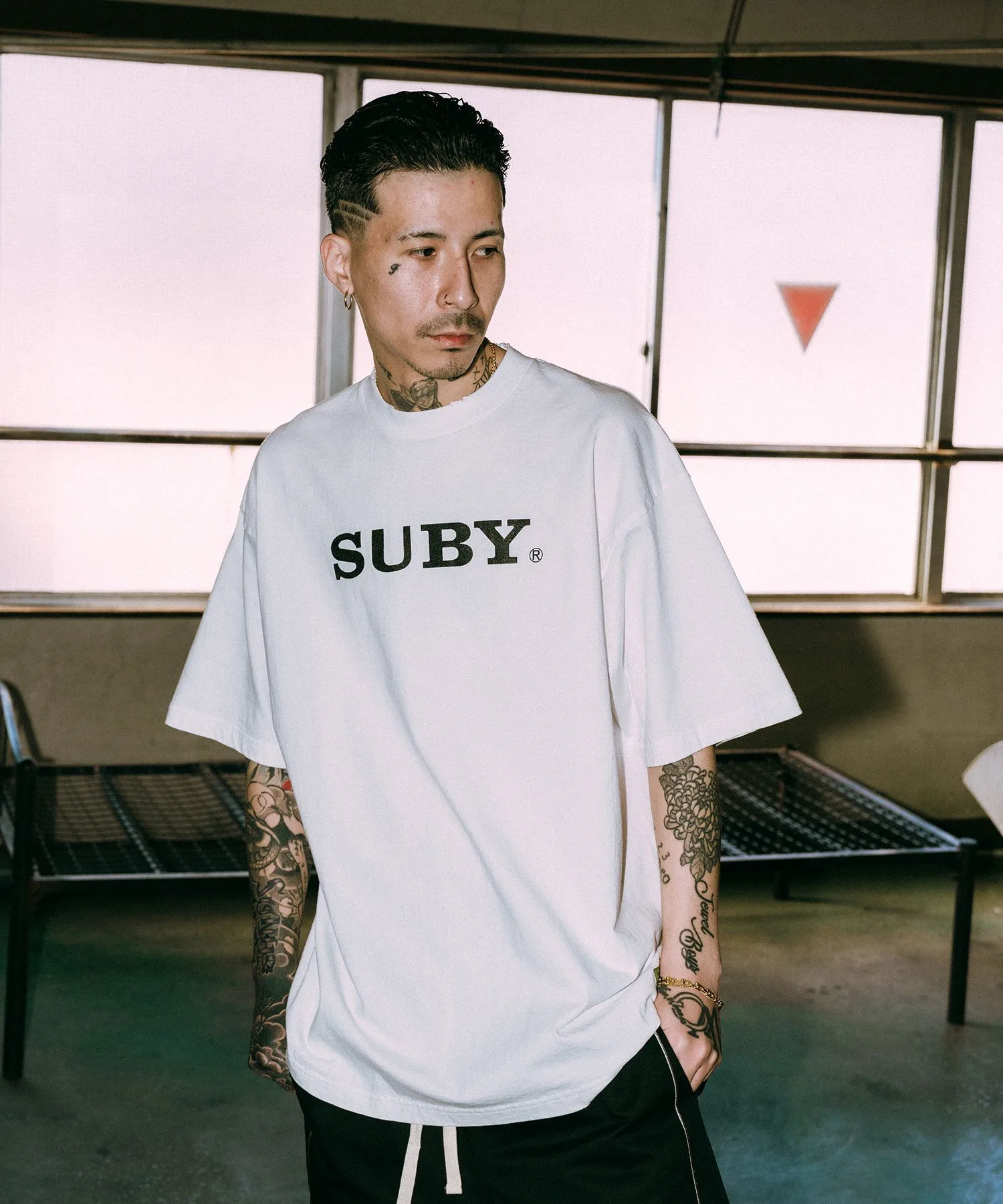 На передней части напечатан типографический принт, вдохновленный вымышленным производителем аудиотехники.