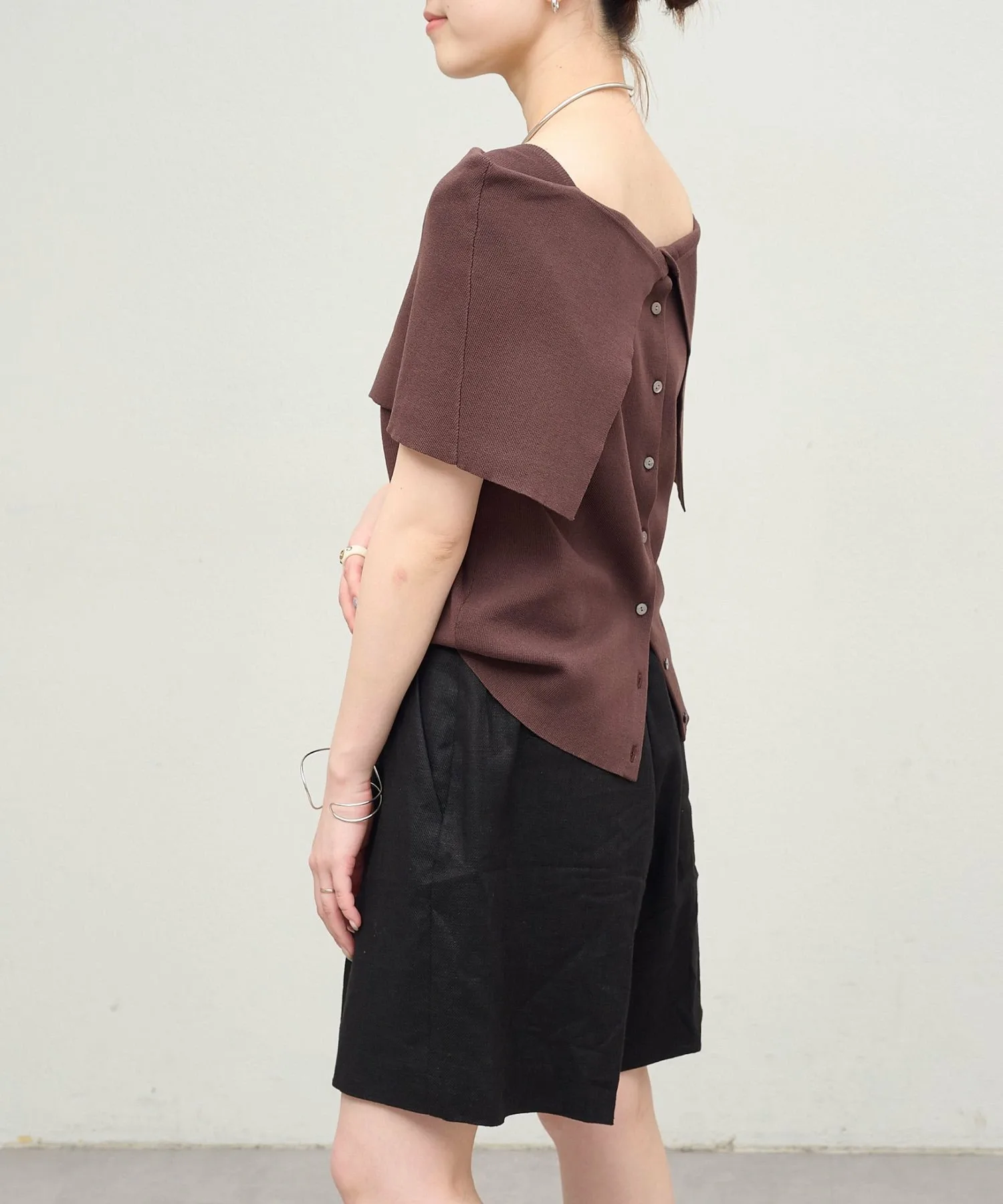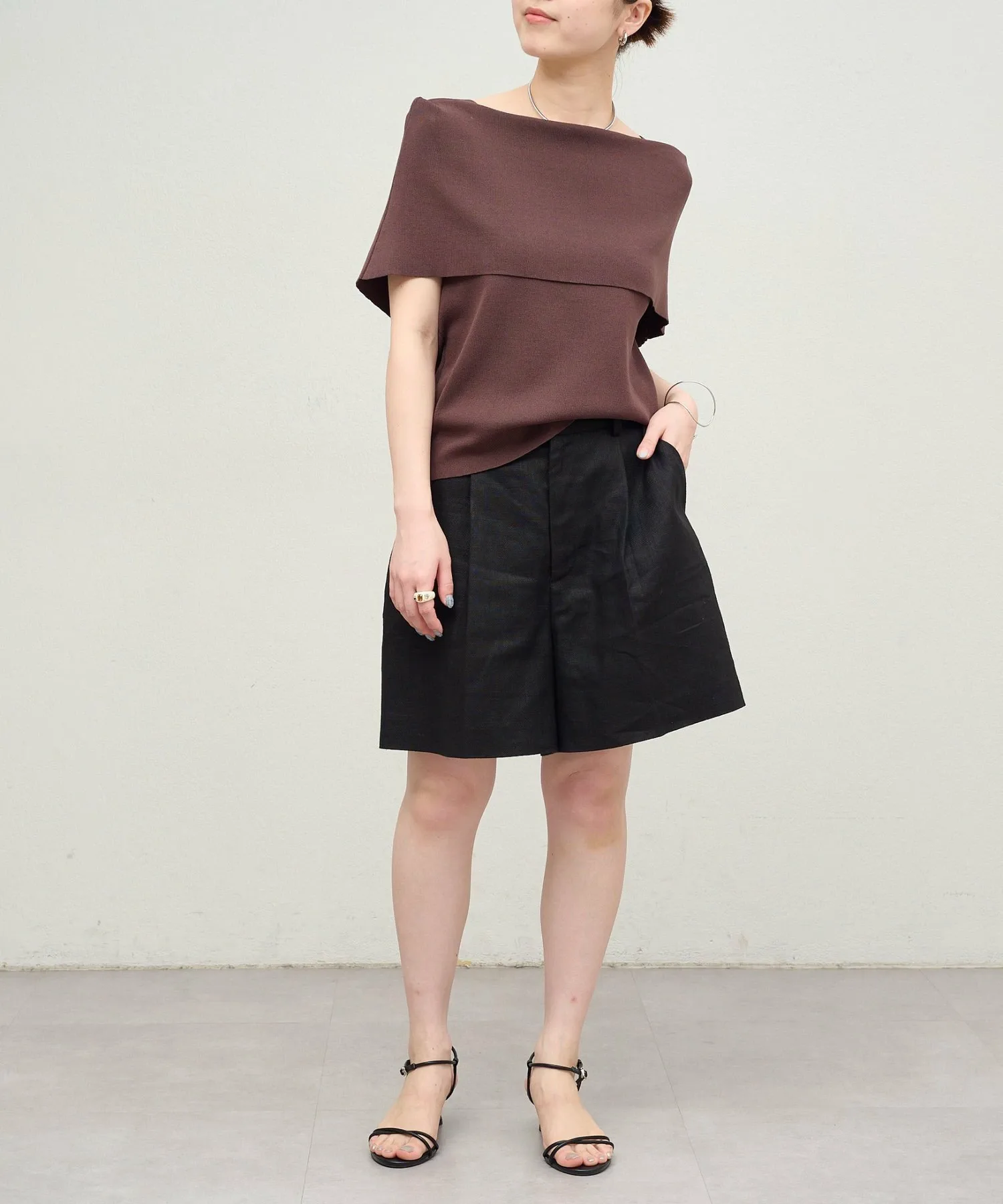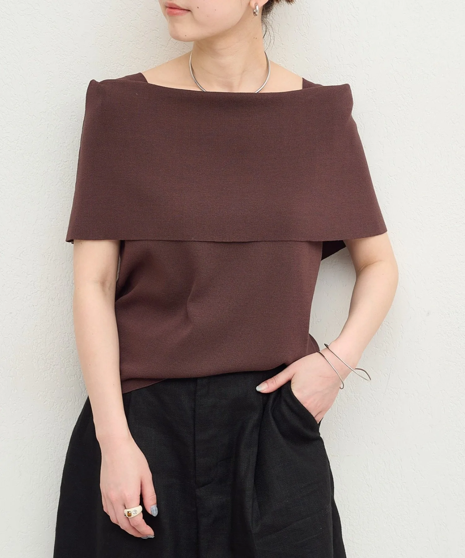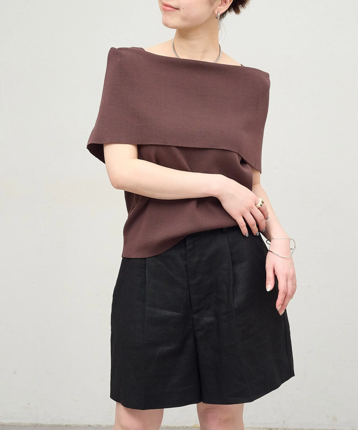 - Дизайн с открытыми плечами делает этот трикотаж изысканным и женственным.