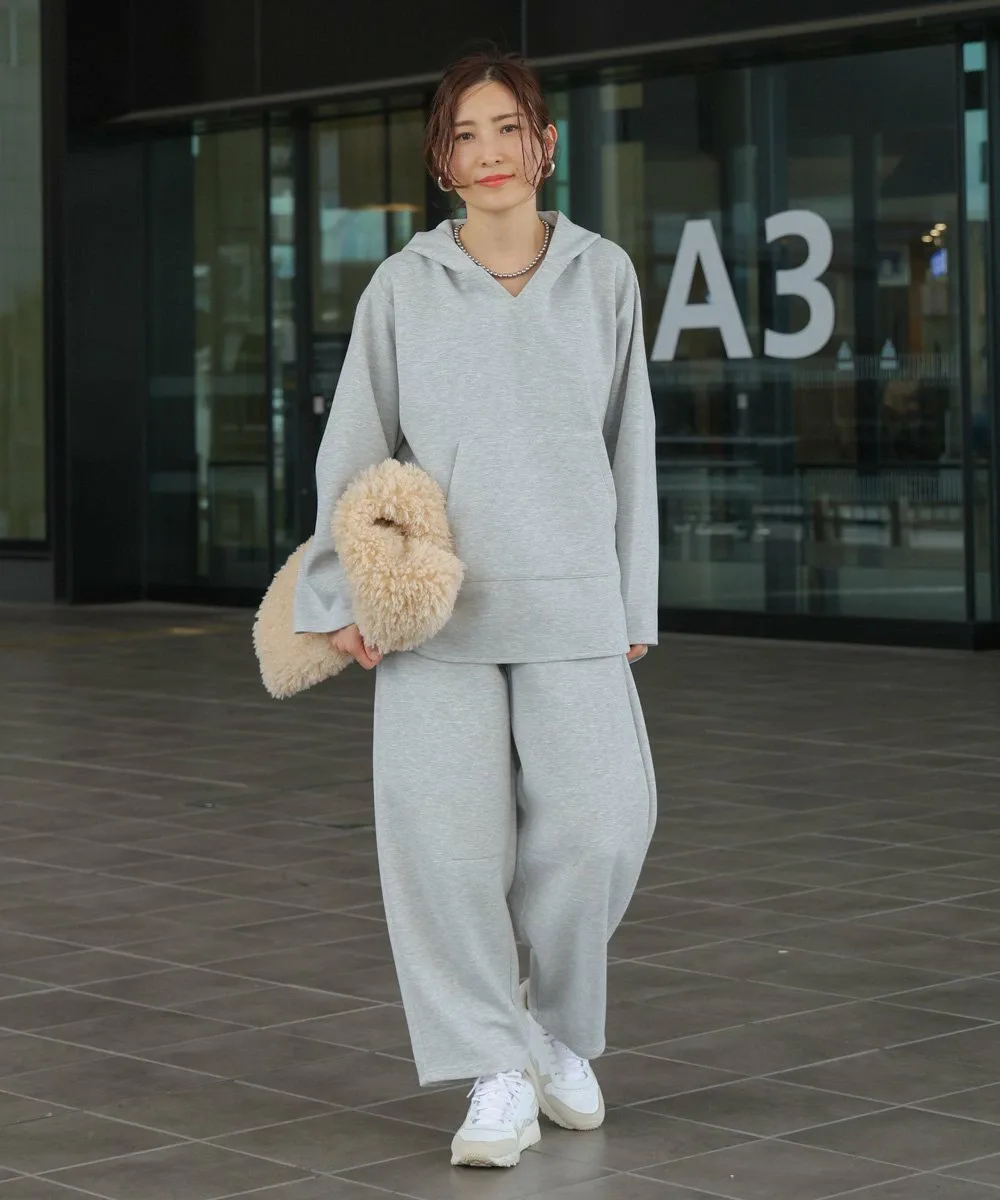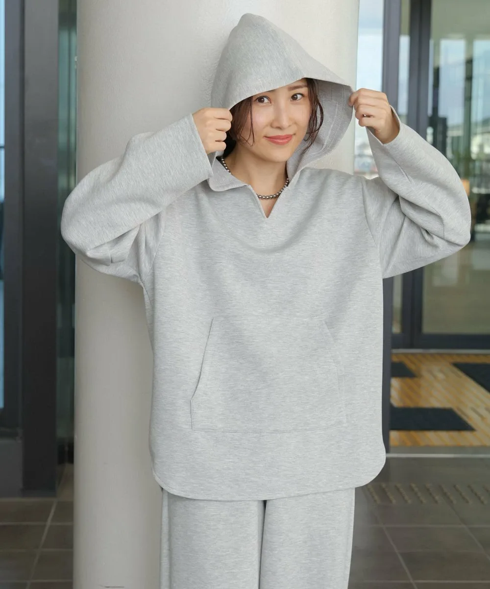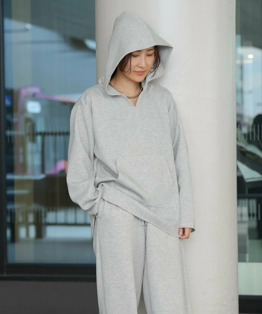 POINTТолстовка с V-образным вырезом из мягкого, но прочного картонного материала, созданная в сотрудничестве с Haachu. Вырез не слишком глубокий, что создает впечатление интеллектуальности, не делая образ слишком повседневным. Толстовка имеет карман-кенгуру, в который легко помещается смартфон или мелкие предметы, что делает ее удобной для ношения в путешествиях. Капюшон толстовки предназначен для защиты глаз во время сна в самолете, даже без маски для глаз. Сочетайте ее с брюками того же материала, чтобы создать универсальный комплект. Конечно, ее можно носить и отдельно, что делает ее универсальным предметом одежды, который поможет вам выразить себя как в путешествиях, так и на улице.