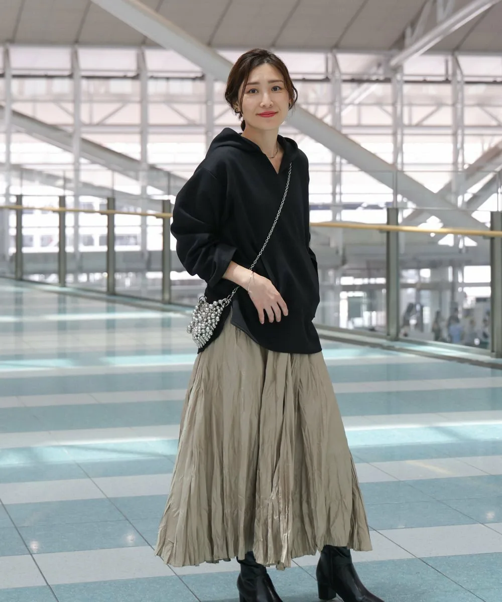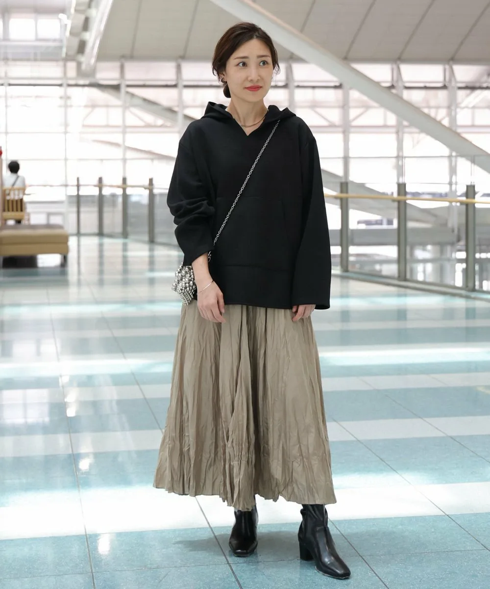 POINTТолстовка с V-образным вырезом из мягкого, но прочного картонного материала, созданная в сотрудничестве с Haachu. Вырез не слишком глубокий, что создает впечатление интеллектуальности, не делая образ слишком повседневным. Толстовка имеет карман-кенгуру, в который легко помещается смартфон или мелкие предметы, что делает ее удобной для ношения в путешествиях. Капюшон толстовки предназначен для защиты глаз во время сна в самолете, даже без маски для глаз. Сочетайте ее с брюками того же материала, чтобы создать универсальный комплект. Конечно, ее можно носить и отдельно, что делает ее универсальным предметом одежды, который поможет вам выразить себя как в путешествиях, так и на улице.