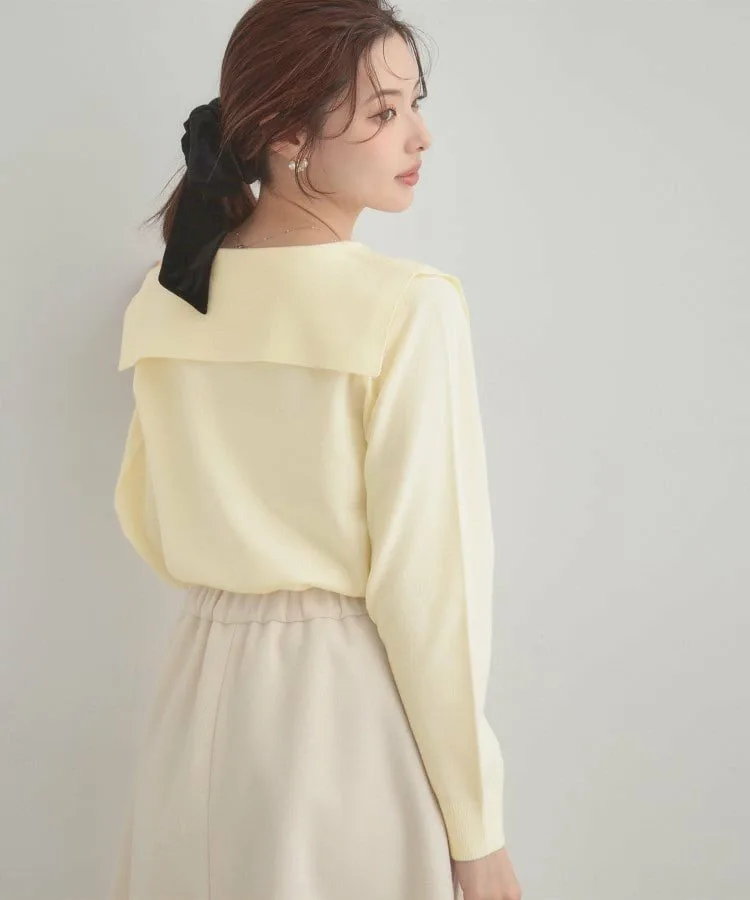 Вязаный свитер с воротником-лентой, который добавит гламура вашему образу.
