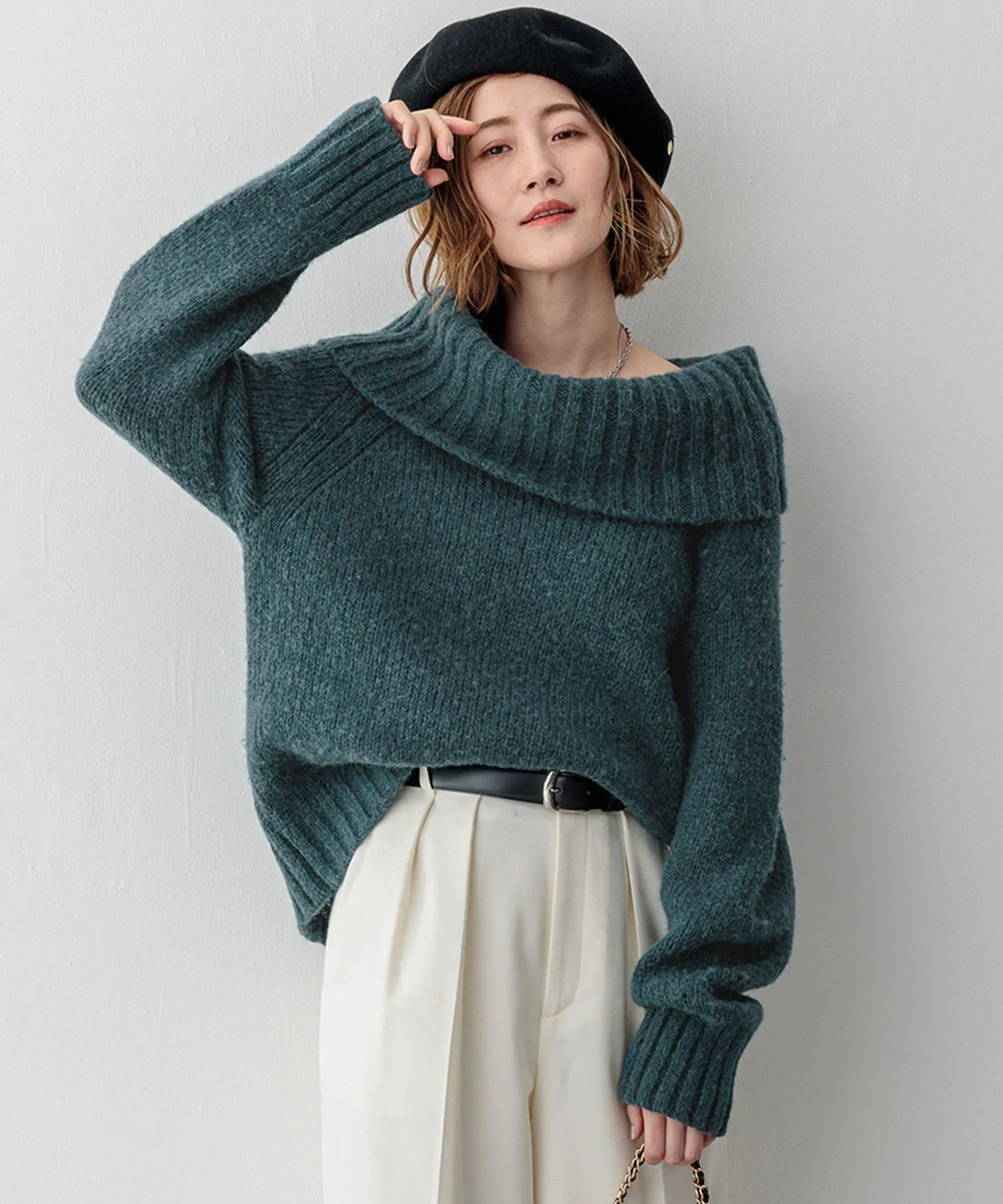 Вязание низкой плотности с легким, объемным силуэтом, не подчеркивающим фигуру. Объемный воротник позволяет носить как водолазку, так и платье с открытыми плечами. Компактная длина позволяет легко сочетать его с различными вариантами низа. Доступно в трех цветах: базовый, мягкий цвет слоновой кости (#002), повседневный светло-серый (#003) и голубовато-зеленый (#060).
